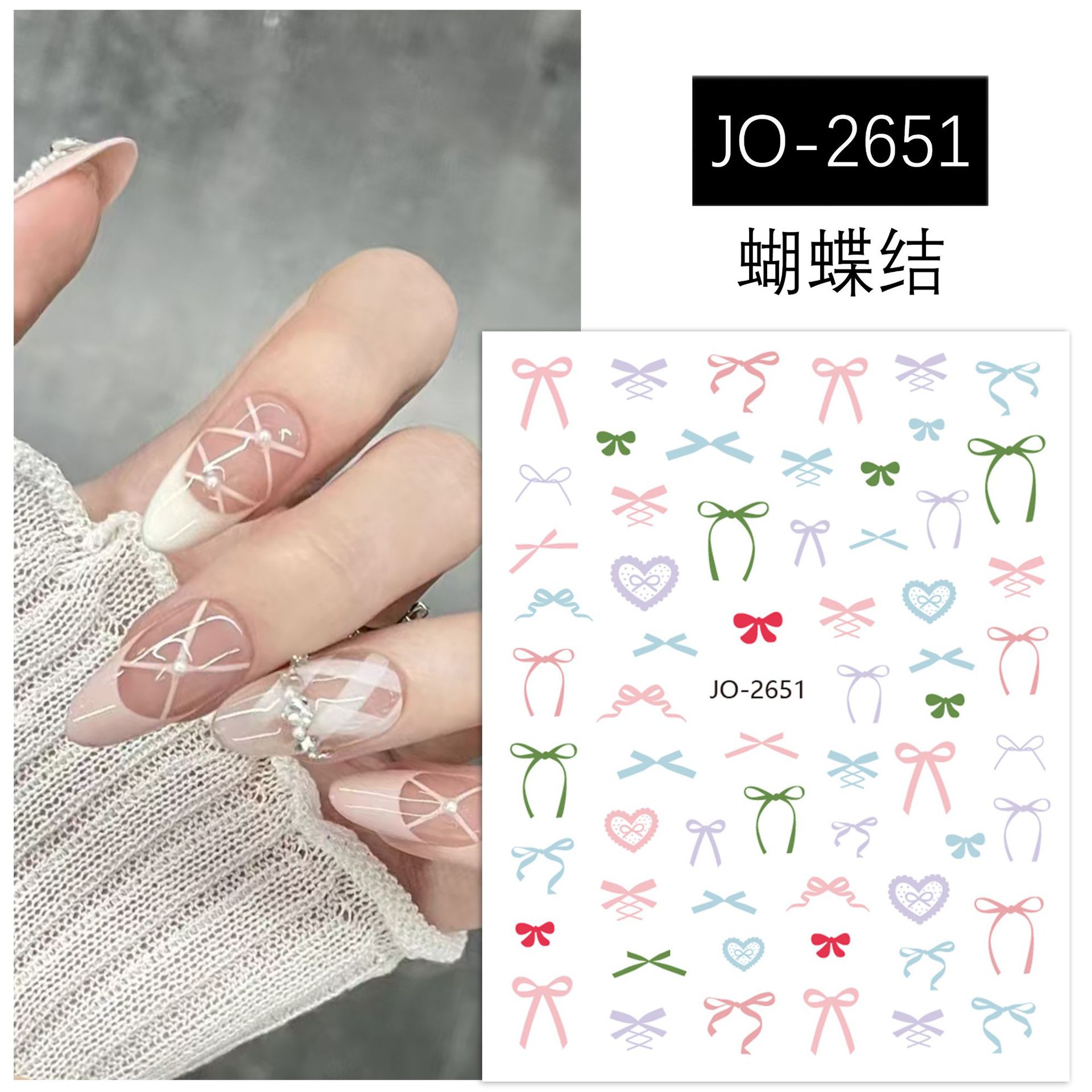 새로운 폭발성 접착 네일 아트 스티커 달콤한 리본 활 DIY 시리즈 네일 스티커 공장 도매스토어 가기