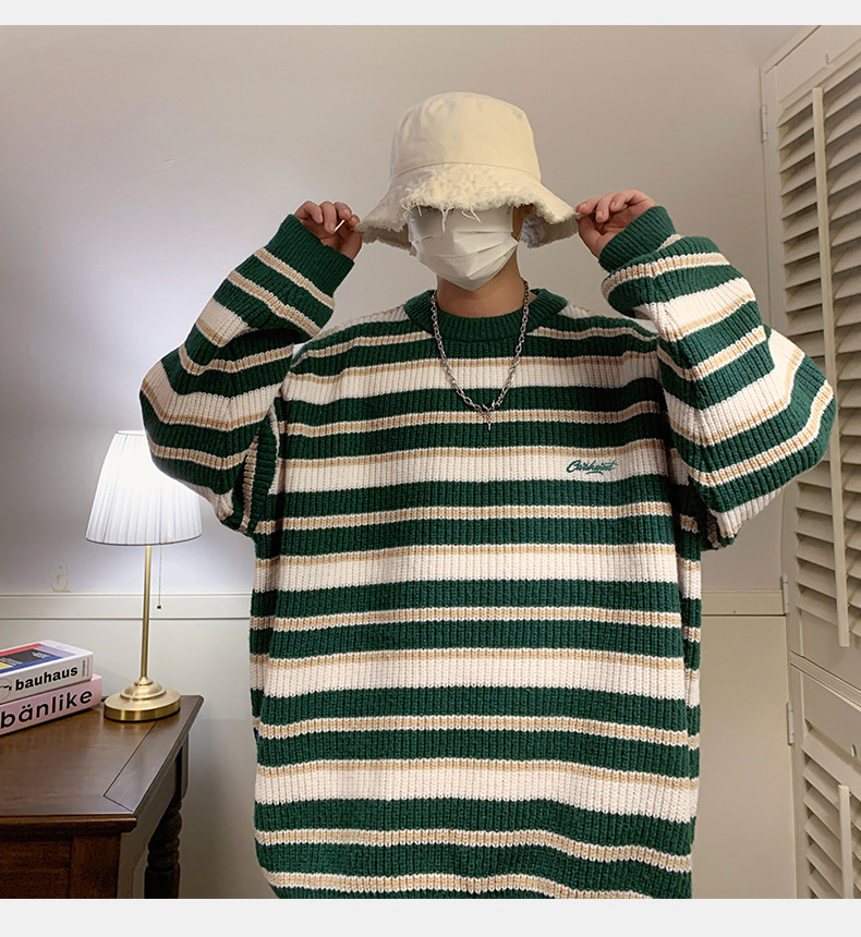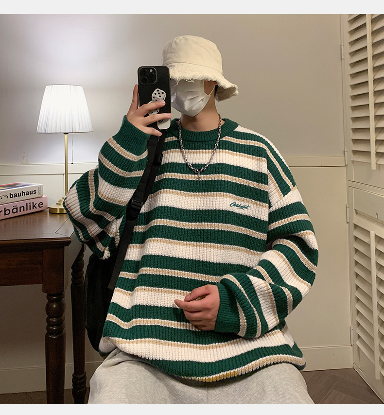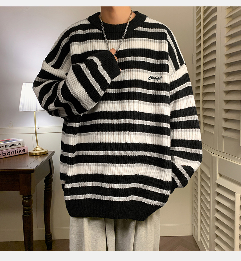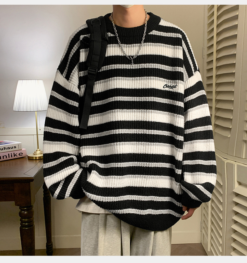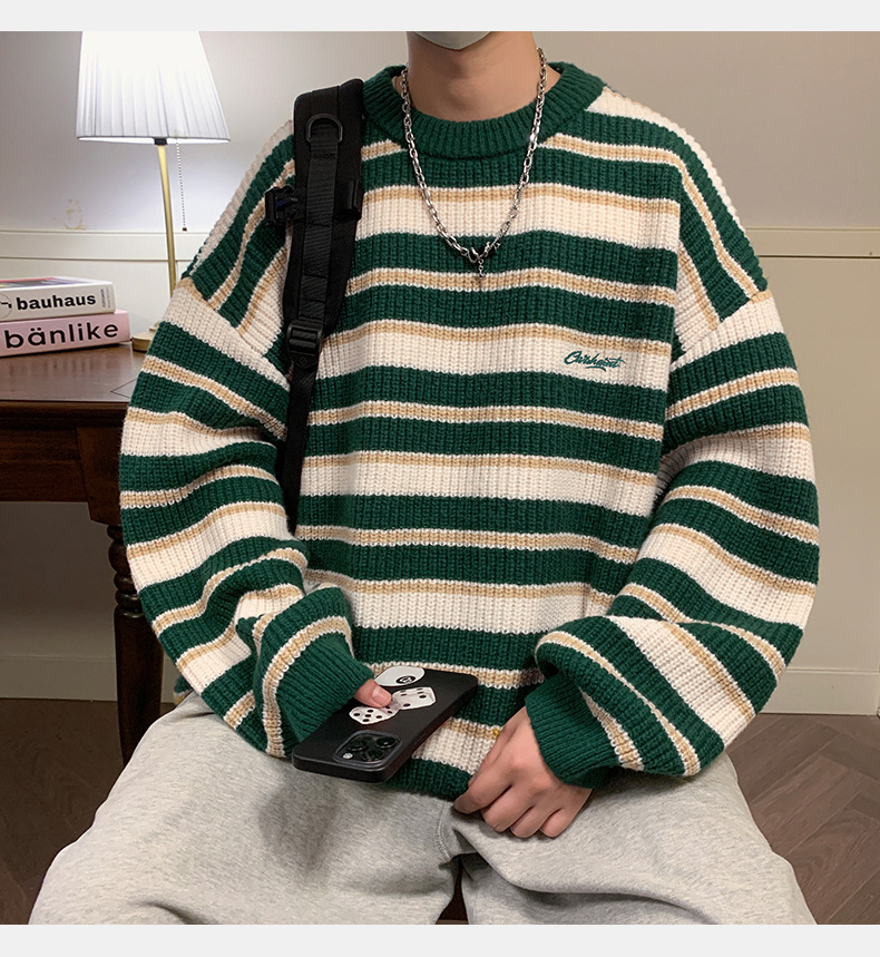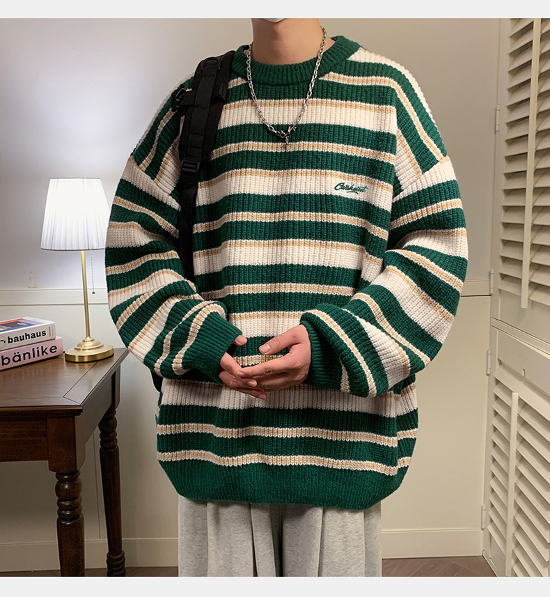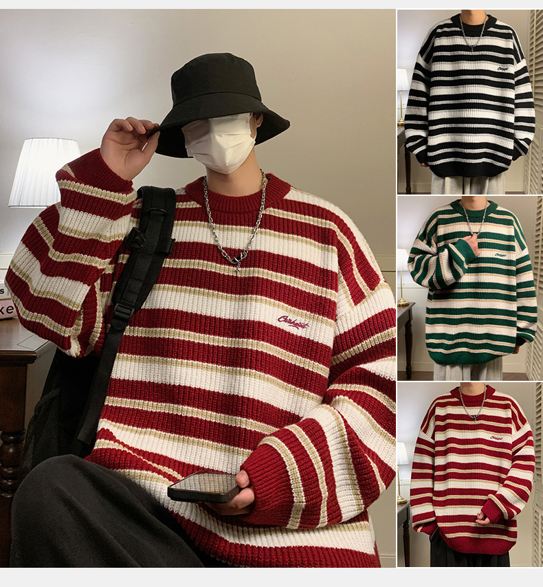 게으른 스타일 레트로 대조 스웨터 남자의 새로운 가을과 겨울 두꺼운 바늘 캐주얼 자수 니트 스웨터 재킷스토어 가기