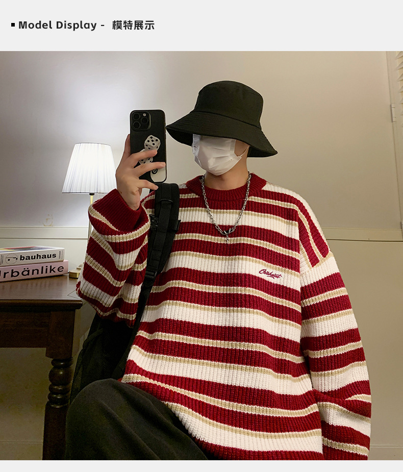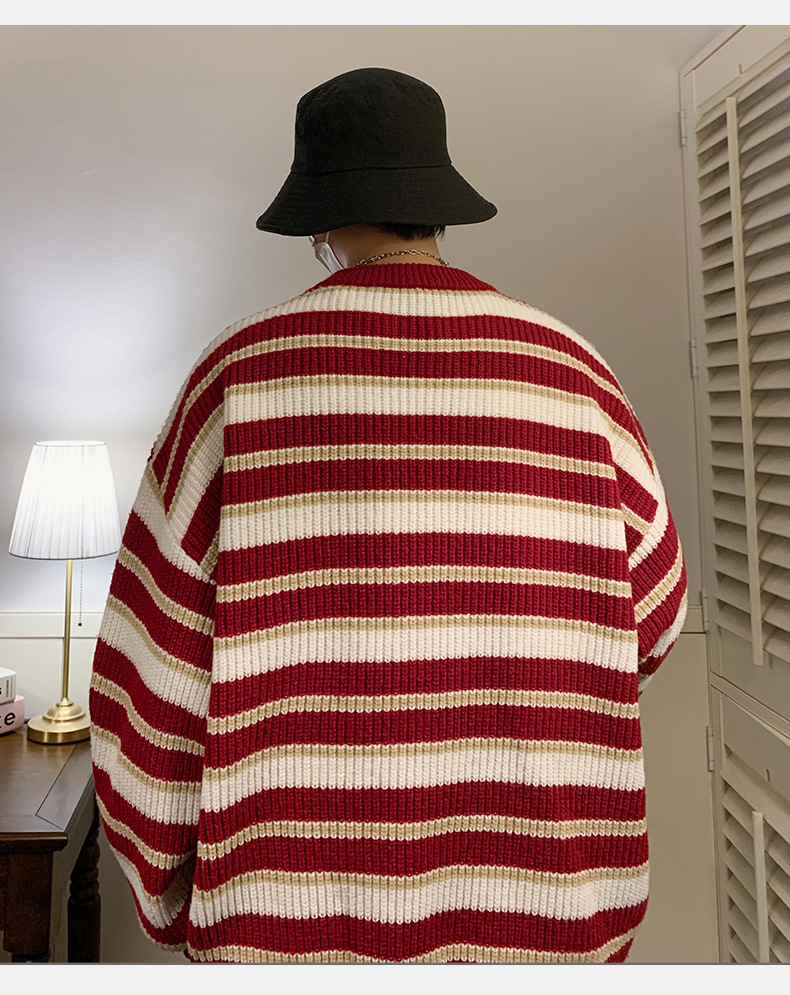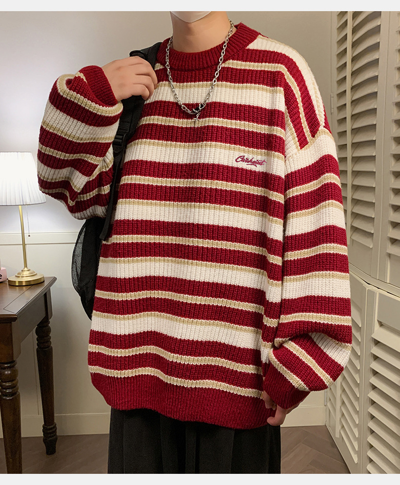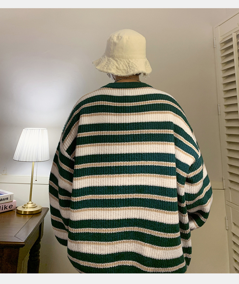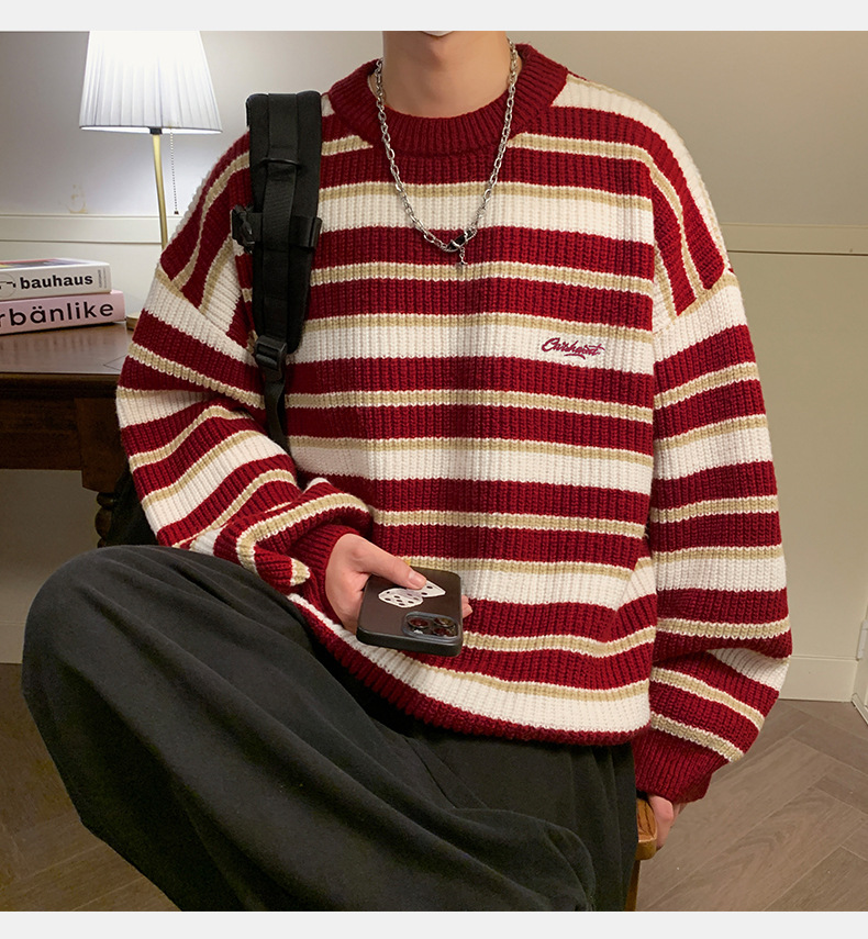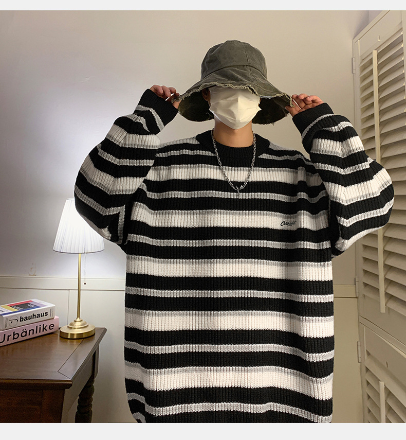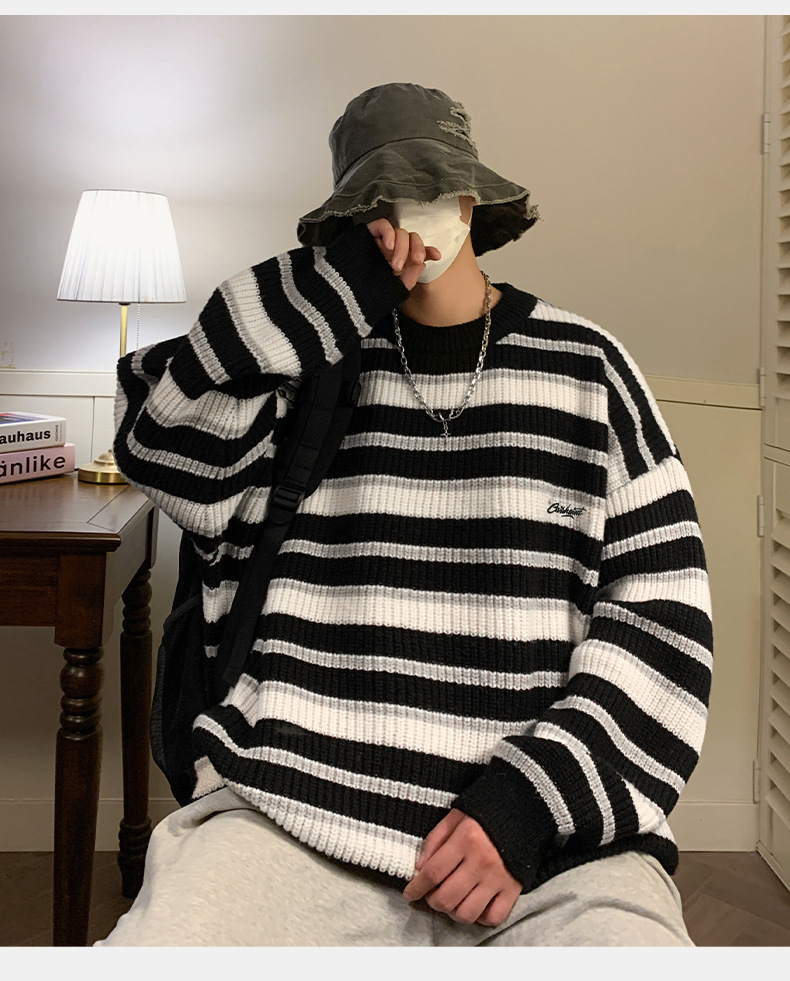 게으른 스타일 레트로 대조 스웨터 남자의 새로운 가을과 겨울 두꺼운 바늘 캐주얼 자수 니트 스웨터 재킷스토어 가기