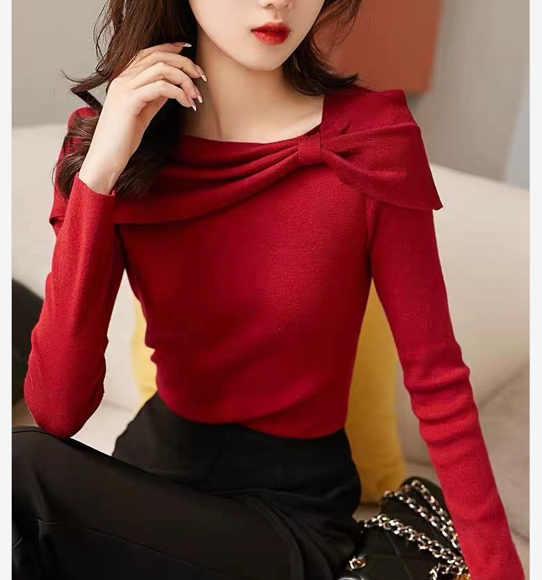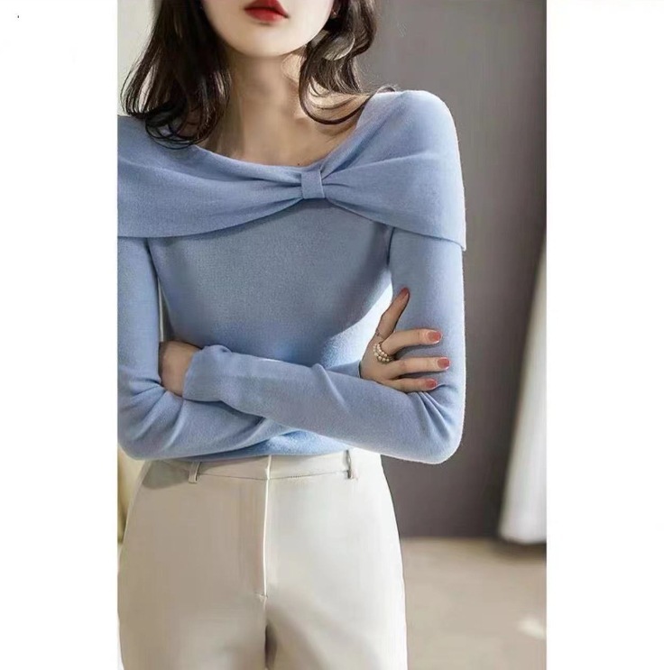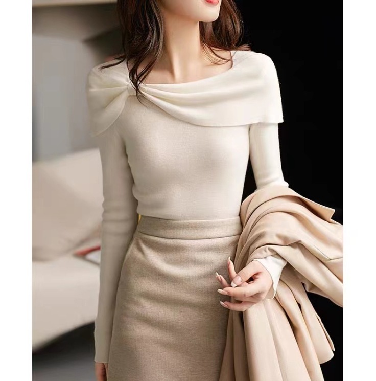 활 긴 소매 니트 베이스 셔츠 여성의 가을 우아한 한 단어 목도리 슬림 셔츠 슈퍼 피겨 탑