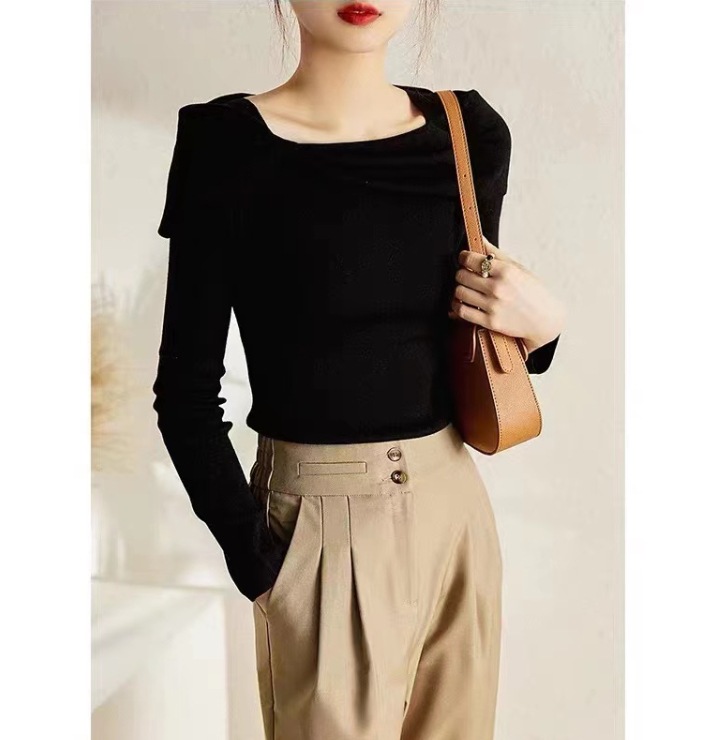 활 긴 소매 니트 베이스 셔츠 여성의 가을 우아한 한 단어 목도리 슬림 셔츠 슈퍼 피겨 탑스토어 가기