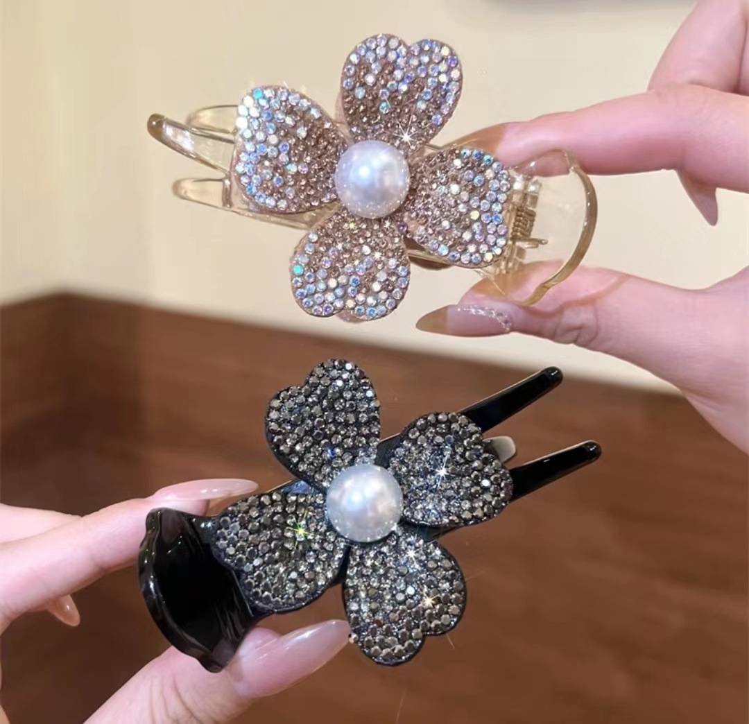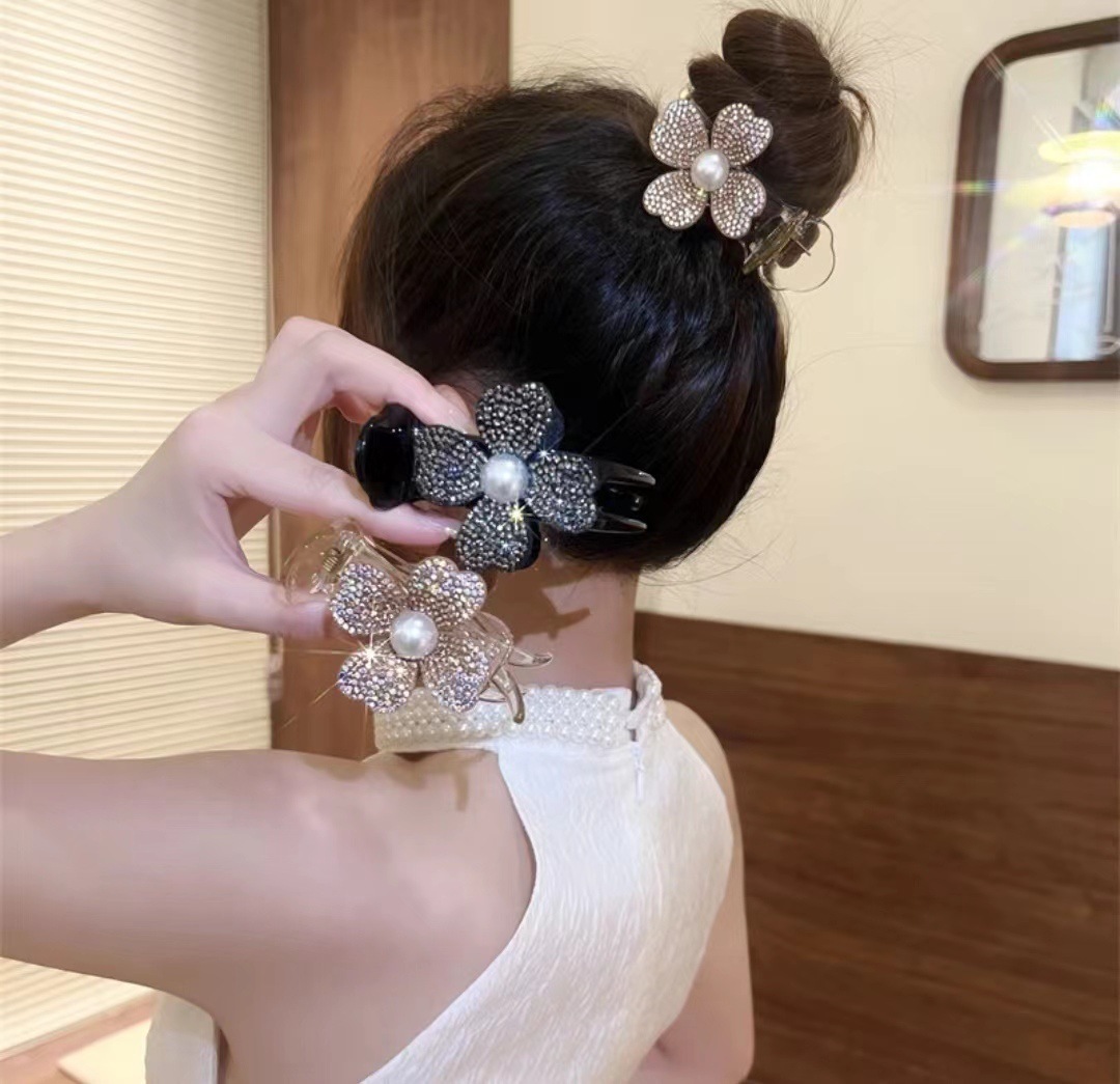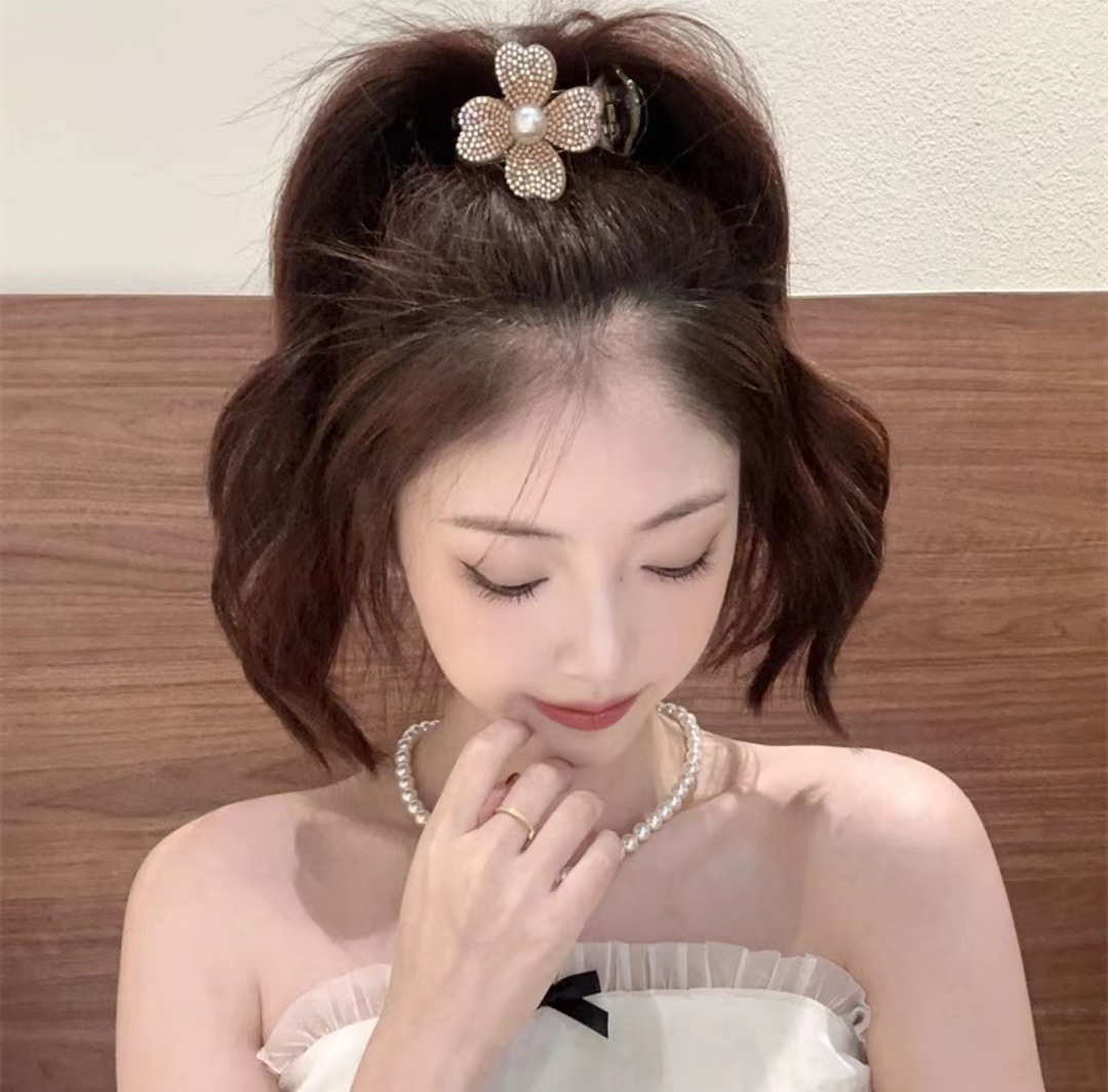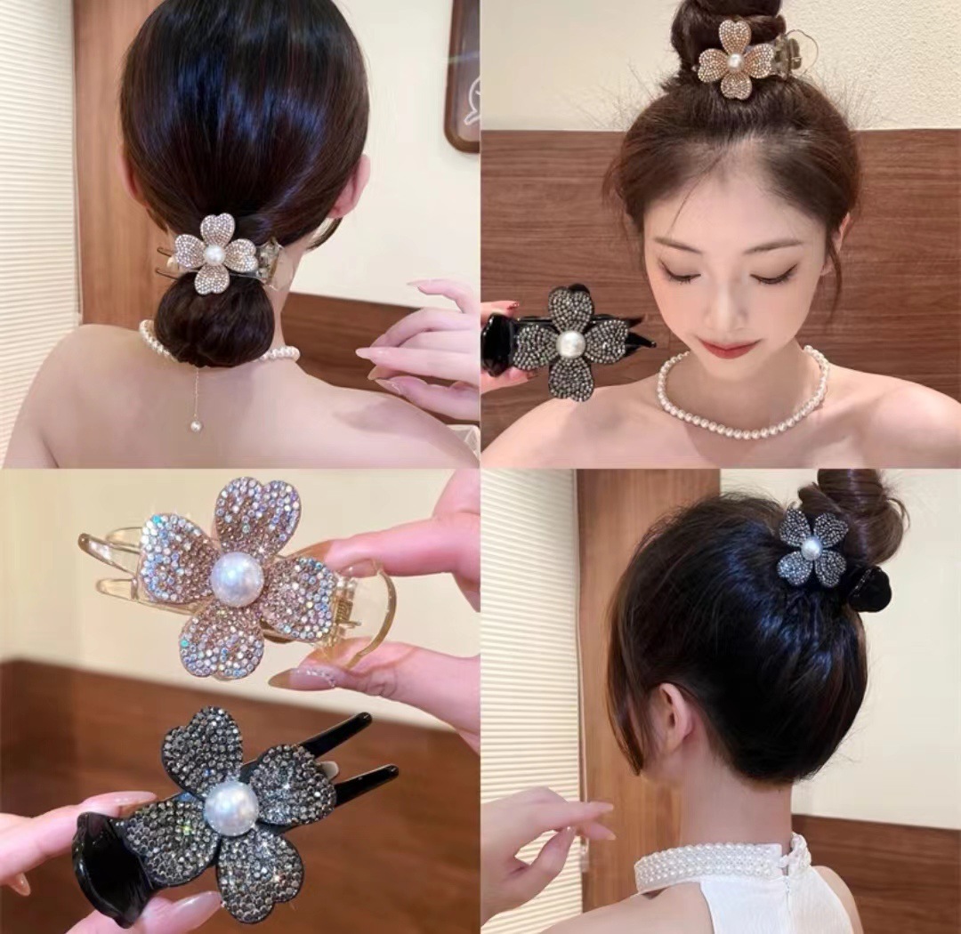 풀 다이아몬드 진주 네 잎 클로버 그랩 클립 꽃 머리핀 공 머리 장식 높은 포니 테일 고정 아티팩트 세 가지 치아 클립 헤드웨어스토어 가기