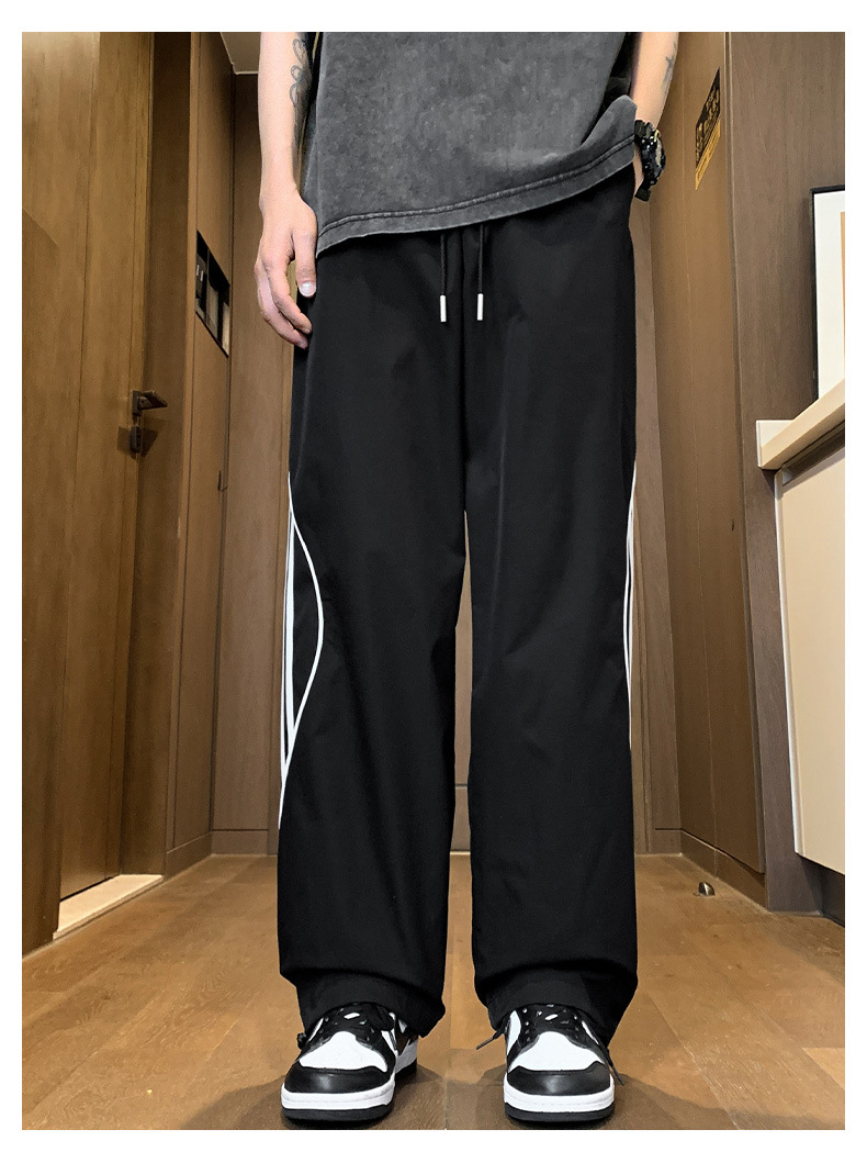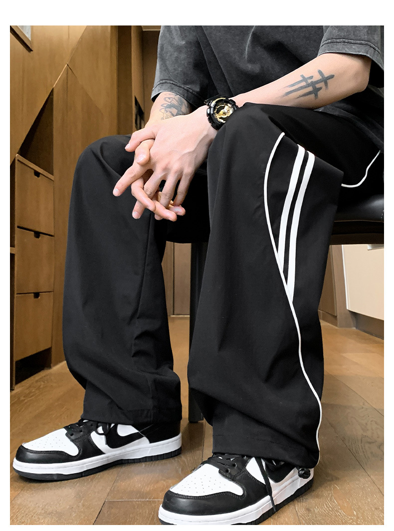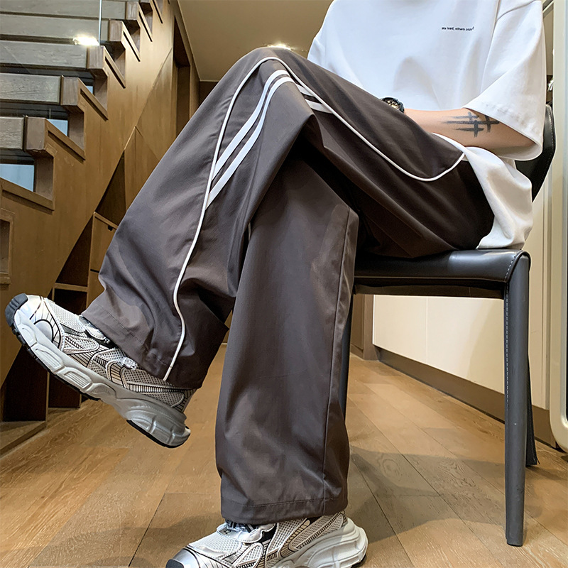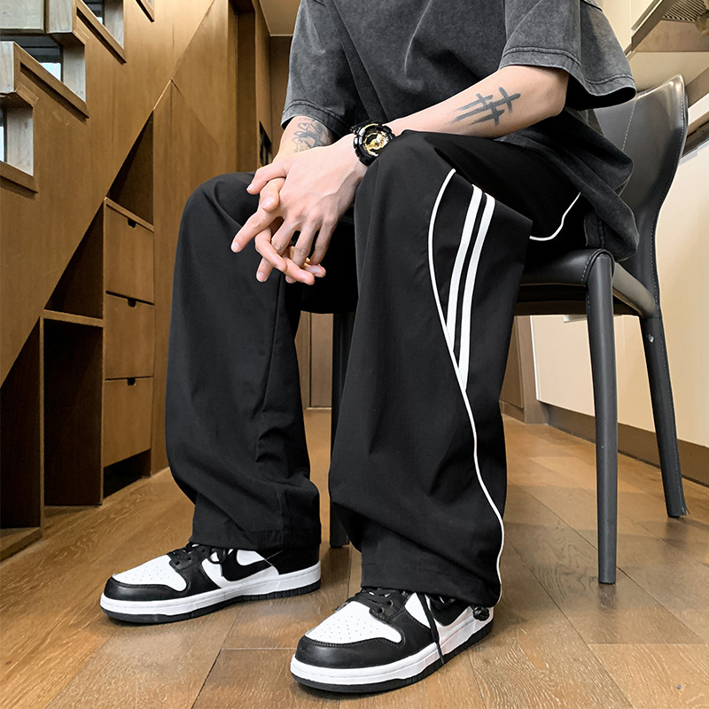 사이드 스트라이프 캐주얼 바지 남자의 봄과 가을 패션 브랜드 미국 기능성 충전 바지 느슨한 넓은 다리 그리기 스포츠 바지스토어 가기