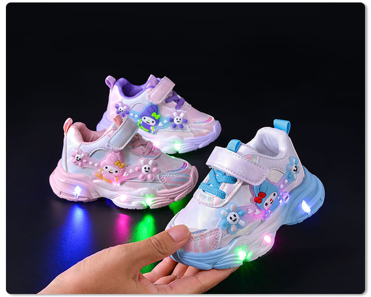 2024 새로운 밝은 빛 소녀 빛나는 신발 만화 LED 깜박이는 가벼운 신발 부드러운 바닥 캐주얼 운동화 여성 어린이 진동스토어 가기