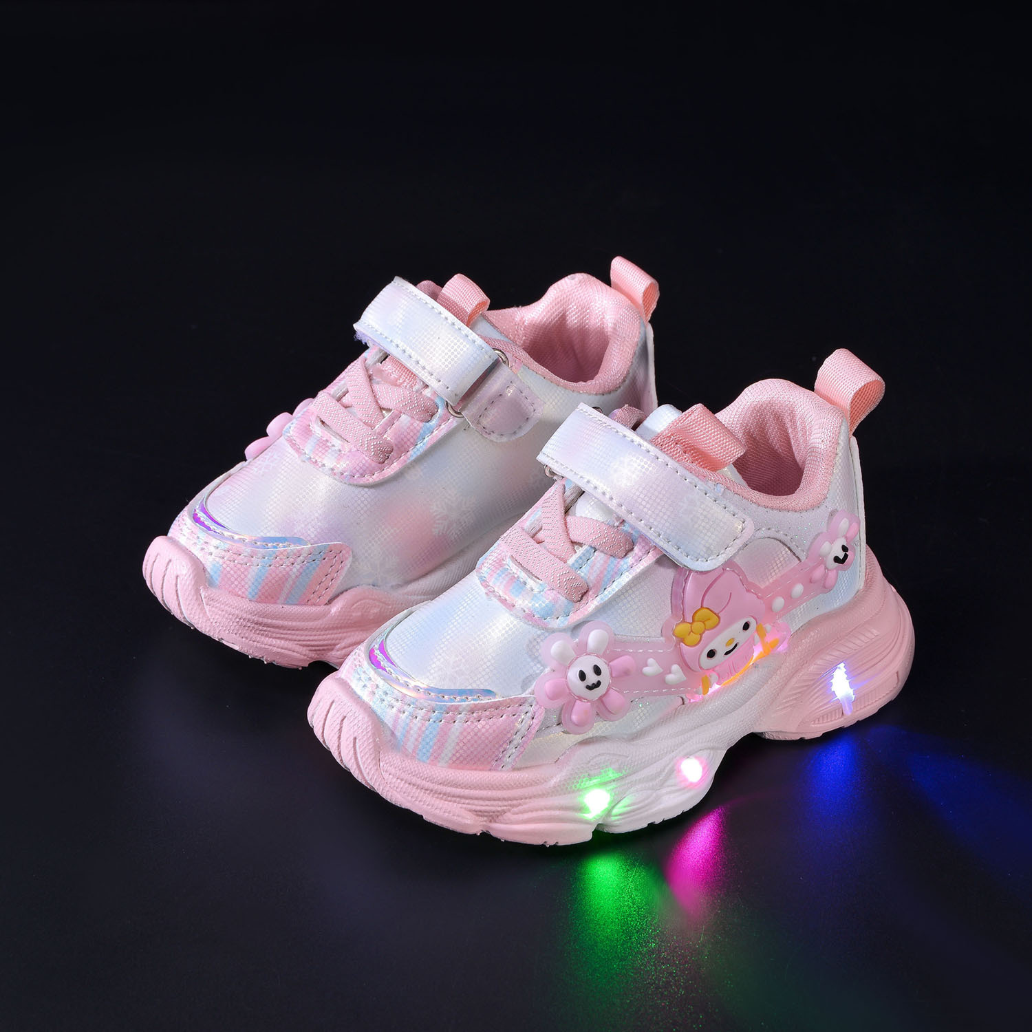 2024 새로운 밝은 빛 소녀 빛나는 신발 만화 LED 깜박이는 가벼운 신발 부드러운 바닥 캐주얼 운동화 여성 어린이 진동