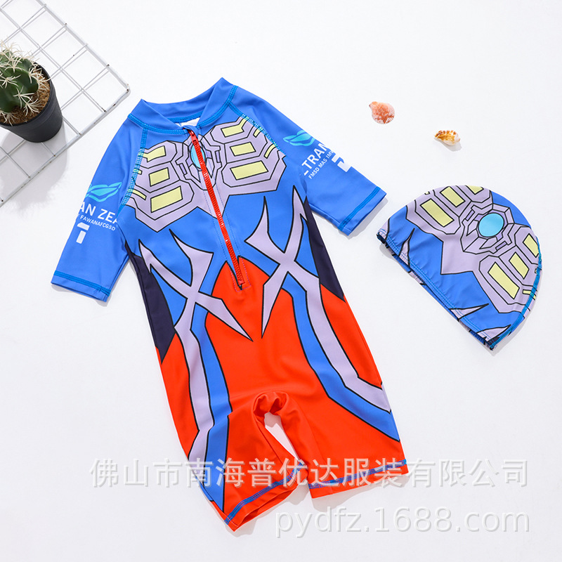 소년 수영복 만화 슈퍼맨 알트만 모자 세트 원피스 수영복 어린이 서핑 세트 공장 아울렛
