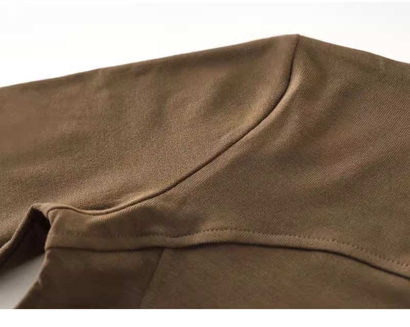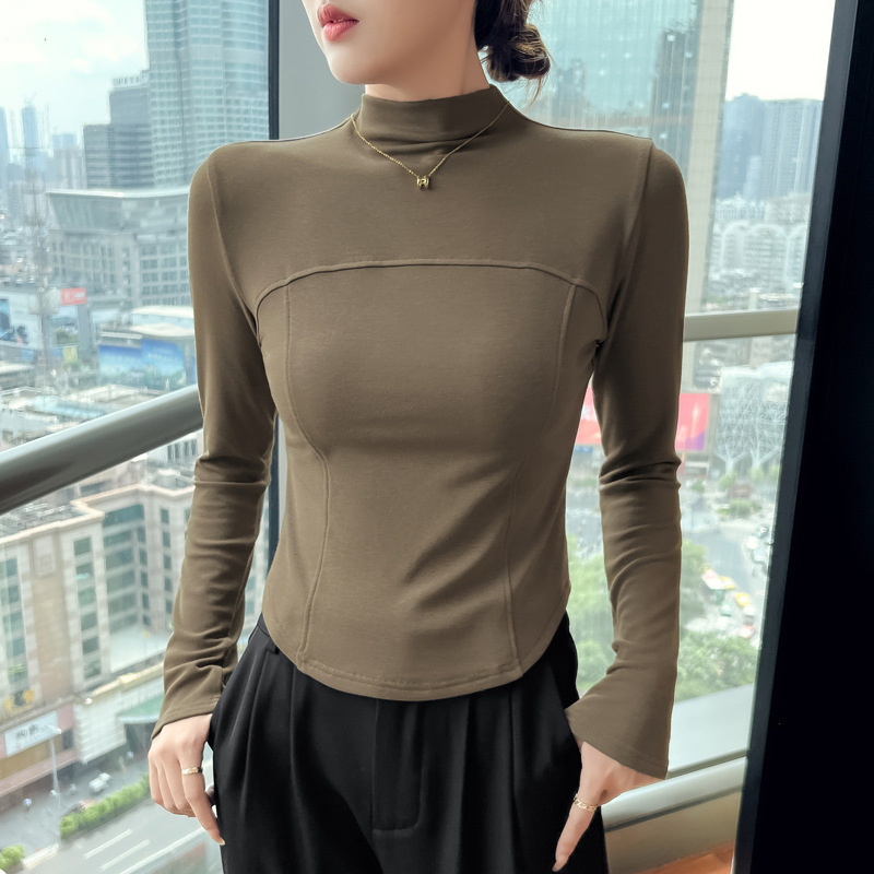 반 높이 칼라 벨벳베이스 셔츠 여성용 가을 긴팔 티셔츠 불규칙한 곡선 형 헴 올 매치 슬림 핏 탑인
