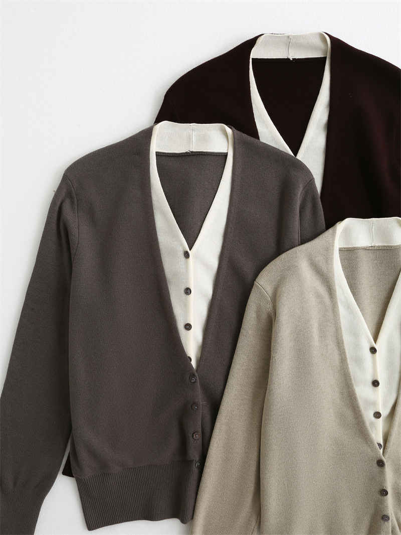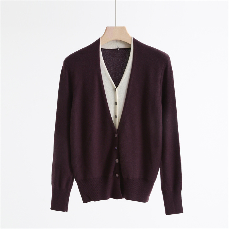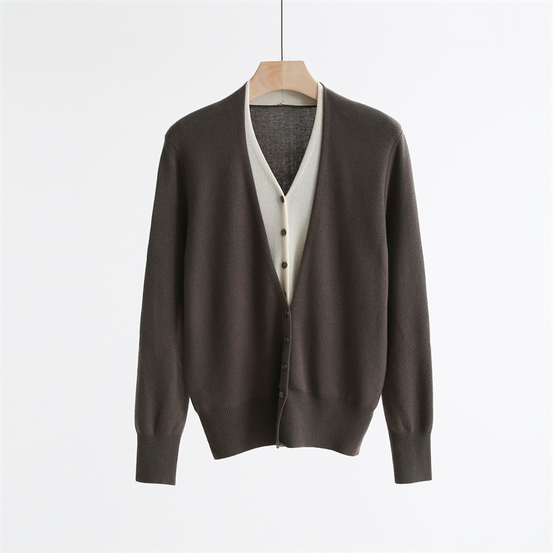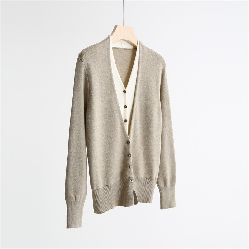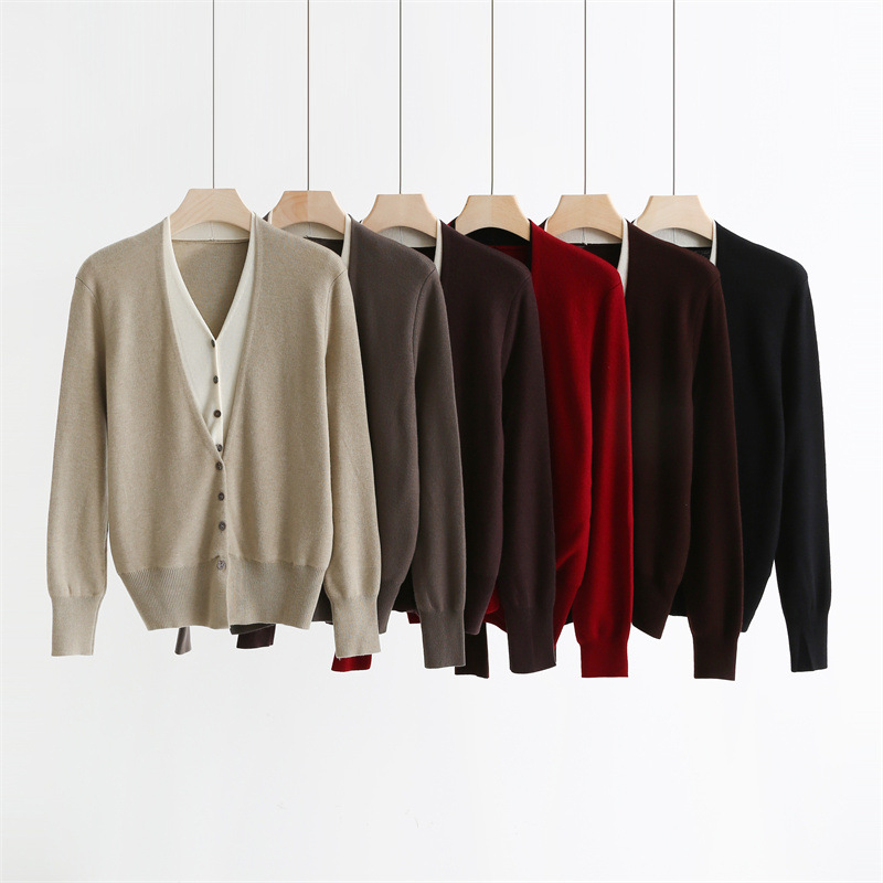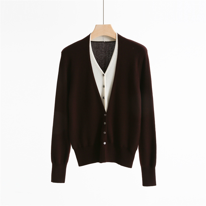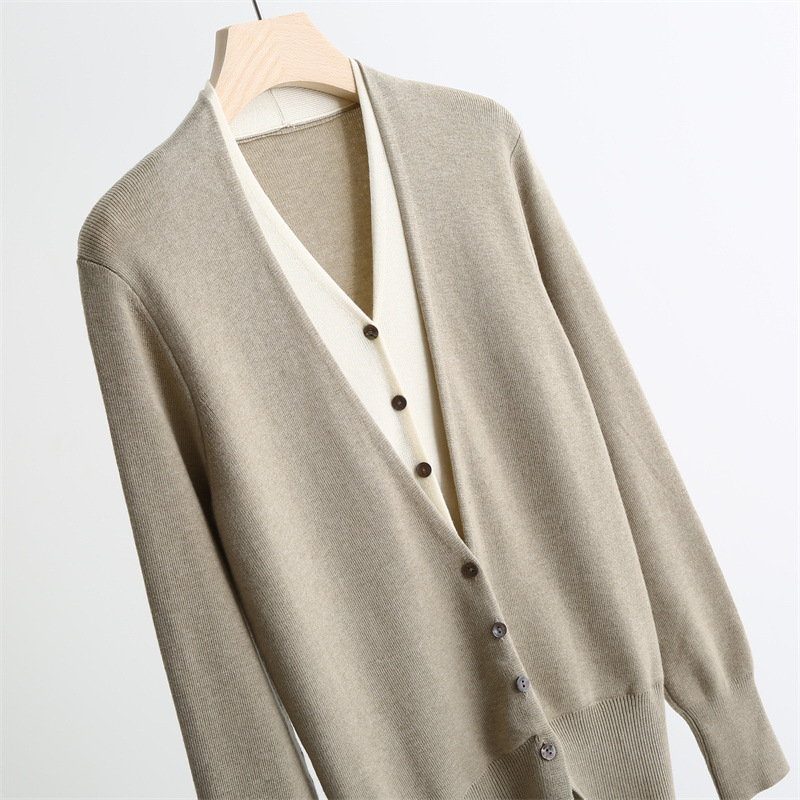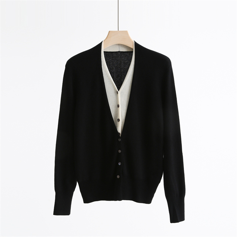 款号:QTA-8072#羊毛V领假两件开衫