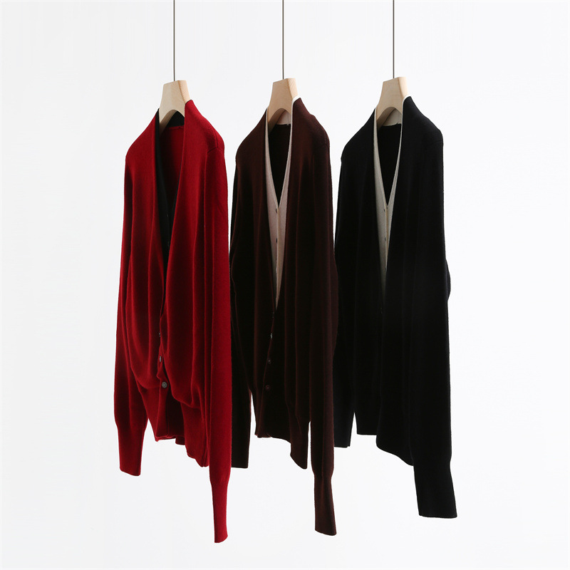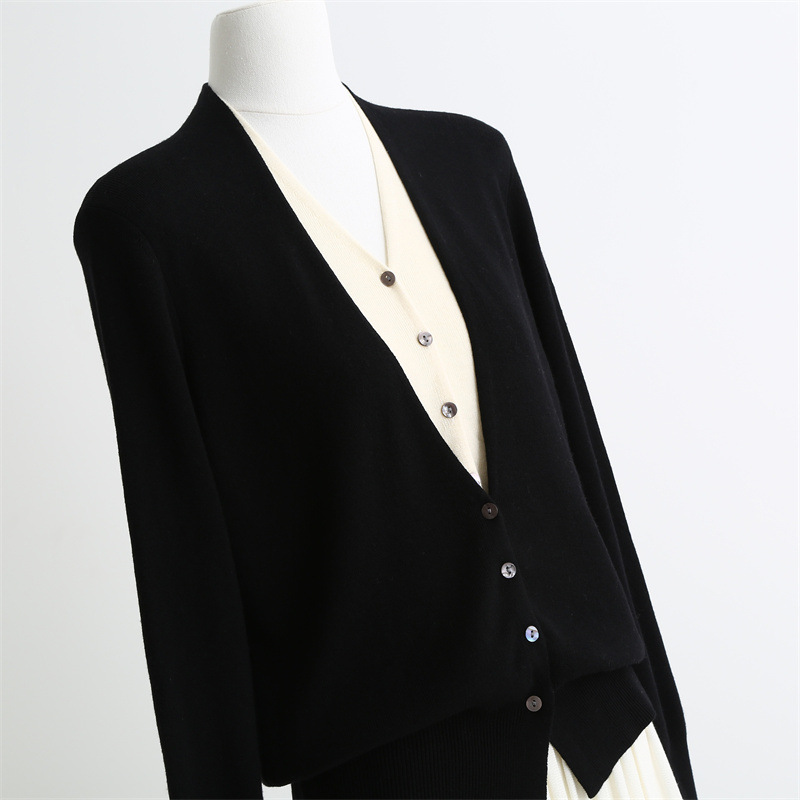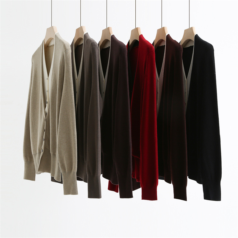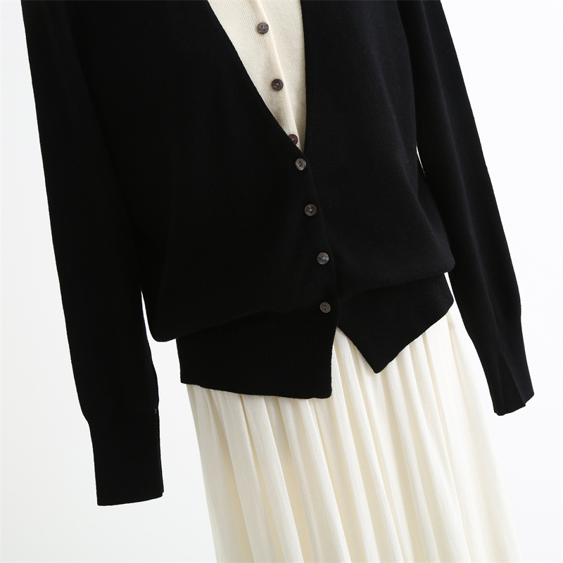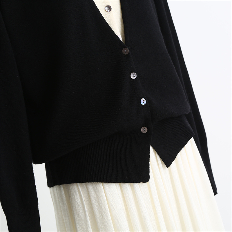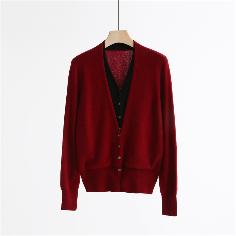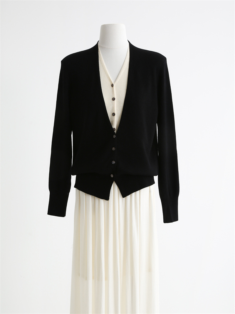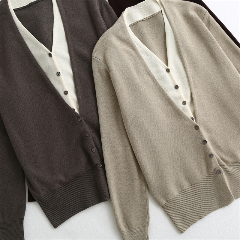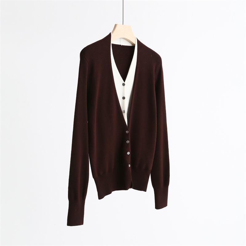 款号:QTA-8072#羊毛V领假两件开衫