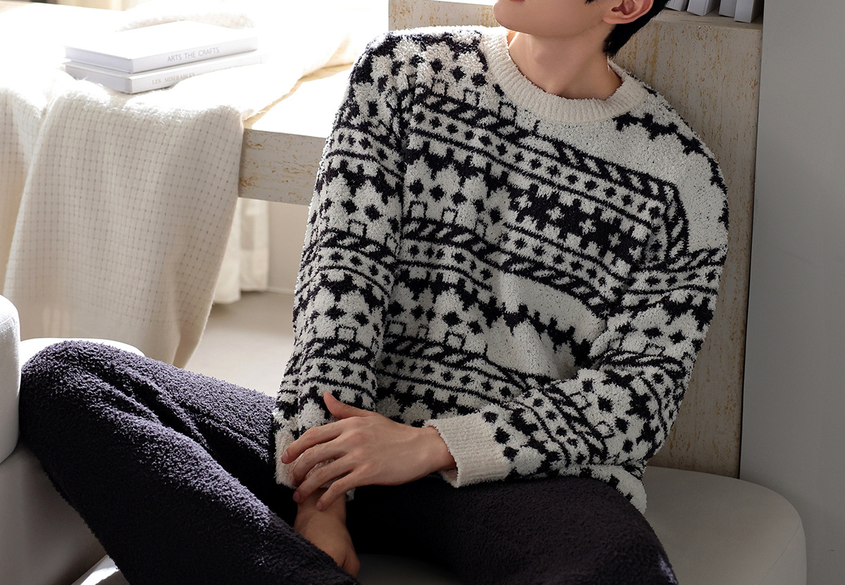 새로운 잠옷 남자 홈 옷 2024 겨울 하프 벨벳 정전기 방지 기모 세트 산호 벨벳 착용