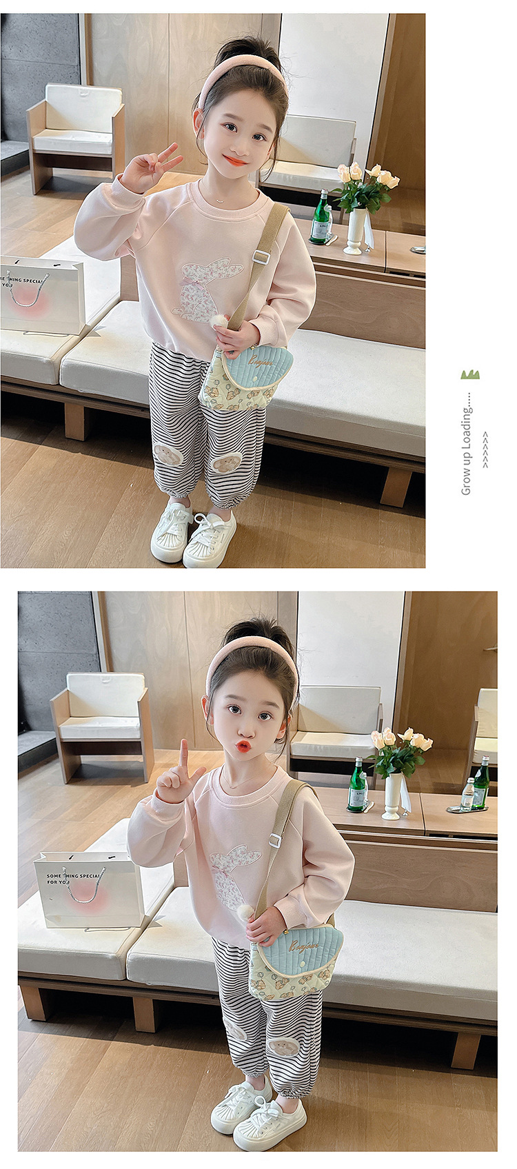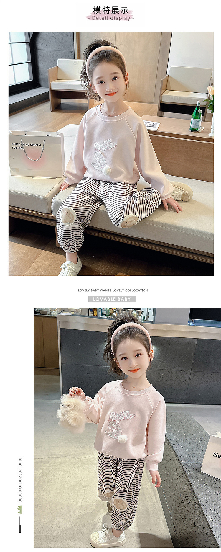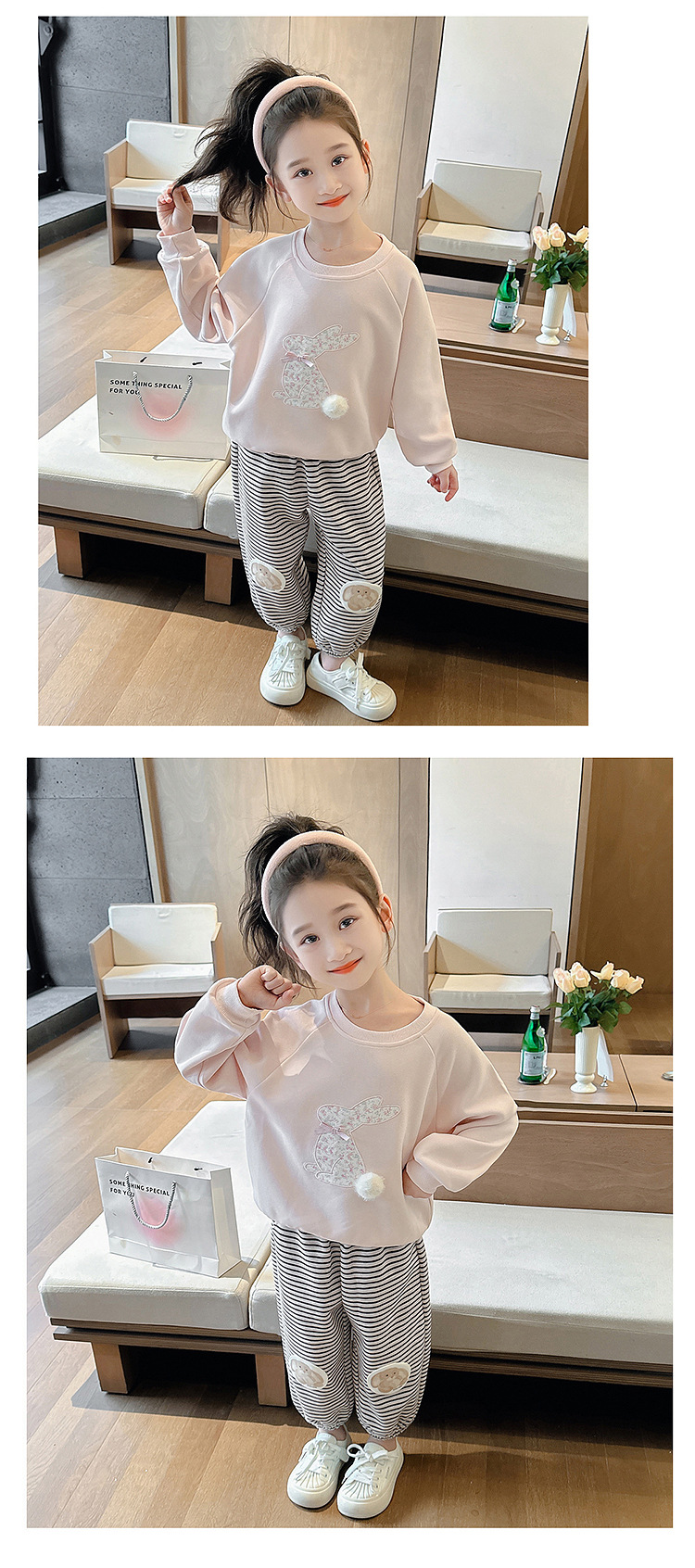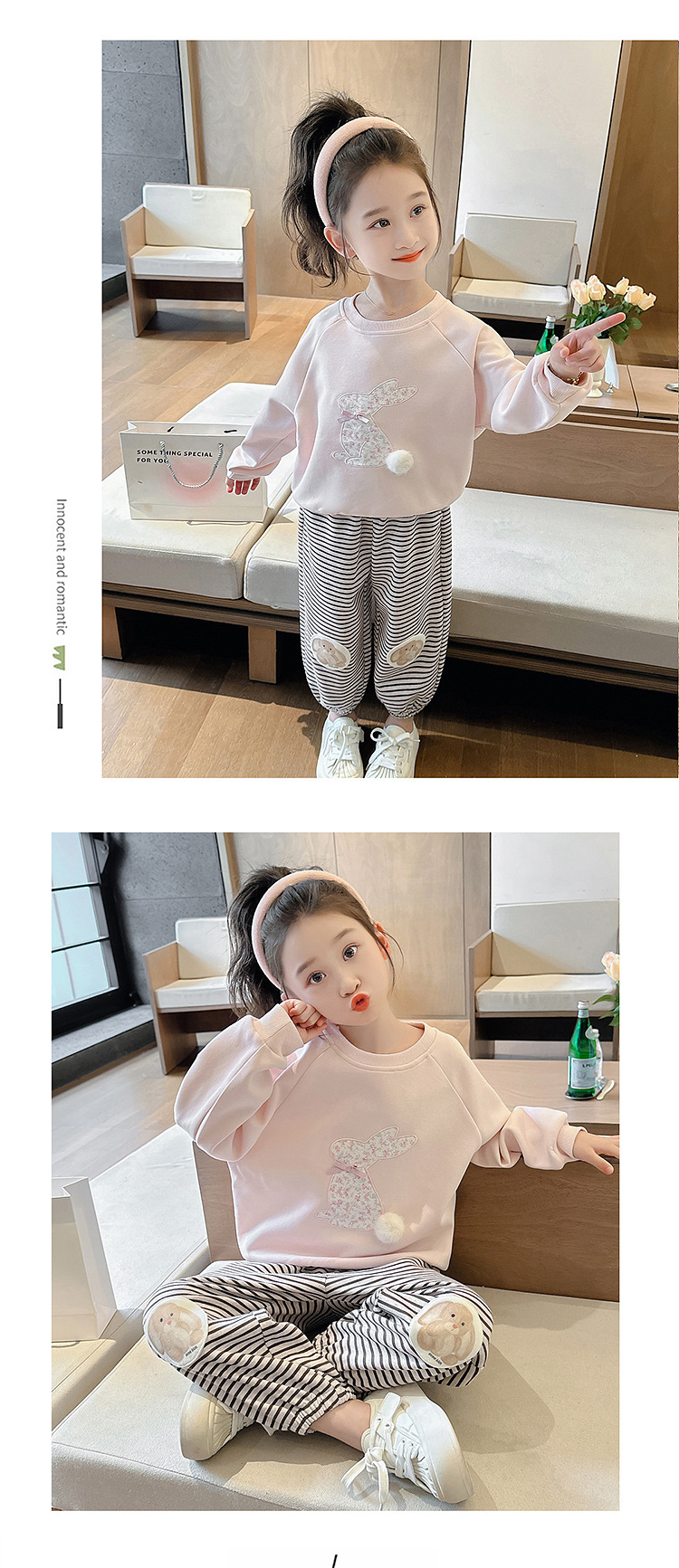 소녀 스웨터 세트 봄과 가을 2024 새로운 패션 어린 소녀 만화 토끼 캐주얼 2 피스 세트스토어 가기