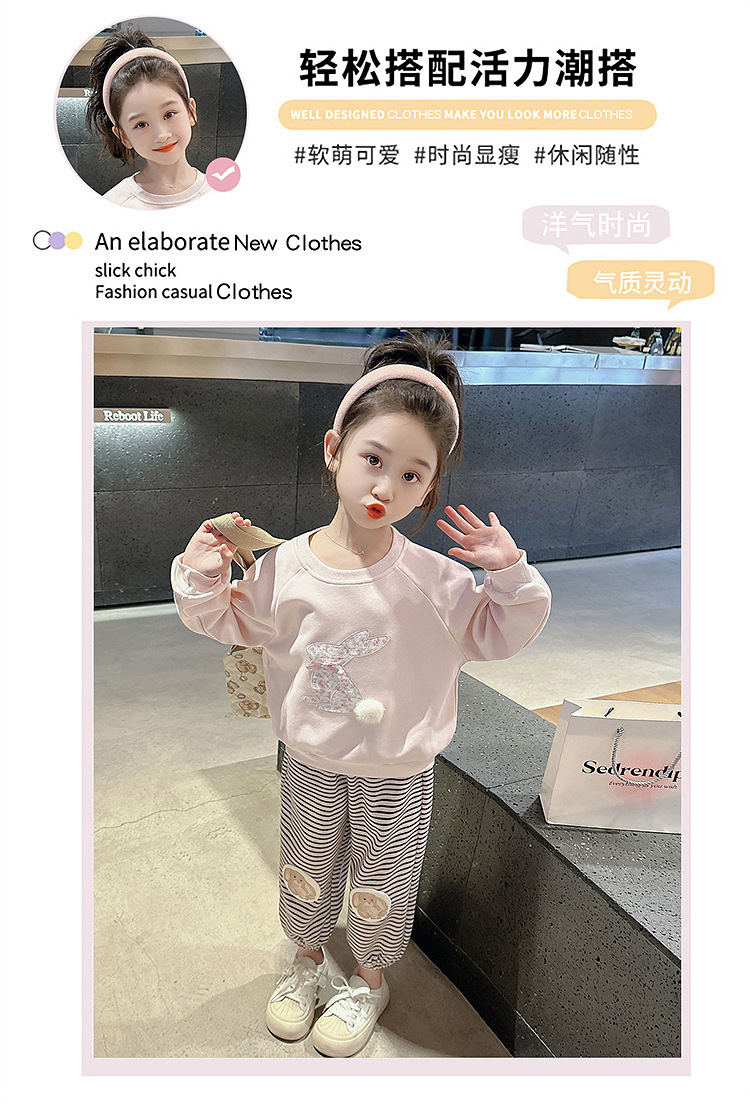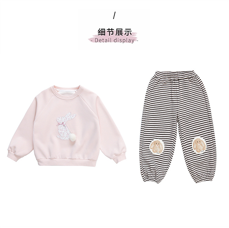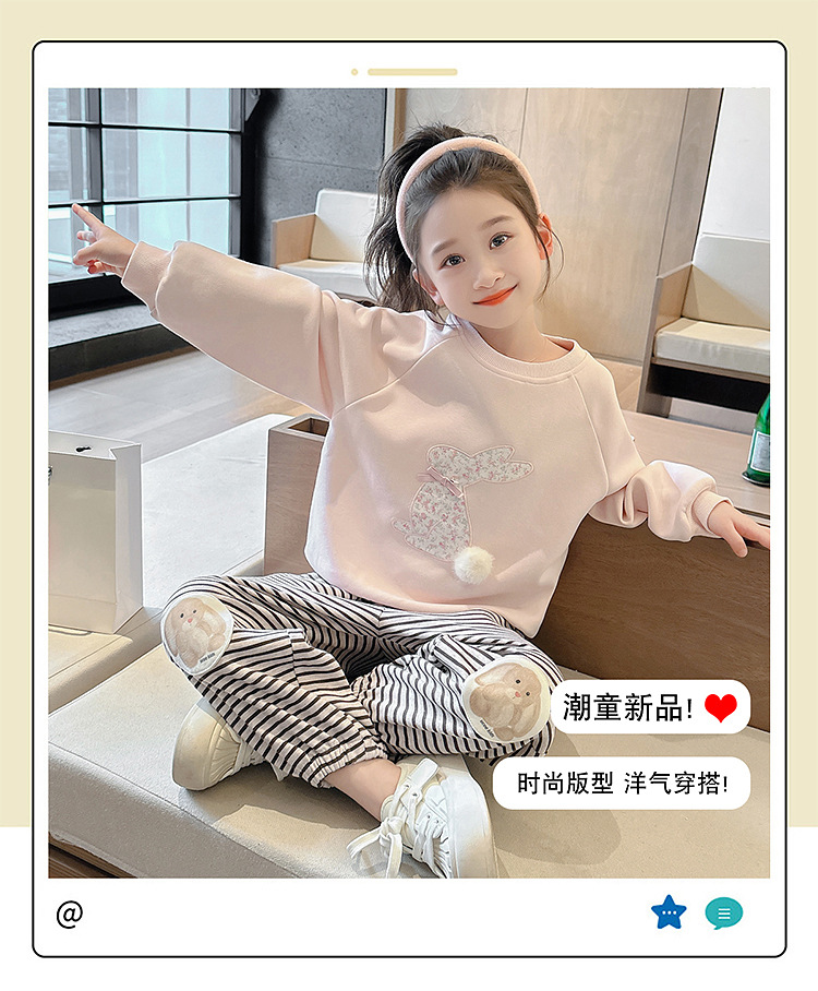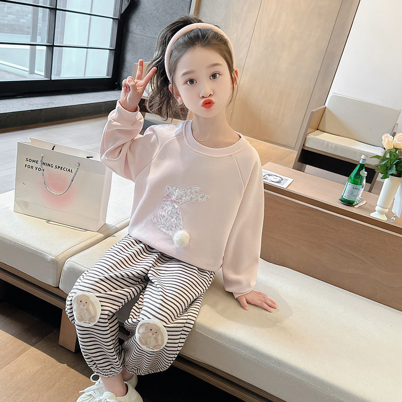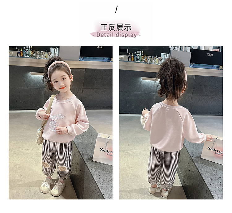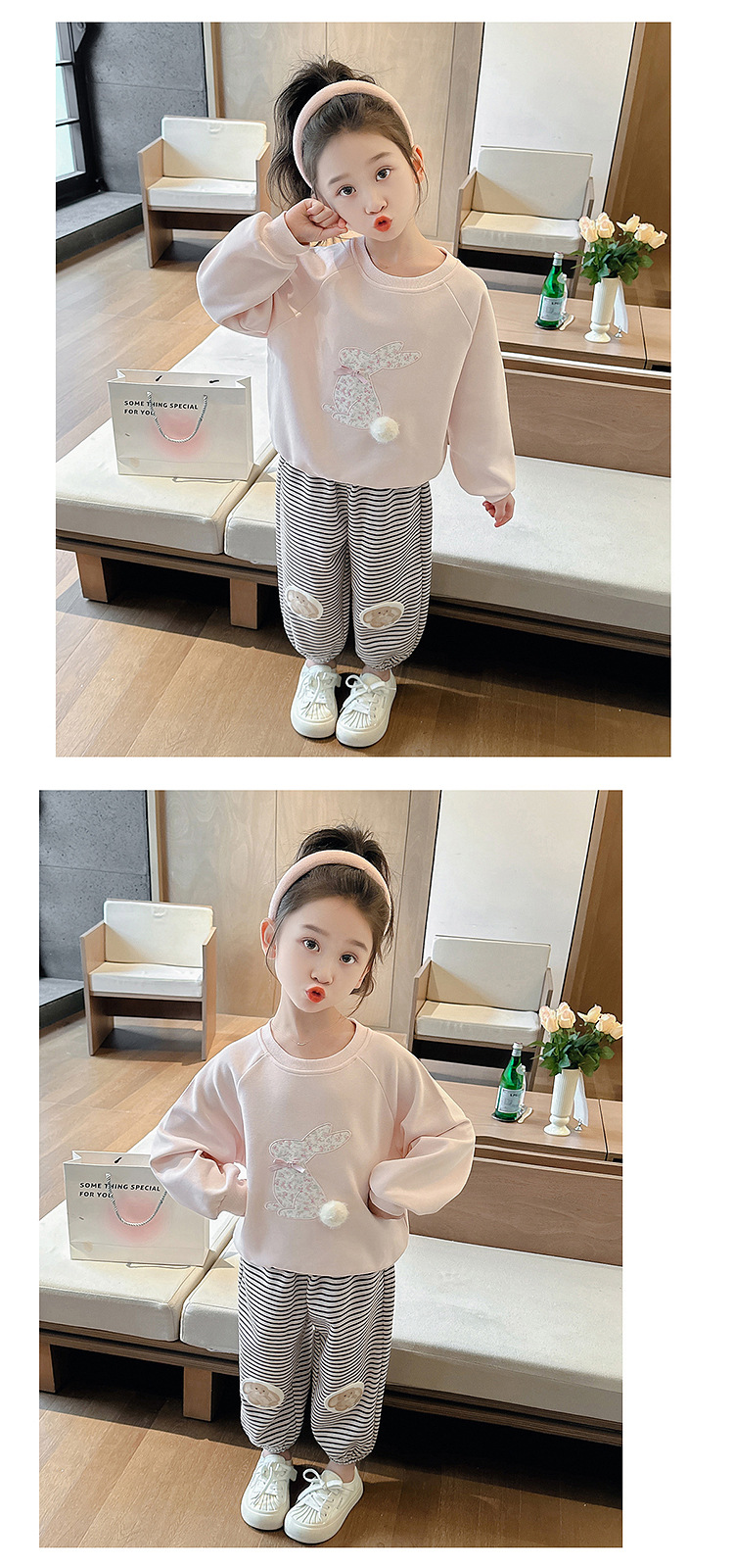 소녀 스웨터 세트 봄과 가을 2024 새로운 패션 어린 소녀 만화 토끼 캐주얼 2 피스 세트스토어 가기
