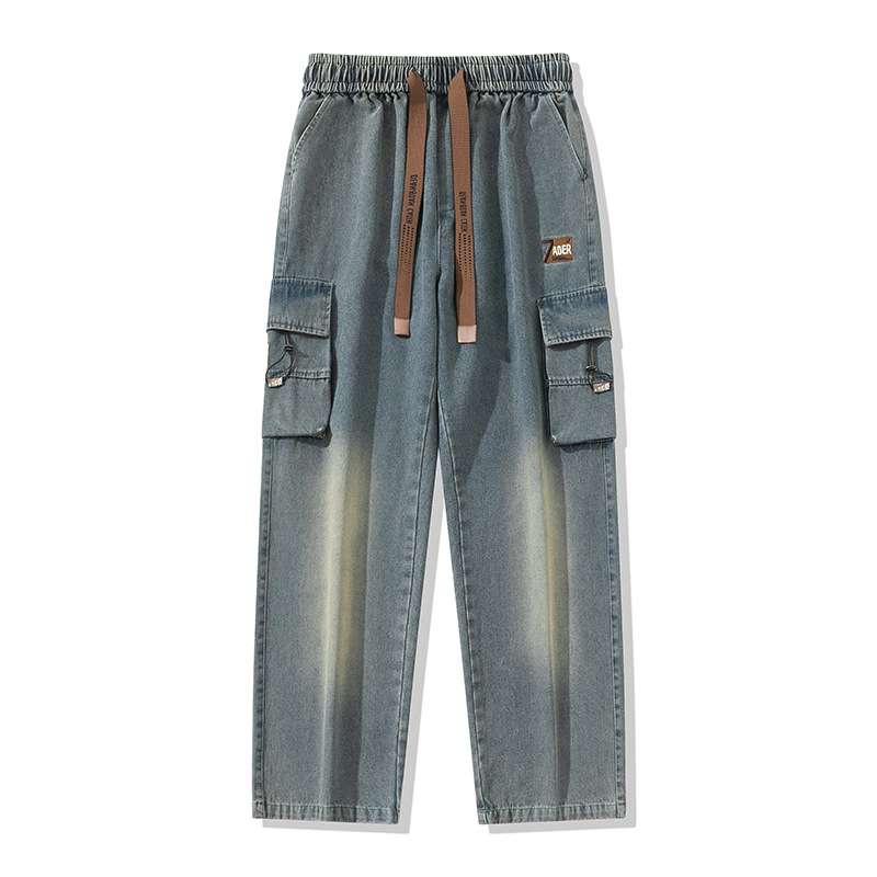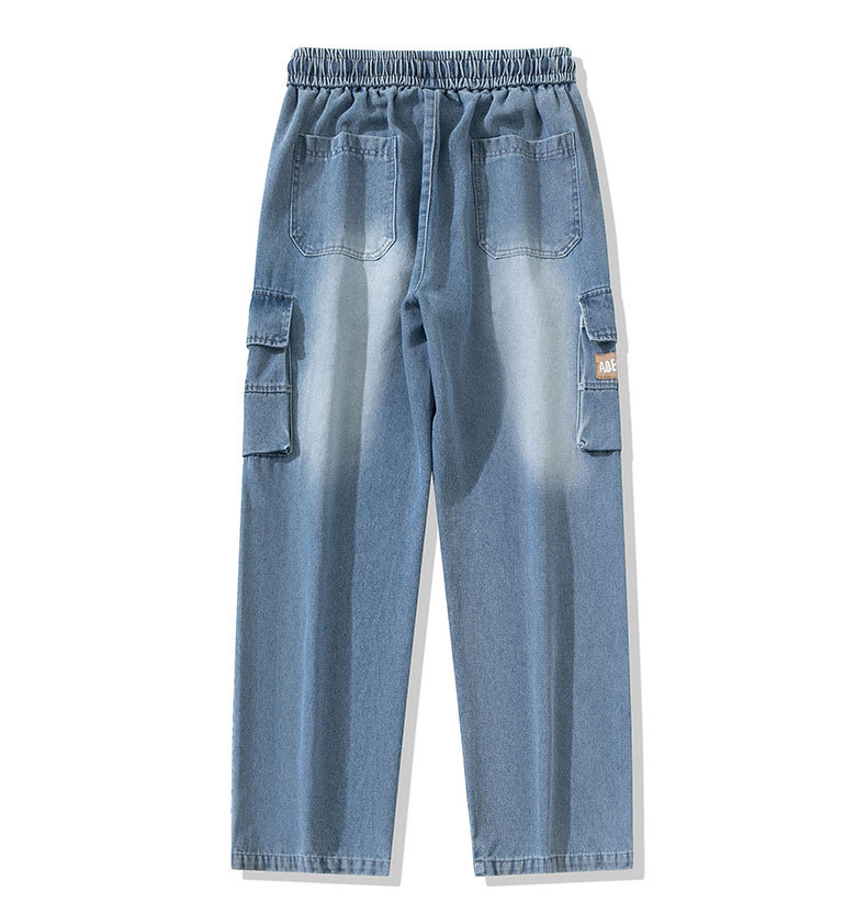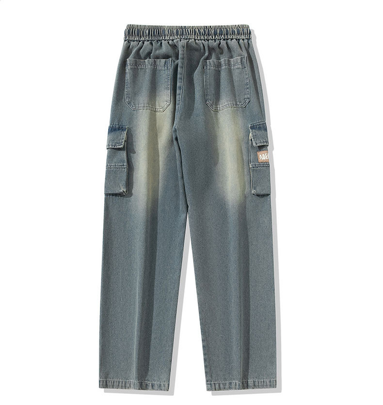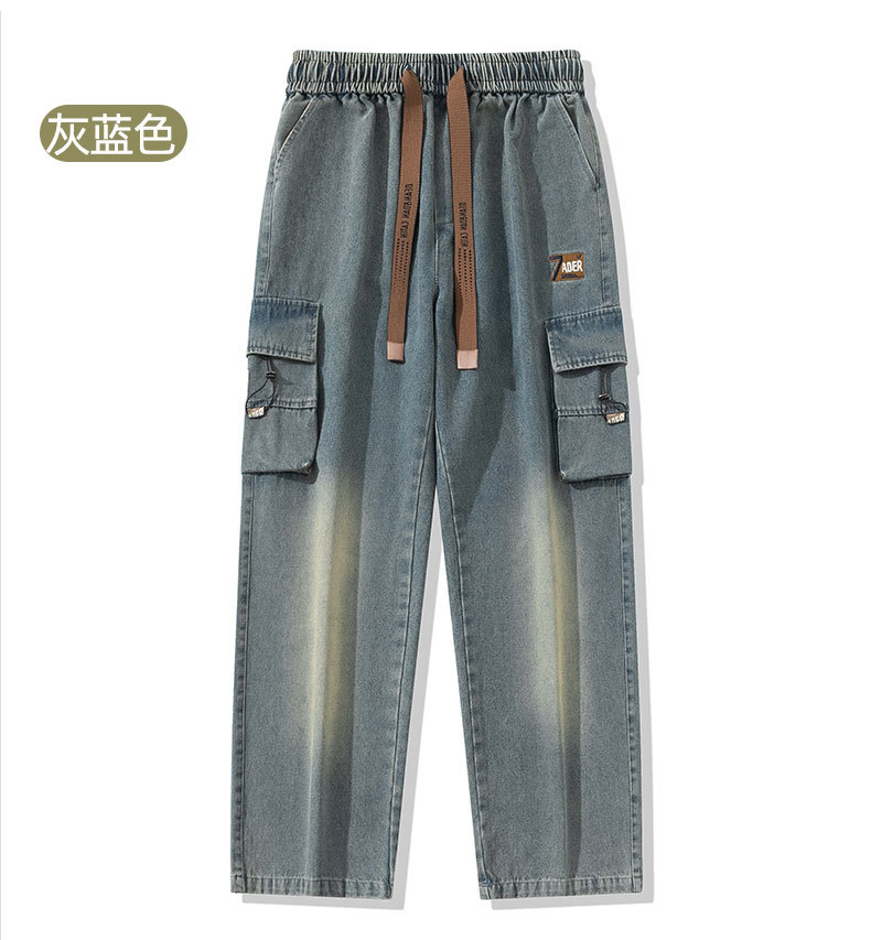 2024 느슨한 스트레이트 레트로 청바지 가을 남자 넓은 다리 캐주얼 전국 패션 플러스 사이즈 세탁 된 다국부 바지스토어 가기