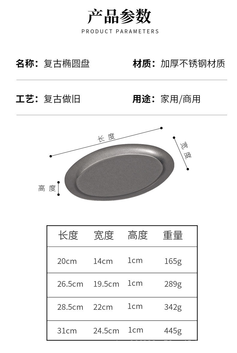 빈티지 스테인레스 스틸 플레이트 304 빈티지 눈송이 그레이 스타일 타원형 플레이트 플랫 플레이트 바베큐 핫 팟 레스토랑 얕은 플레이트스토어 가기