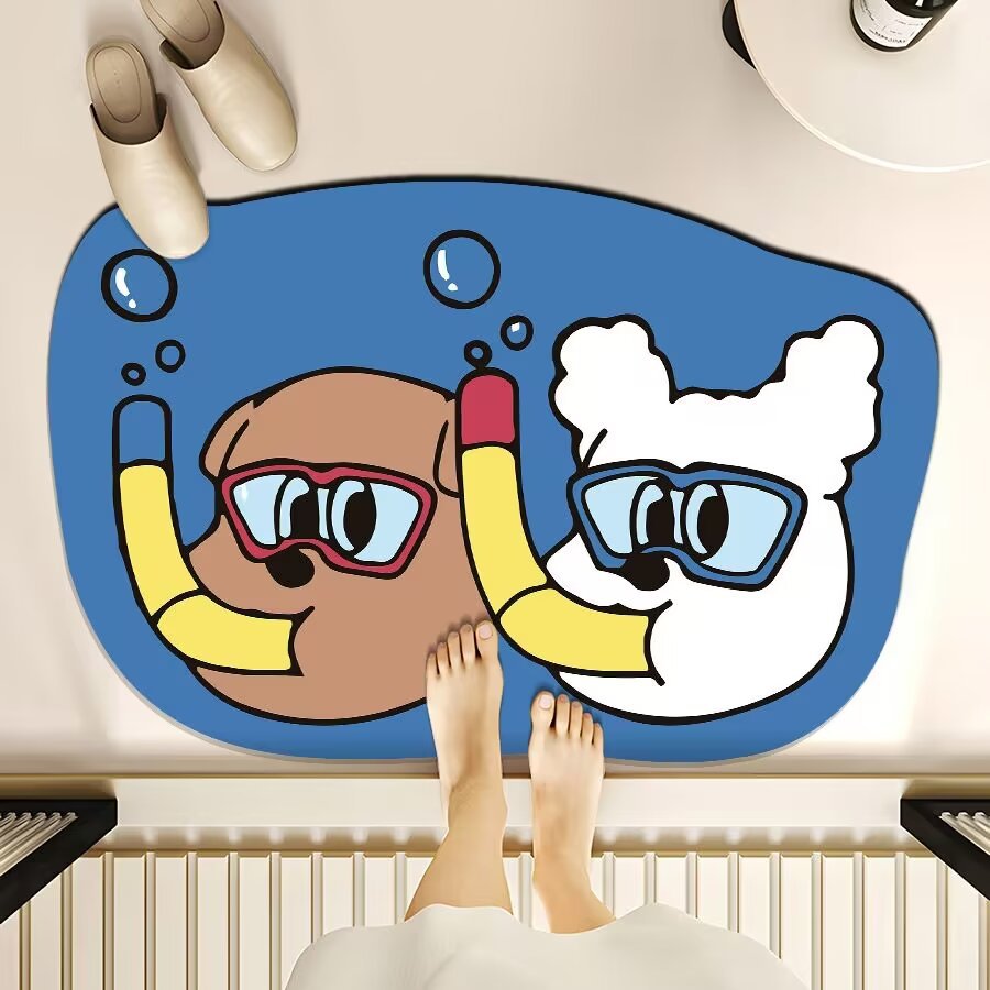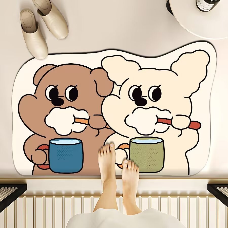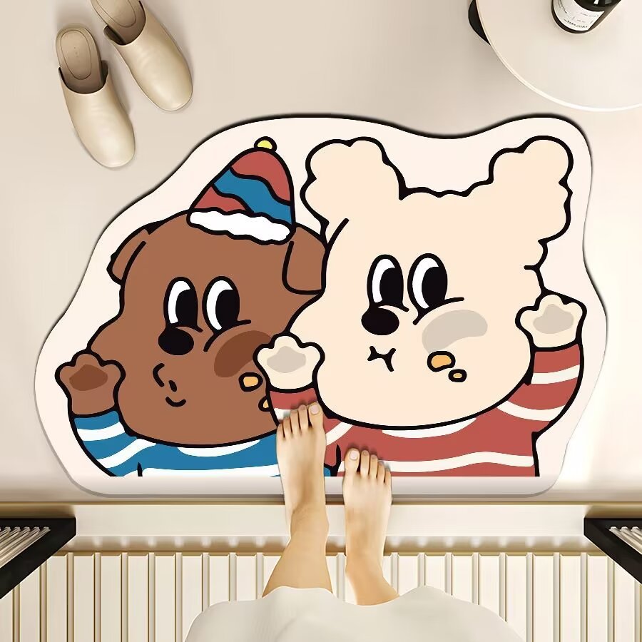 만화 귀여운 개 매트 기술 벨벳 욕실 매트 화장실 물 흡수성 발 매트 입구 문 매트스토어 가기