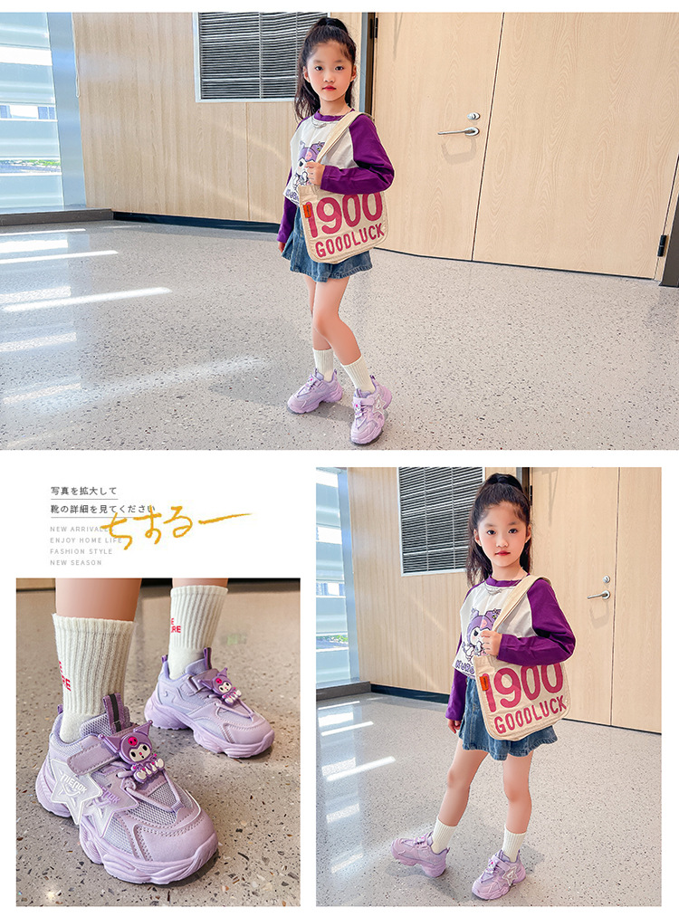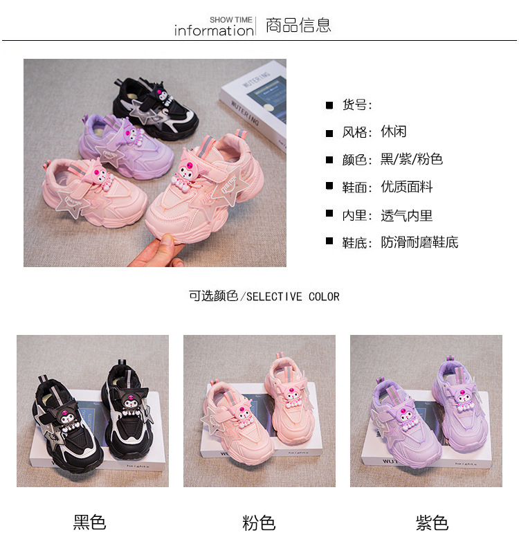 여자 신발 2025 새로운 봄, 가을 어린이 스포츠 신발 여자 쿠로미 메쉬 아빠 신발 통기성 중대형 어린이스토어 가기
