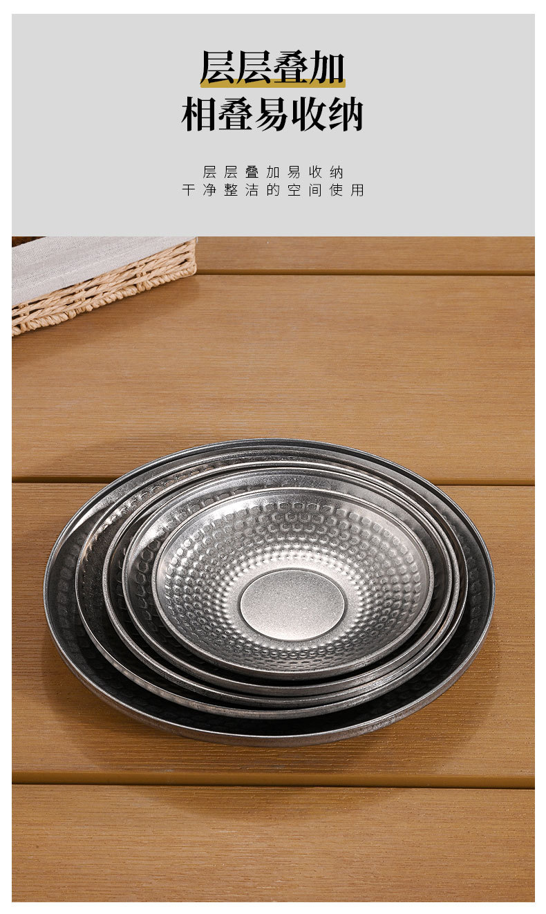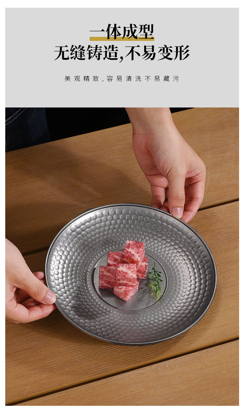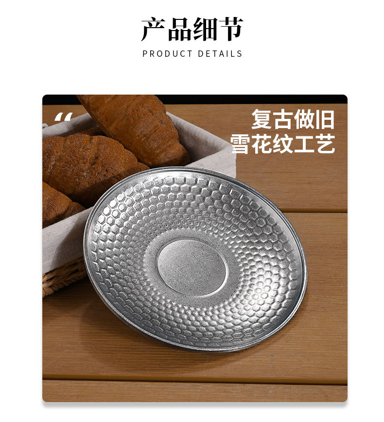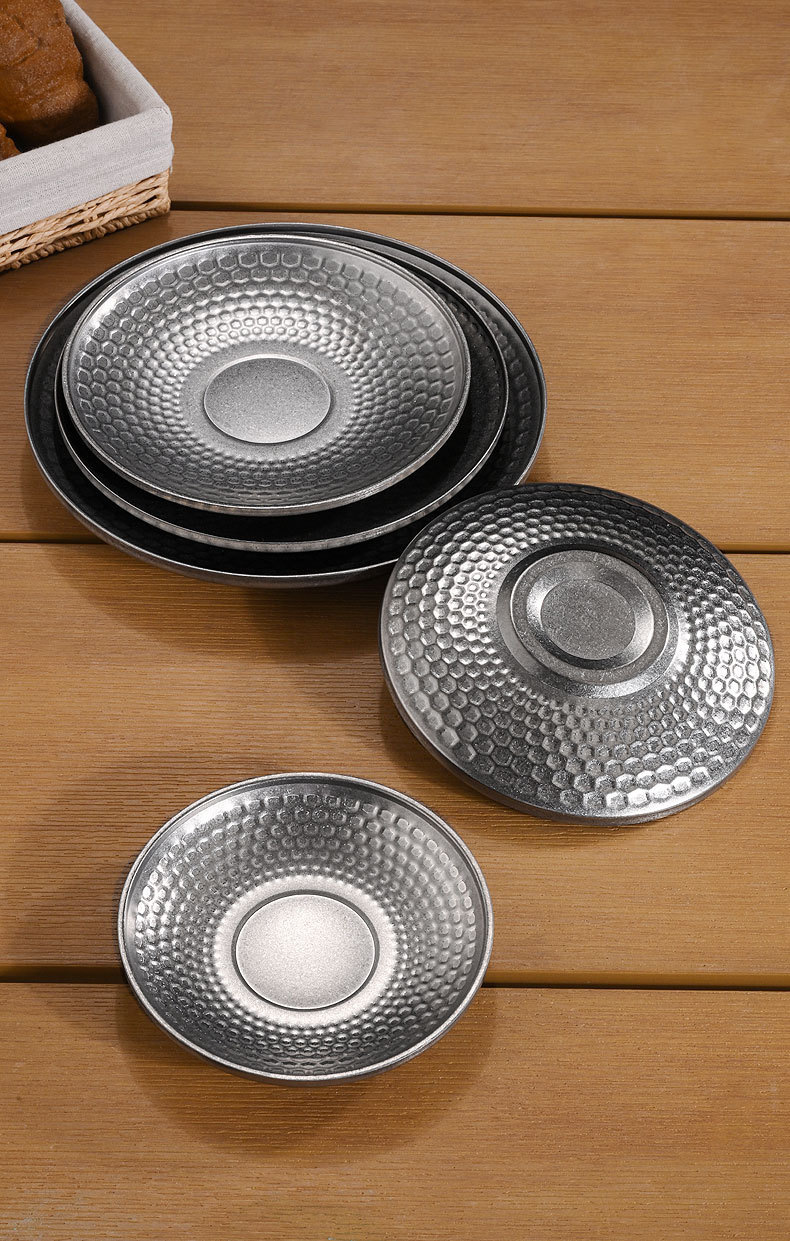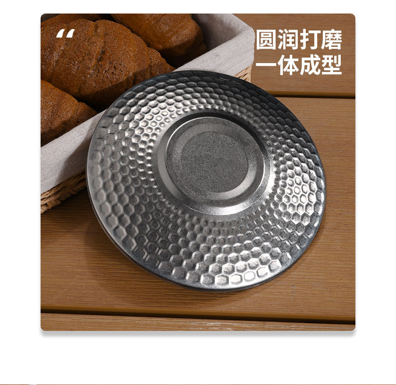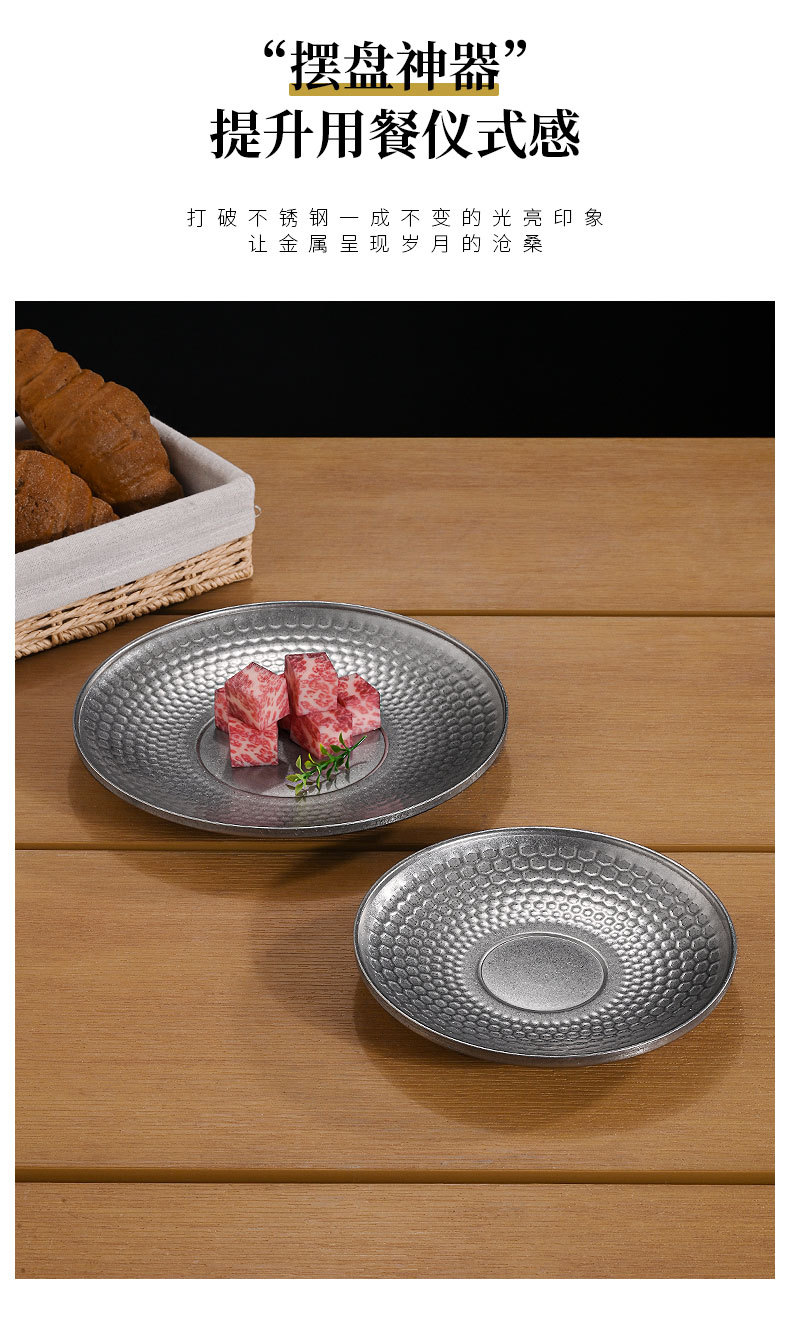 직접 공급 복고풍 304 스테인레스 스틸 디스크 상업 고민 바베큐 가게 망치 패턴 플레이트 산업 스타일의 디저트 케이크 플레이트