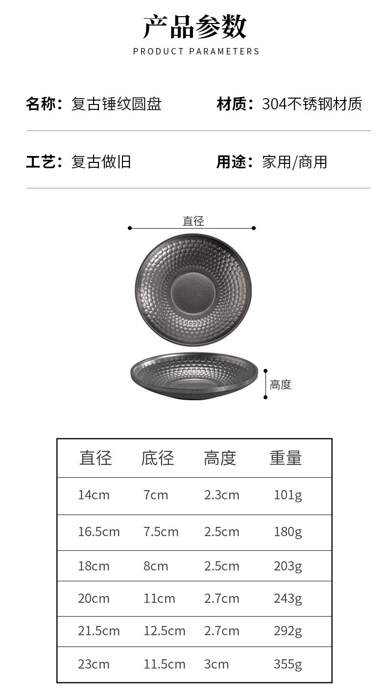 직접 공급 복고풍 304 스테인레스 스틸 디스크 상업 고민 바베큐 가게 망치 패턴 플레이트 산업 스타일의 디저트 케이크 플레이트스토어 가기