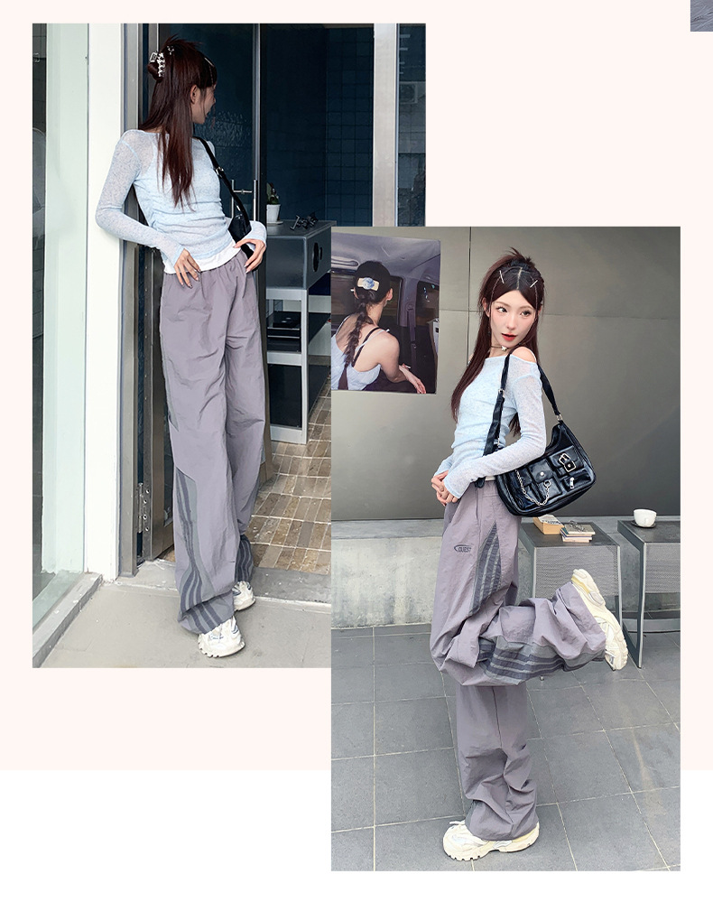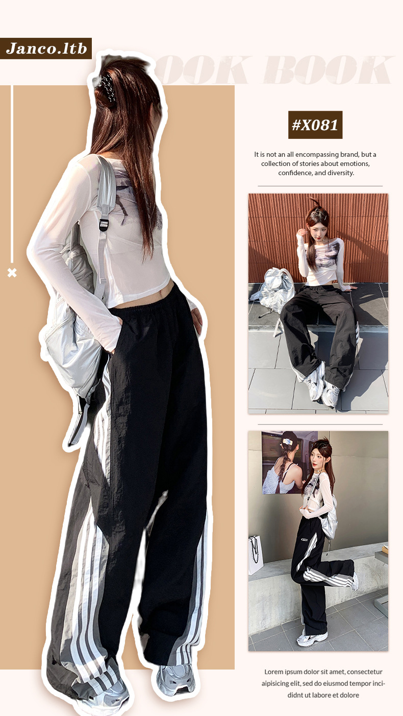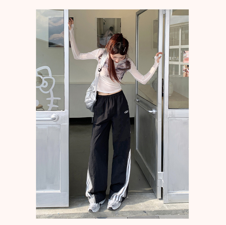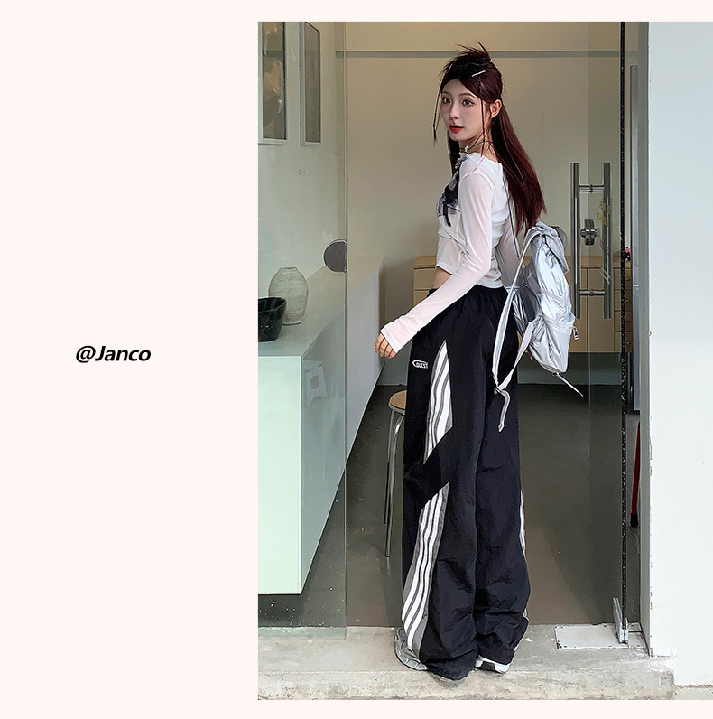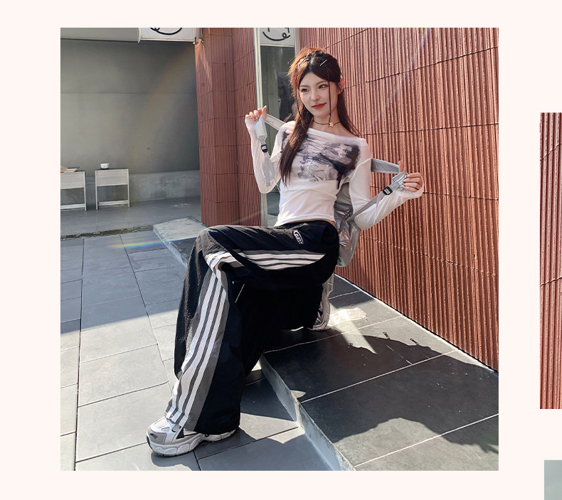 검은 줄무늬 야외 빠른 건조 느슨한 캐주얼 바지 여성의 가을 및 겨울 넓은 다리 작업복 등산 낙하산 바지스토어 가기
