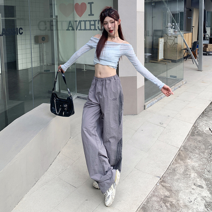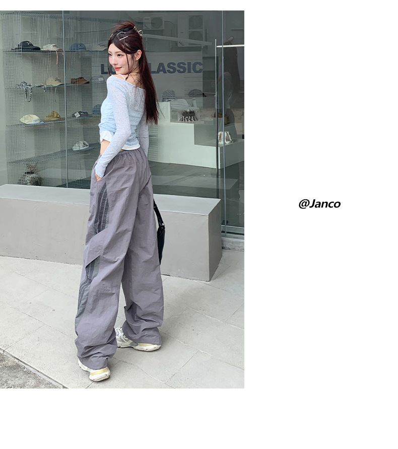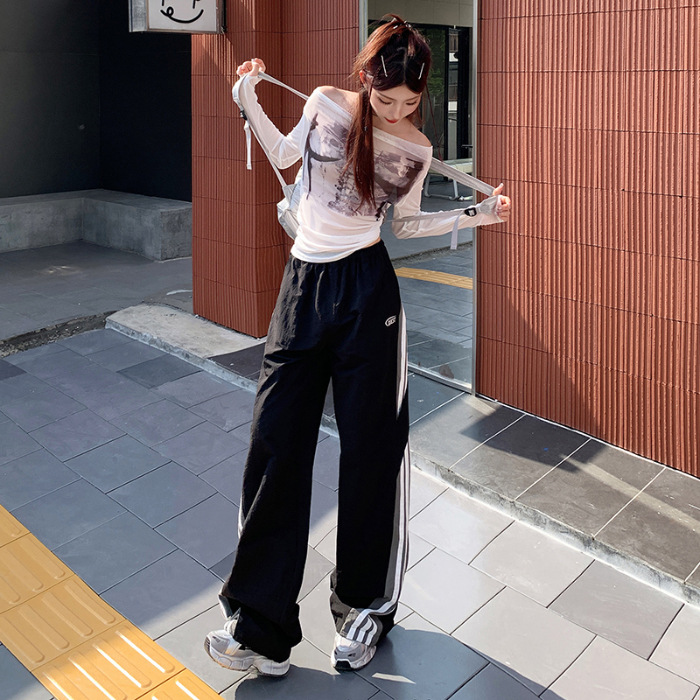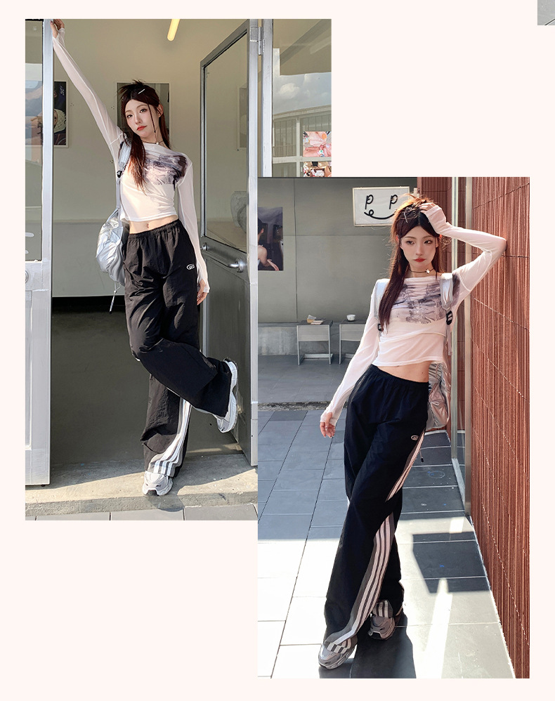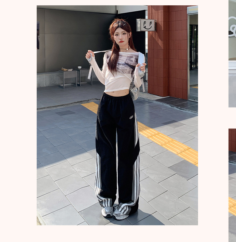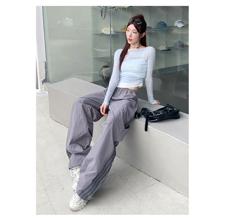 검은 줄무늬 야외 빠른 건조 느슨한 캐주얼 바지 여성의 가을 및 겨울 넓은 다리 작업복 등산 낙하산 바지스토어 가기