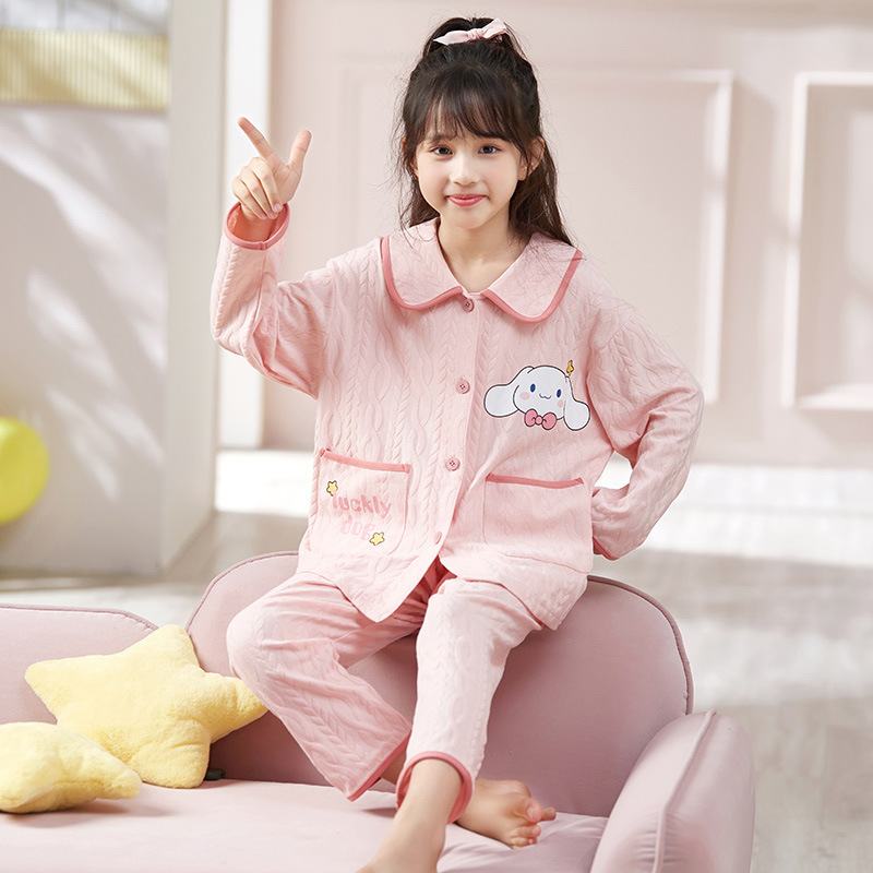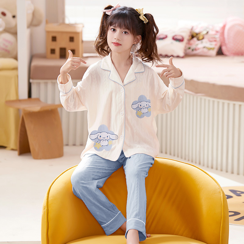 어린이 잠옷 소녀의 봄과 가을 얇은 순수 자카드 카디건 큰 어린이 공주 소녀의 집 옷 세트 여름스토어 가기
