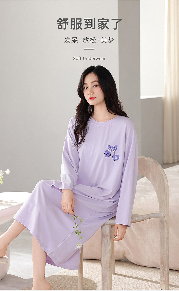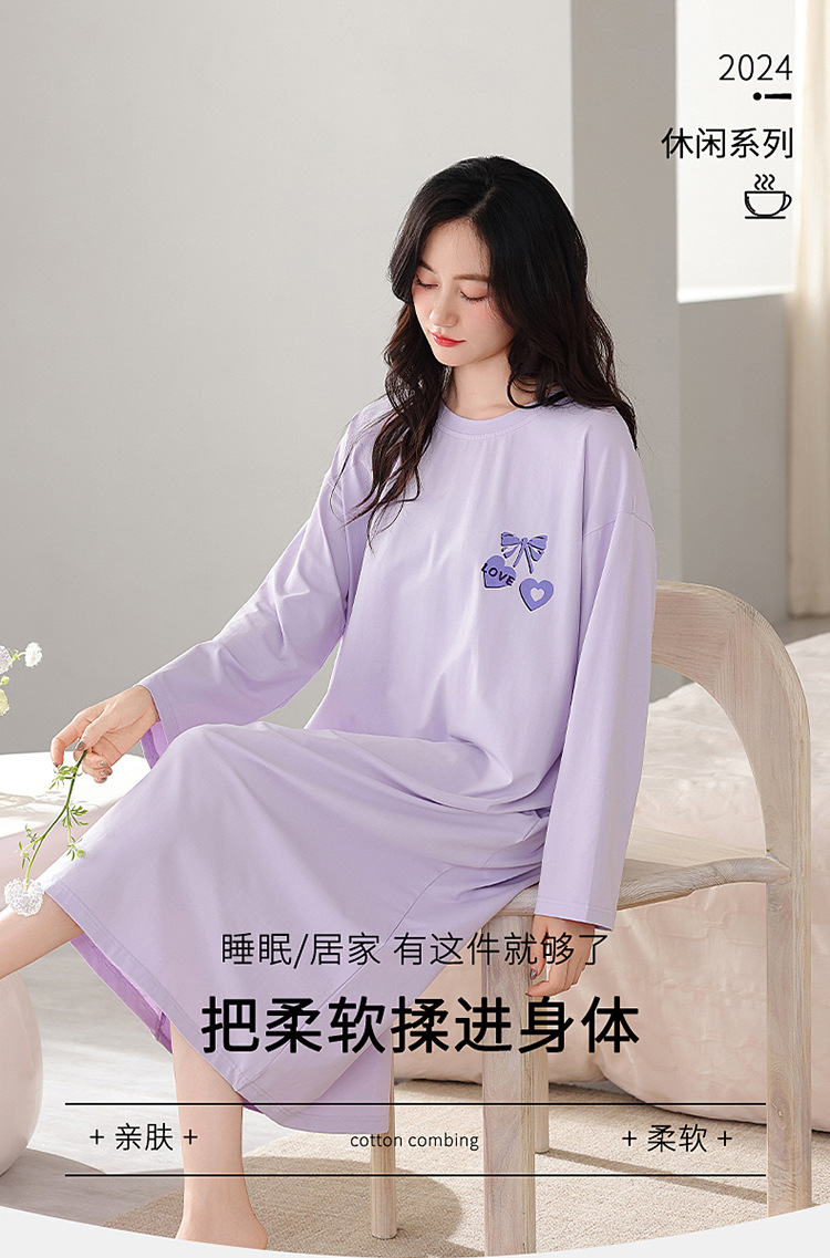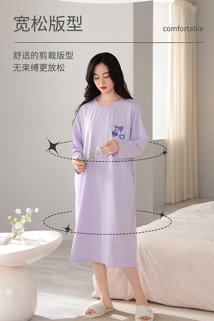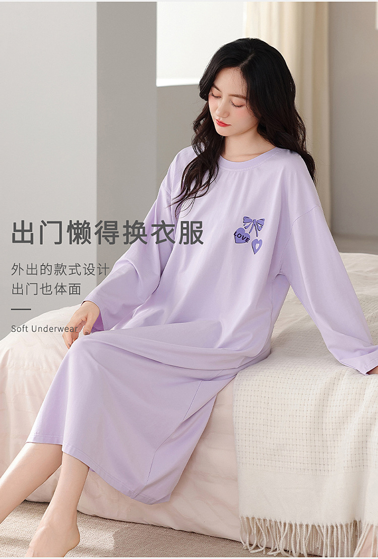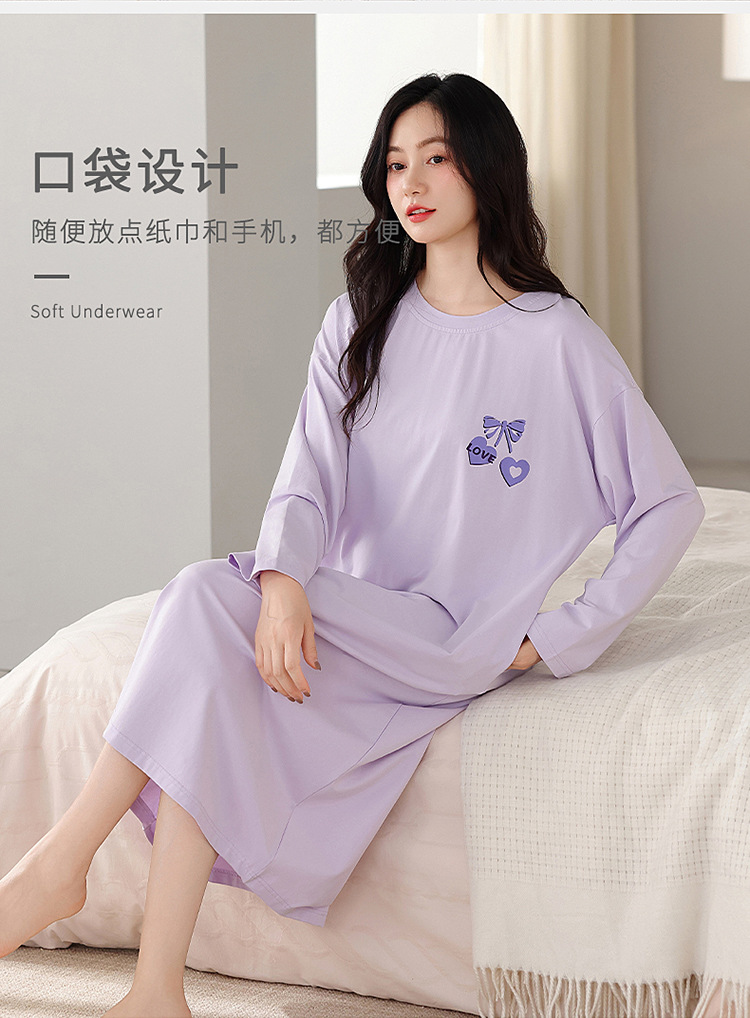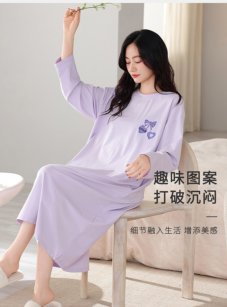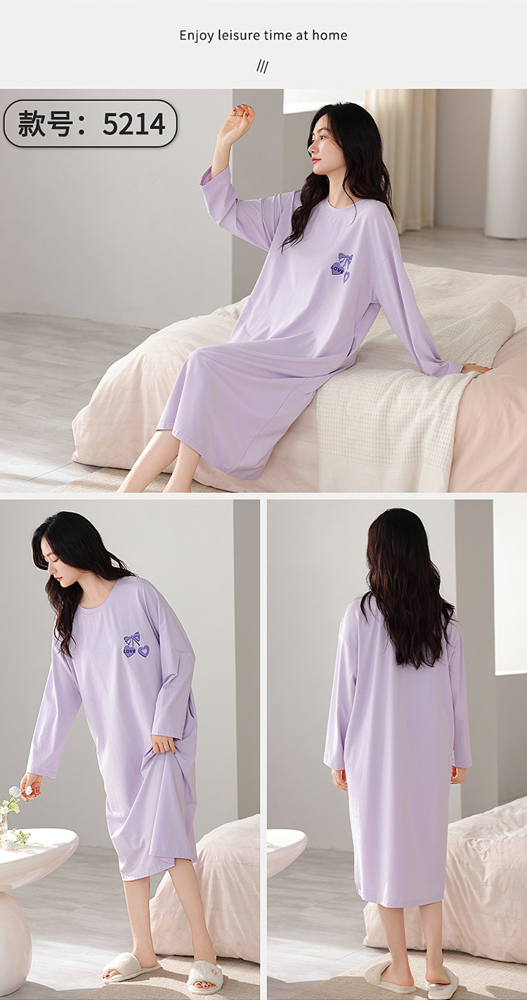 코튼 나이트 가운 여성의 가을과 겨울 긴팔 플러스 사이즈 새로운 스타일 간단한 느슨한 옷 파자마 캐주얼 홈 잠옷스토어 가기