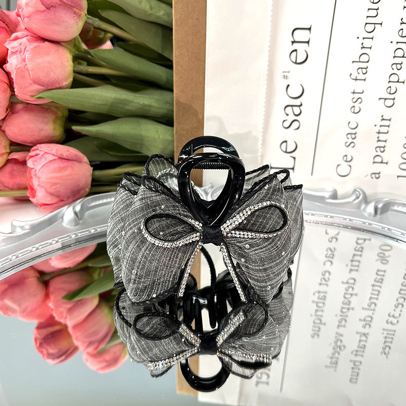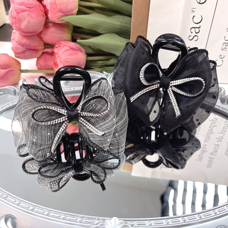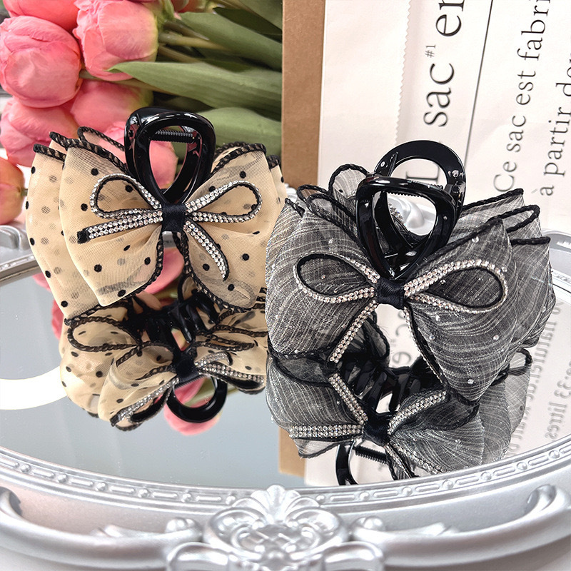 2024 새로운 플래시 다이아몬드 활 웨이브 도트 머리 장식 메쉬 버블 그립 클립 하이 센스 머리핀 뒤 머리 상어 클립
