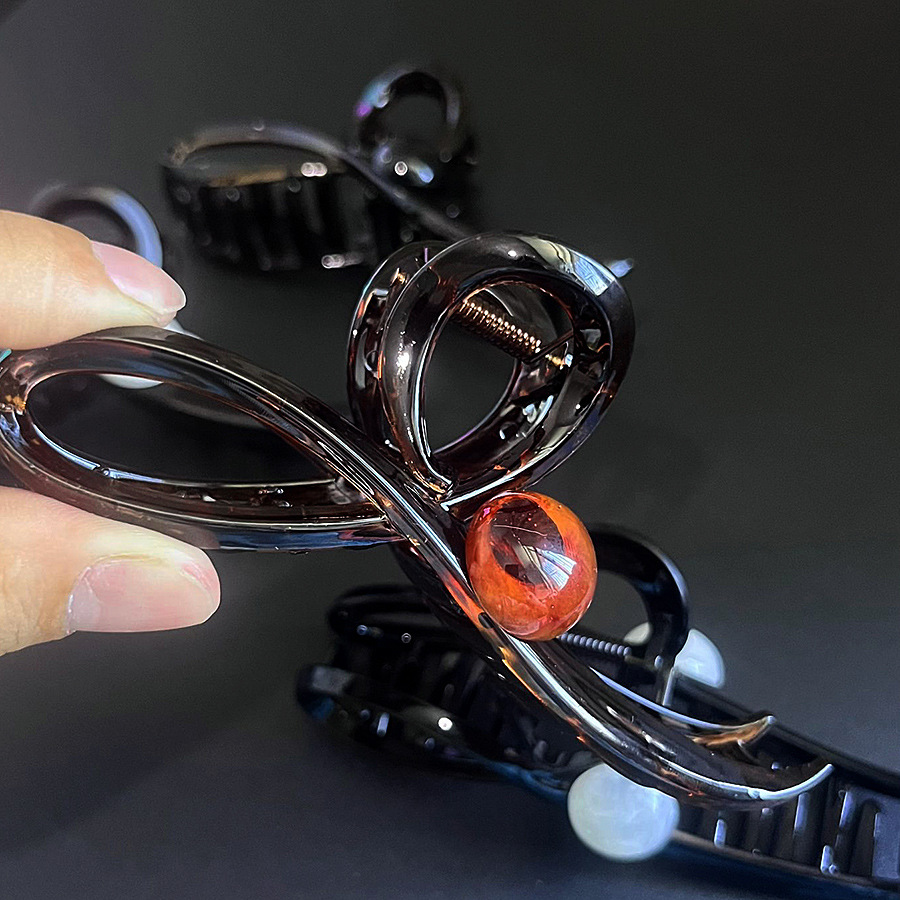 홍차 진주 헤어 클립 여성의 새로운 등 머리 클립 대형 헤어 클립 고급 상어 클립 헤드웨어