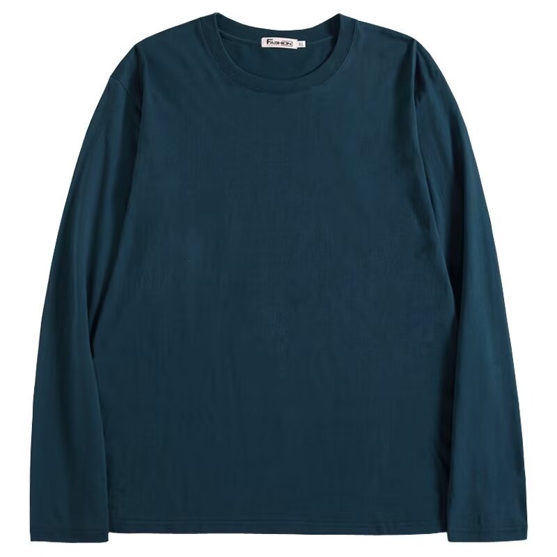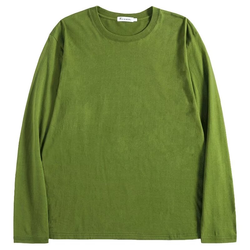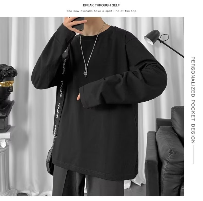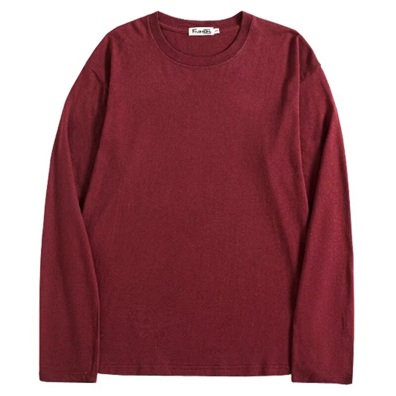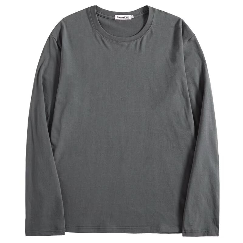 새로운 솔리드 컬러 코튼 긴팔 티셔츠 남성용 루즈 라운드 넥 기본베이스 셔츠 화이트 티셔츠스토어 가기