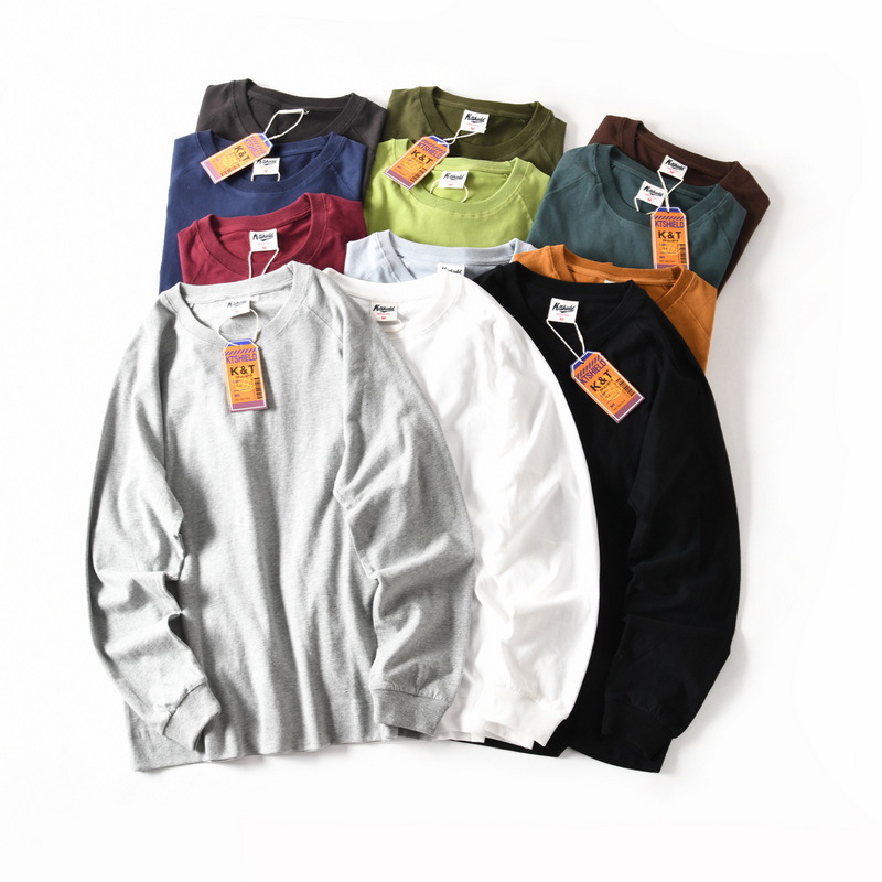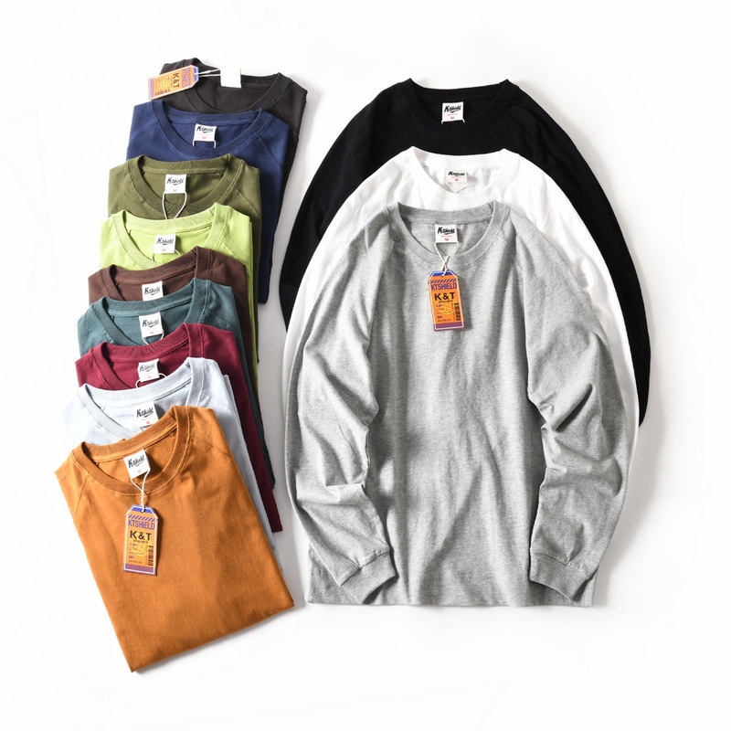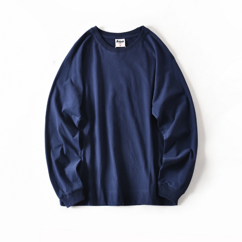 새로운 면 세척 편안한 통기성 느슨한 캐주얼 라운드 넥 룰란 긴 소매 티셔츠 남성용 가을베이스 셔츠 트렌디스토어 가기