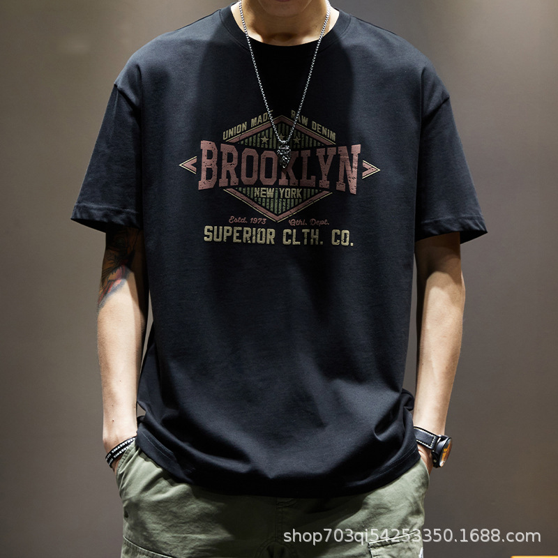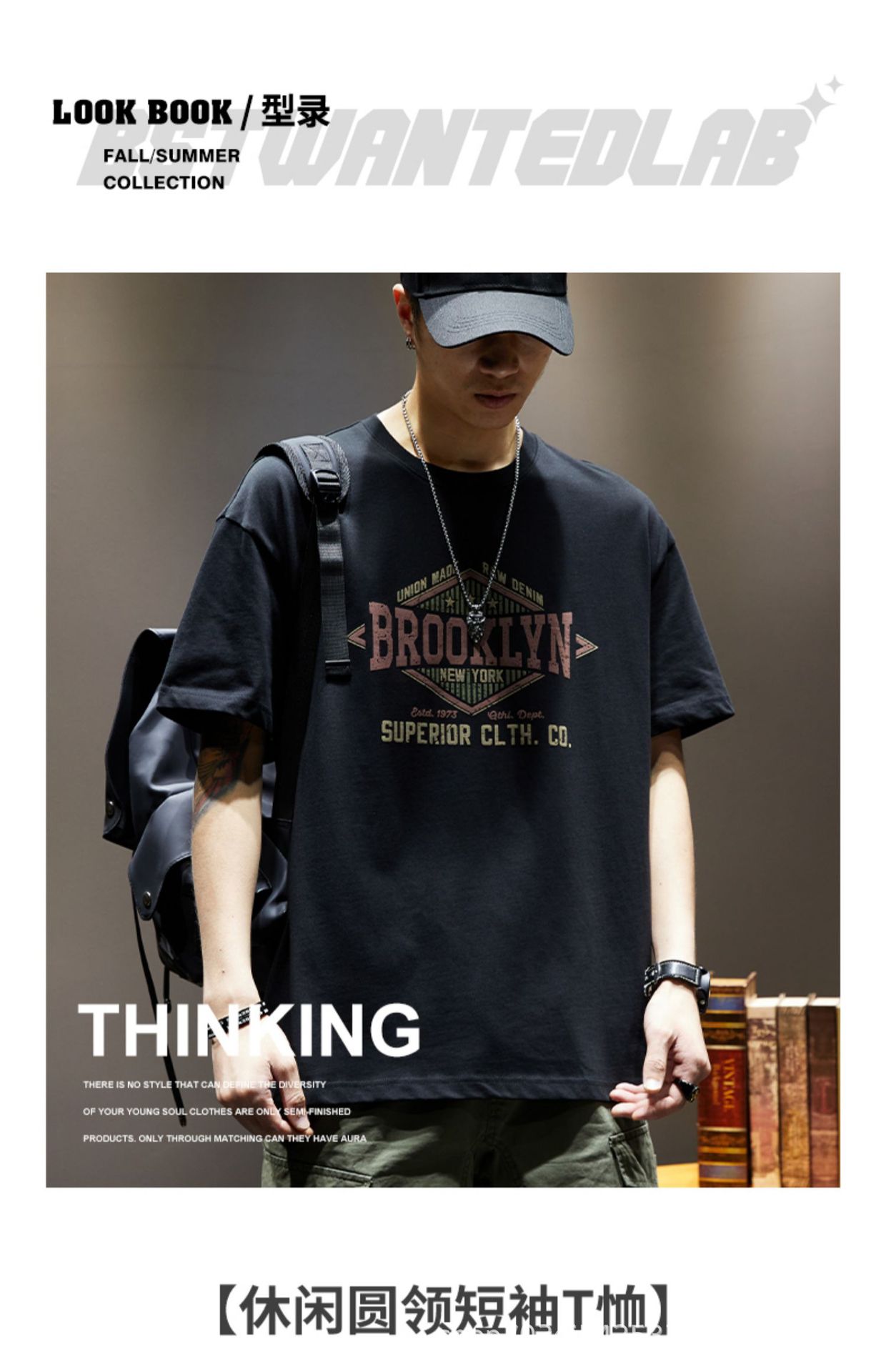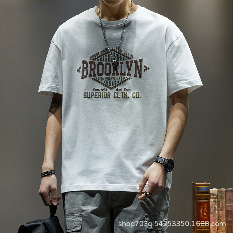 헤비 반팔 티셔츠 남성용 프린트 2024 년 여름 새로운 패션 트렌디 쿨 힙합 보이즈 루즈 탑 반소매 남성용 탑스토어 가기