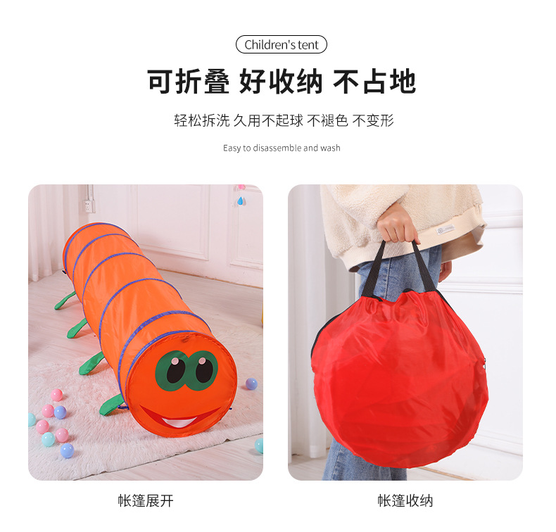 새로운 창조적 인 컬러 만화 애벌레 휴대용 접이식 어린이 장난감 크롤링 터널 드릴 링 게임 하우스 도매스토어 가기