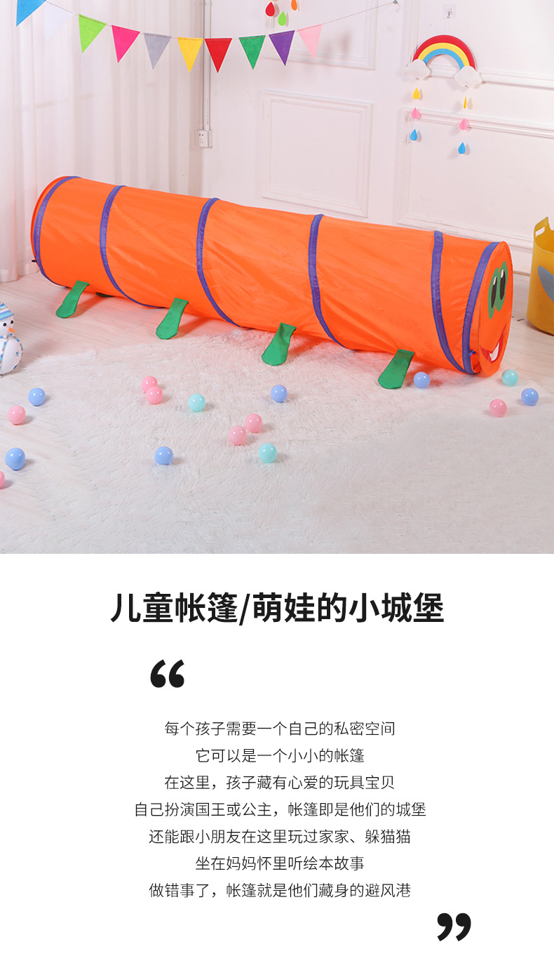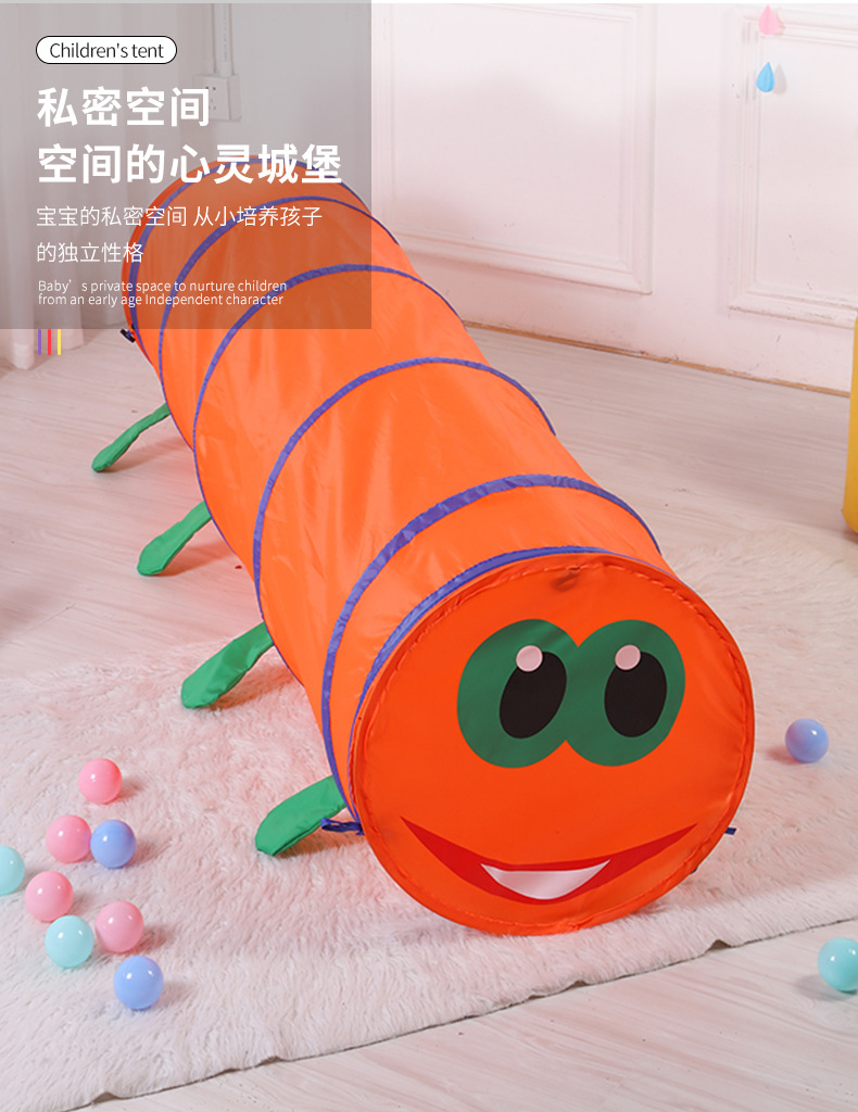 새로운 창조적 인 컬러 만화 애벌레 휴대용 접이식 어린이 장난감 크롤링 터널 드릴 링 게임 하우스 도매