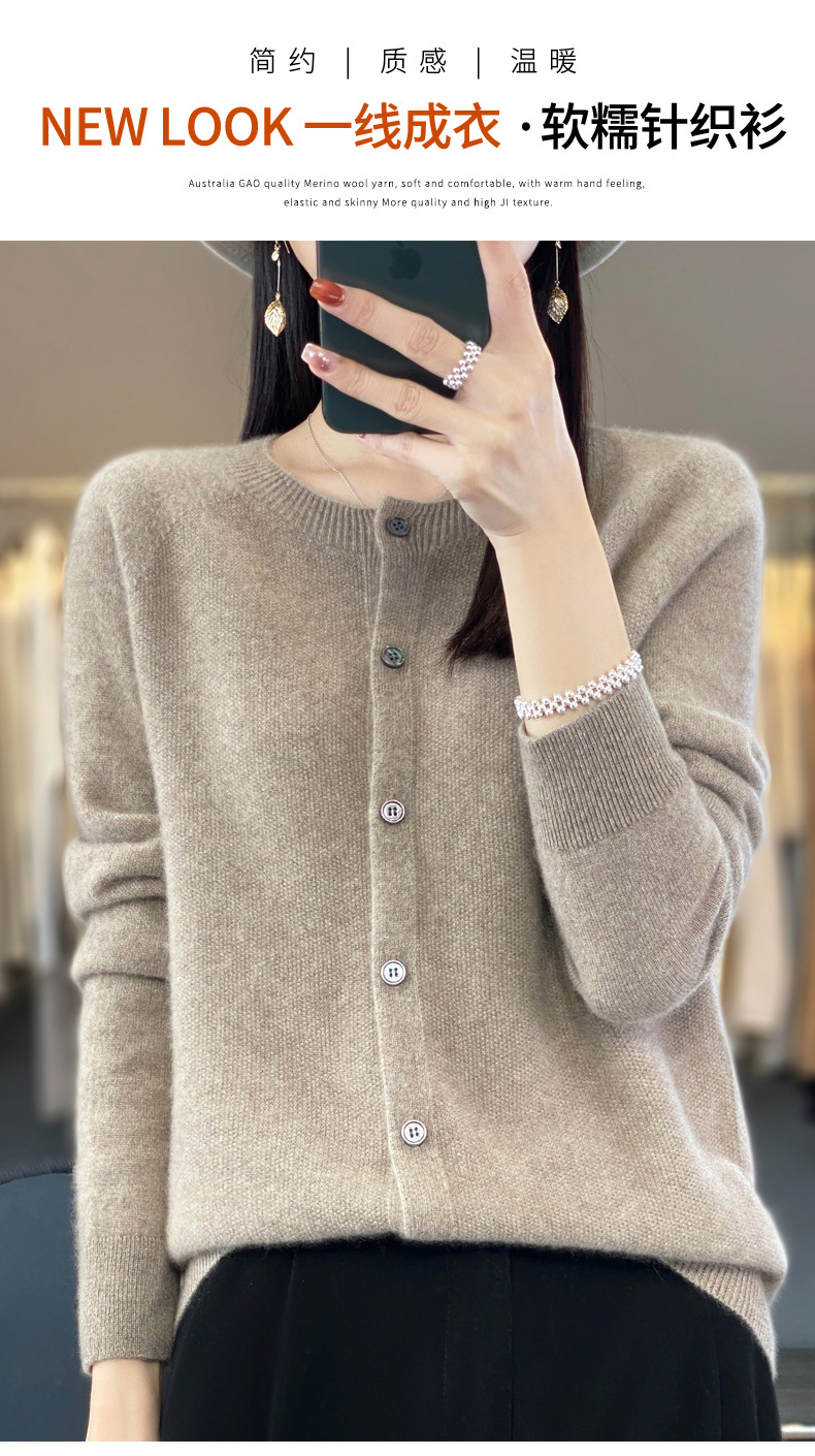 울 혼방 2025 가을 겨울 신작 여성 라운드 넥 짧은 원 라인 기성복 니트 가디건 따뜻한 재킷 탑 5