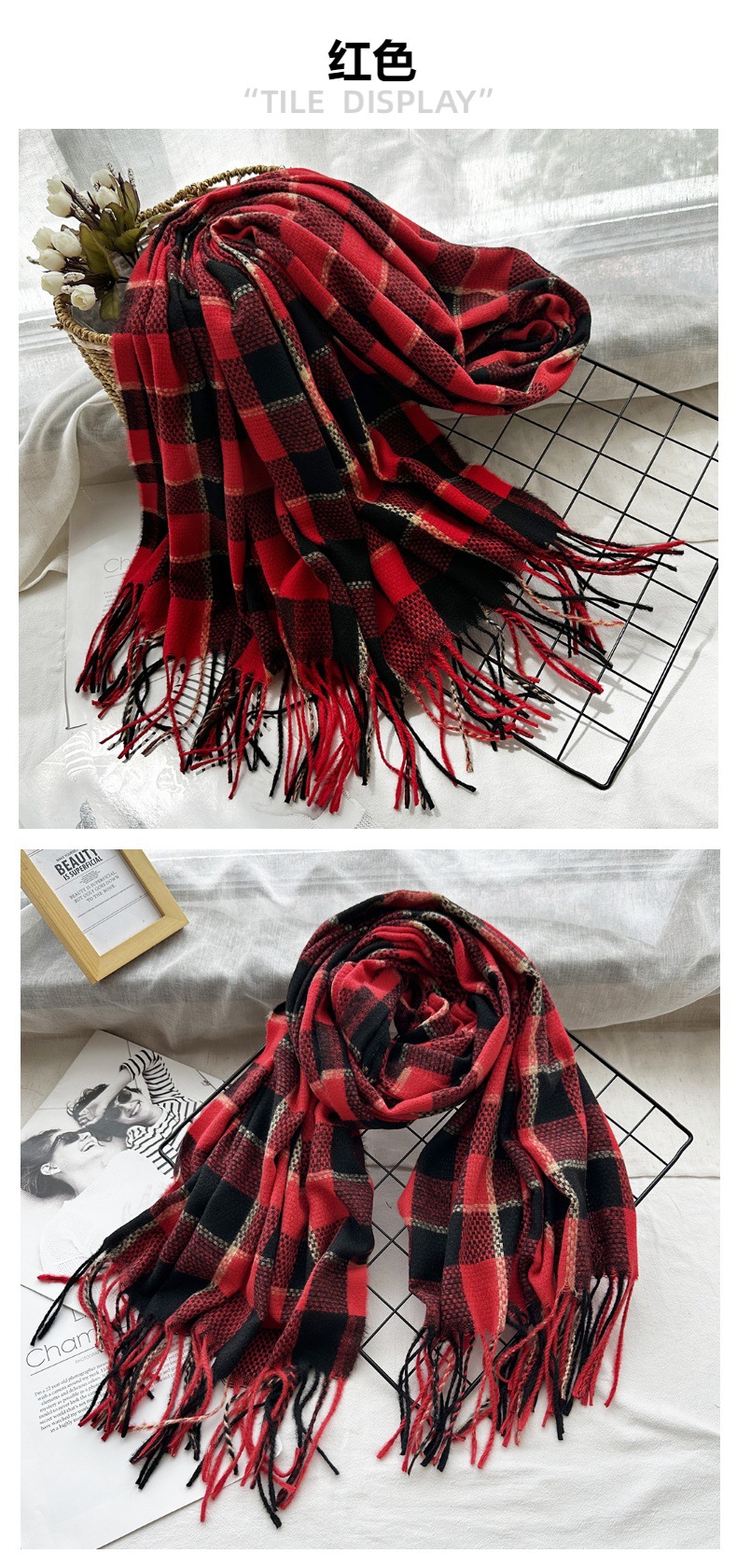 매일러드 컬러 캐시미어 격자 무늬 스카프 여자 가을과 겨울 한국식 올매치 두꺼운 따뜻한 학생 술 스카프스토어 가기