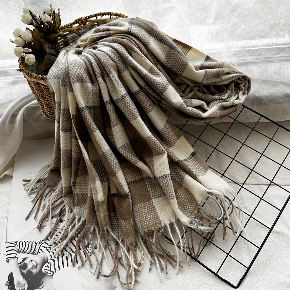 매일러드 컬러 캐시미어 격자 무늬 스카프 여자 가을과 겨울 한국식 올매치 두꺼운 따뜻한 학생 술 스카프