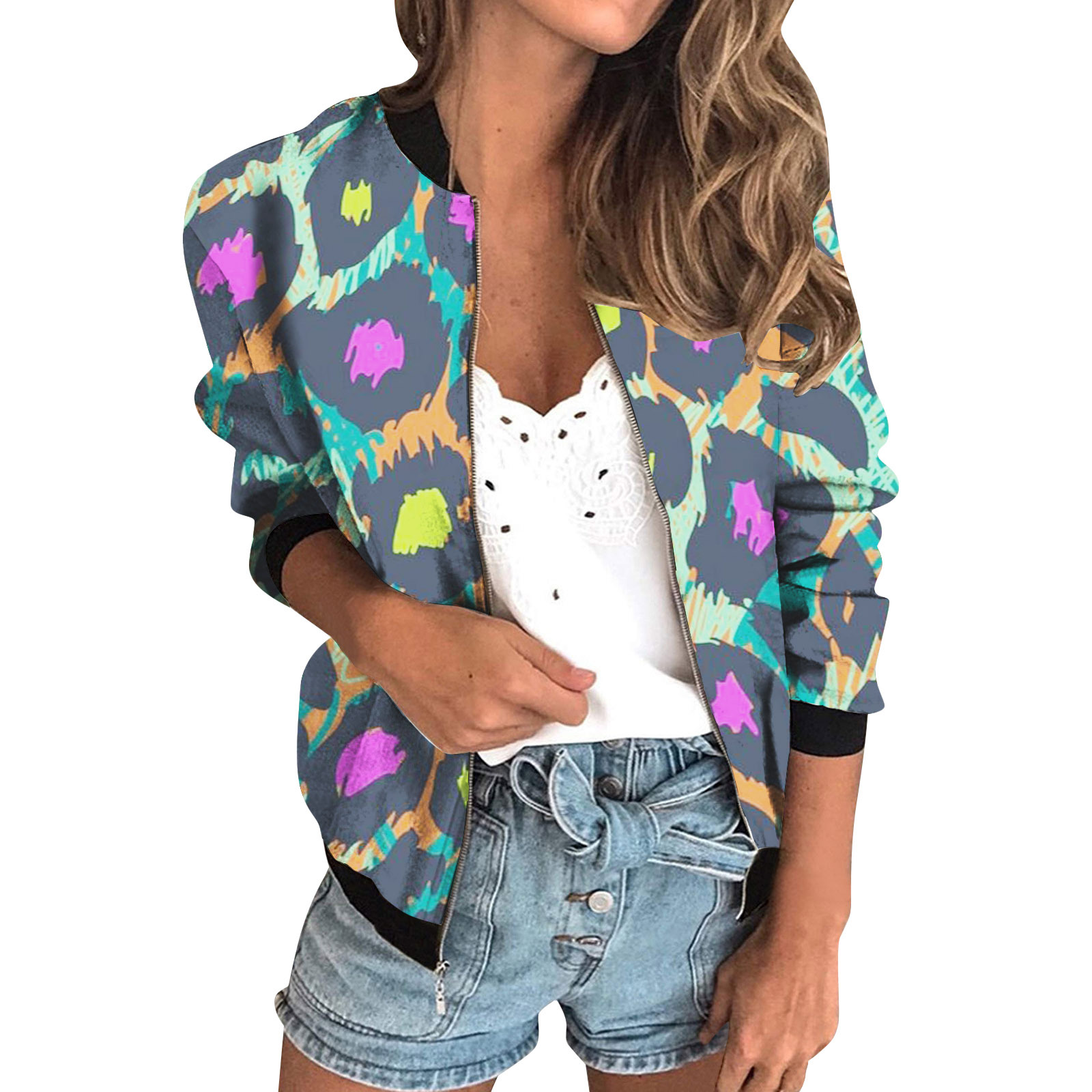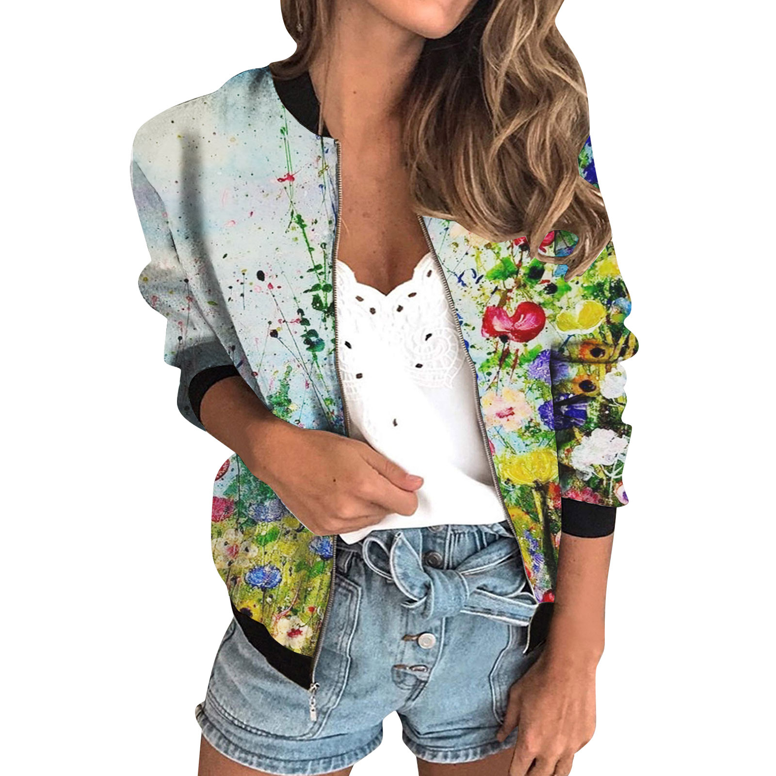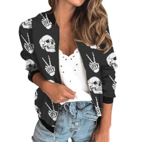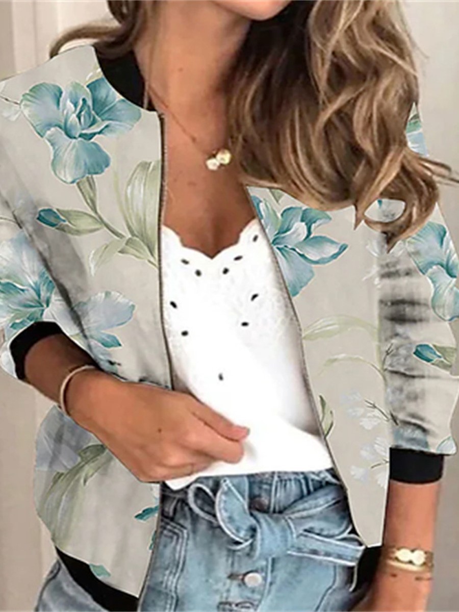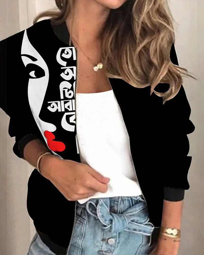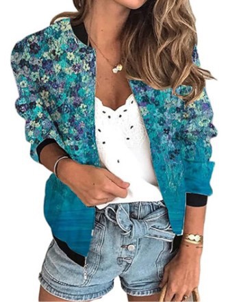 가을 2024 여성 재킷 지퍼 짧은 3D 인쇄 그린 패턴 여성 패션 조각스토어 가기