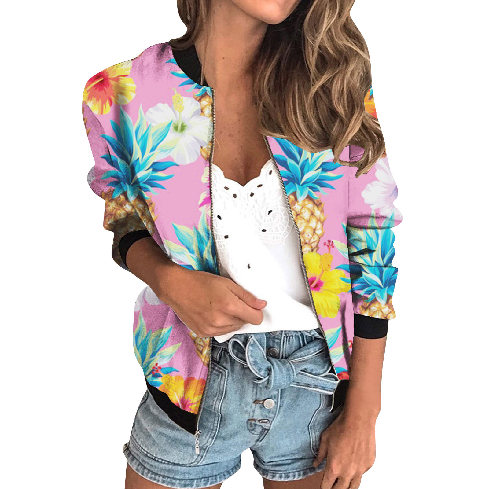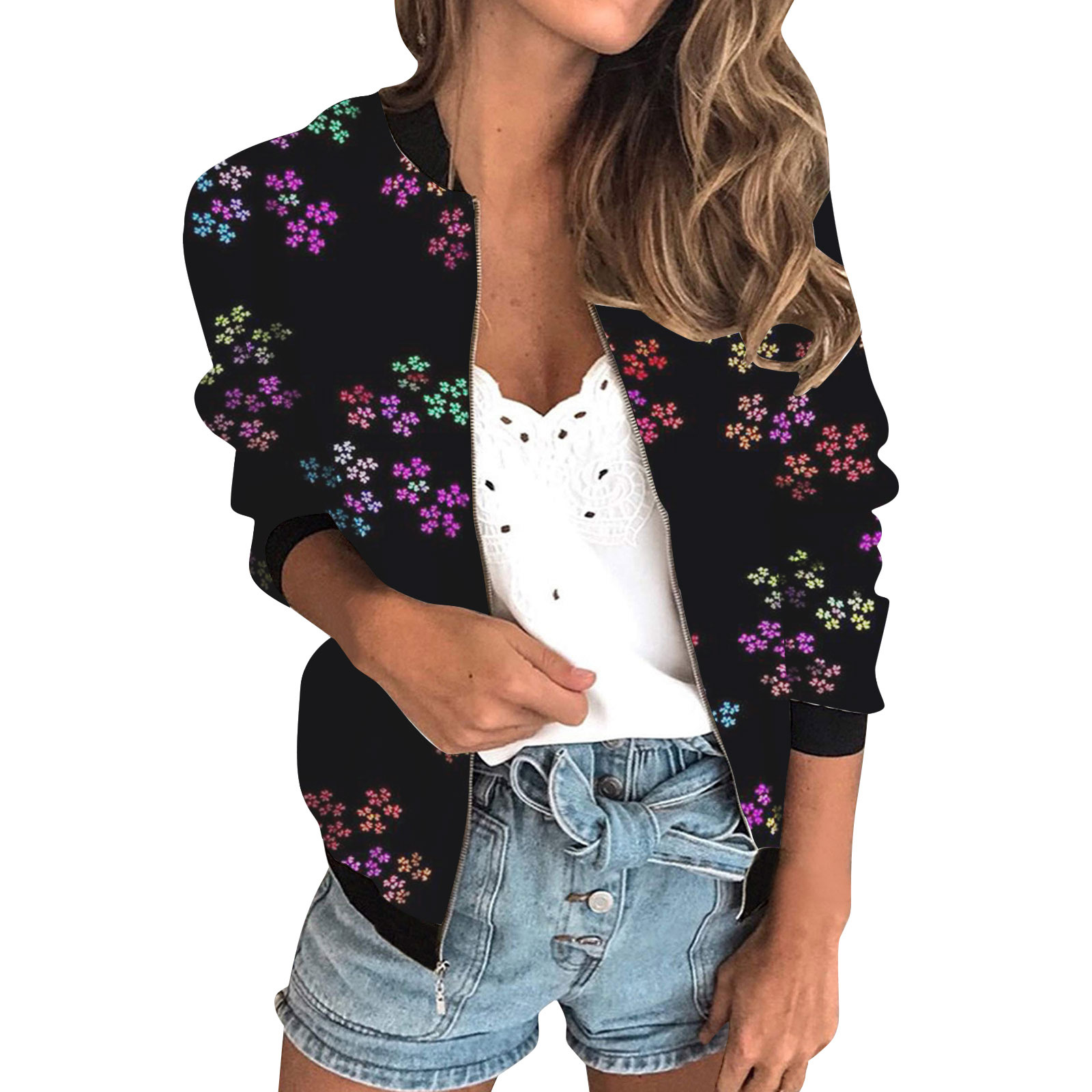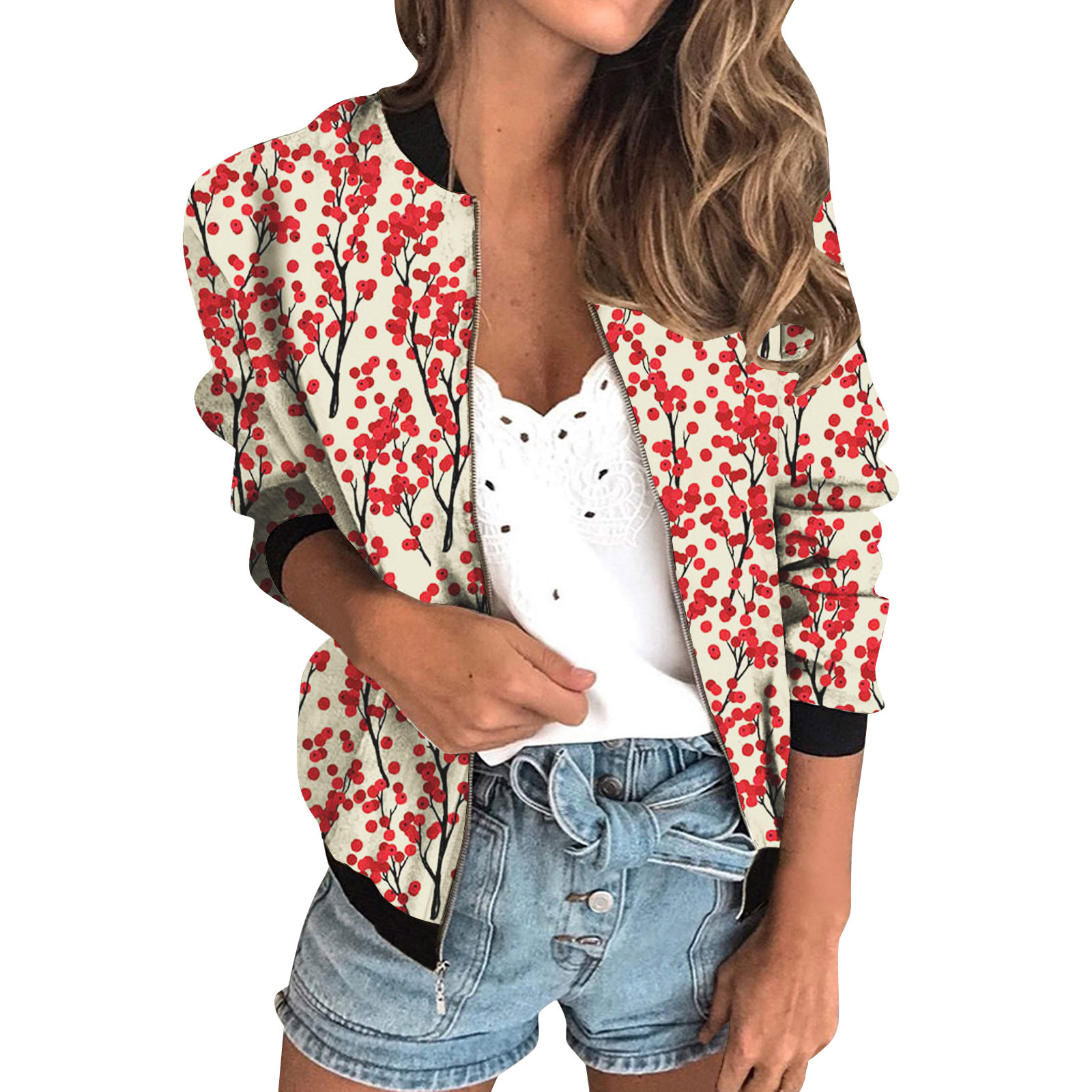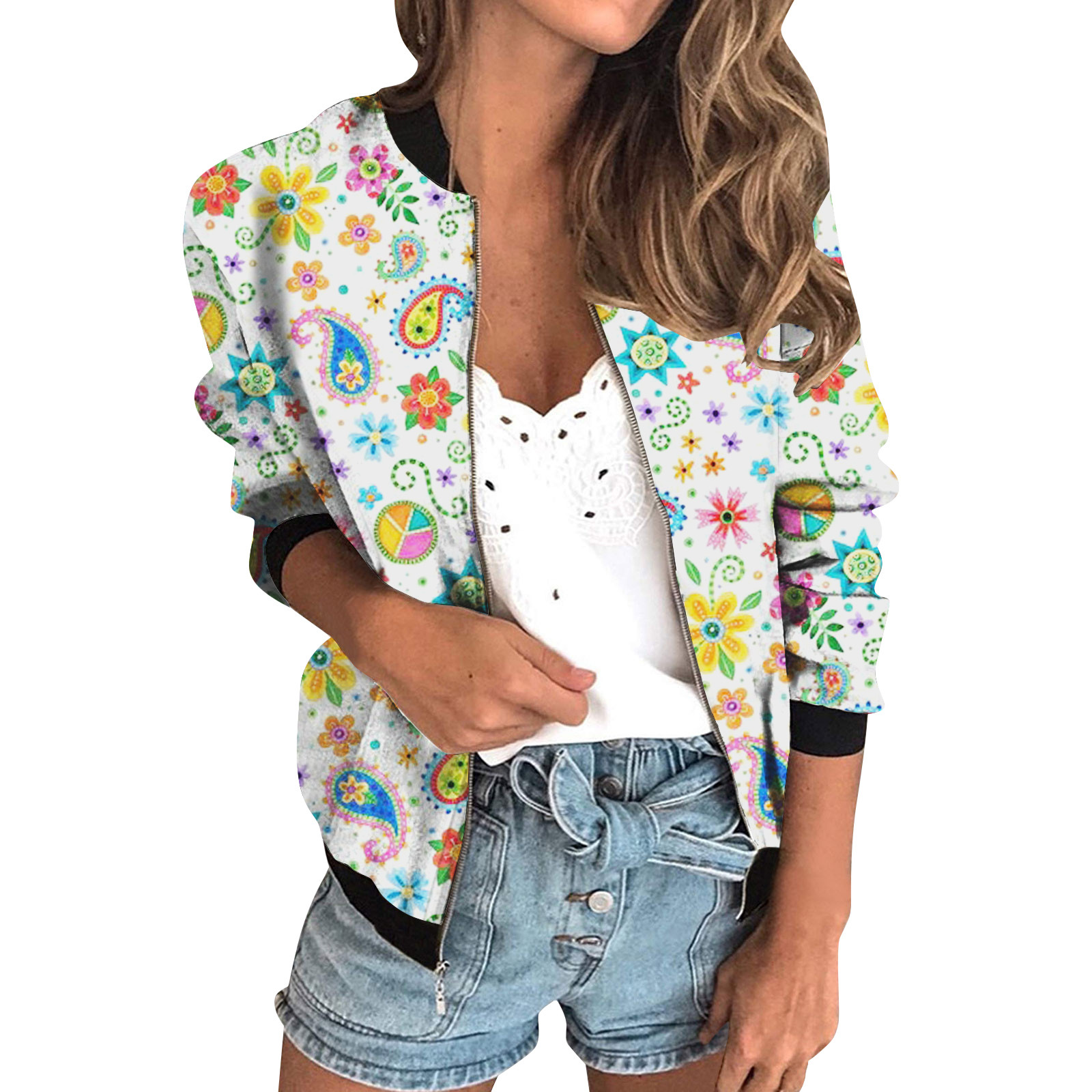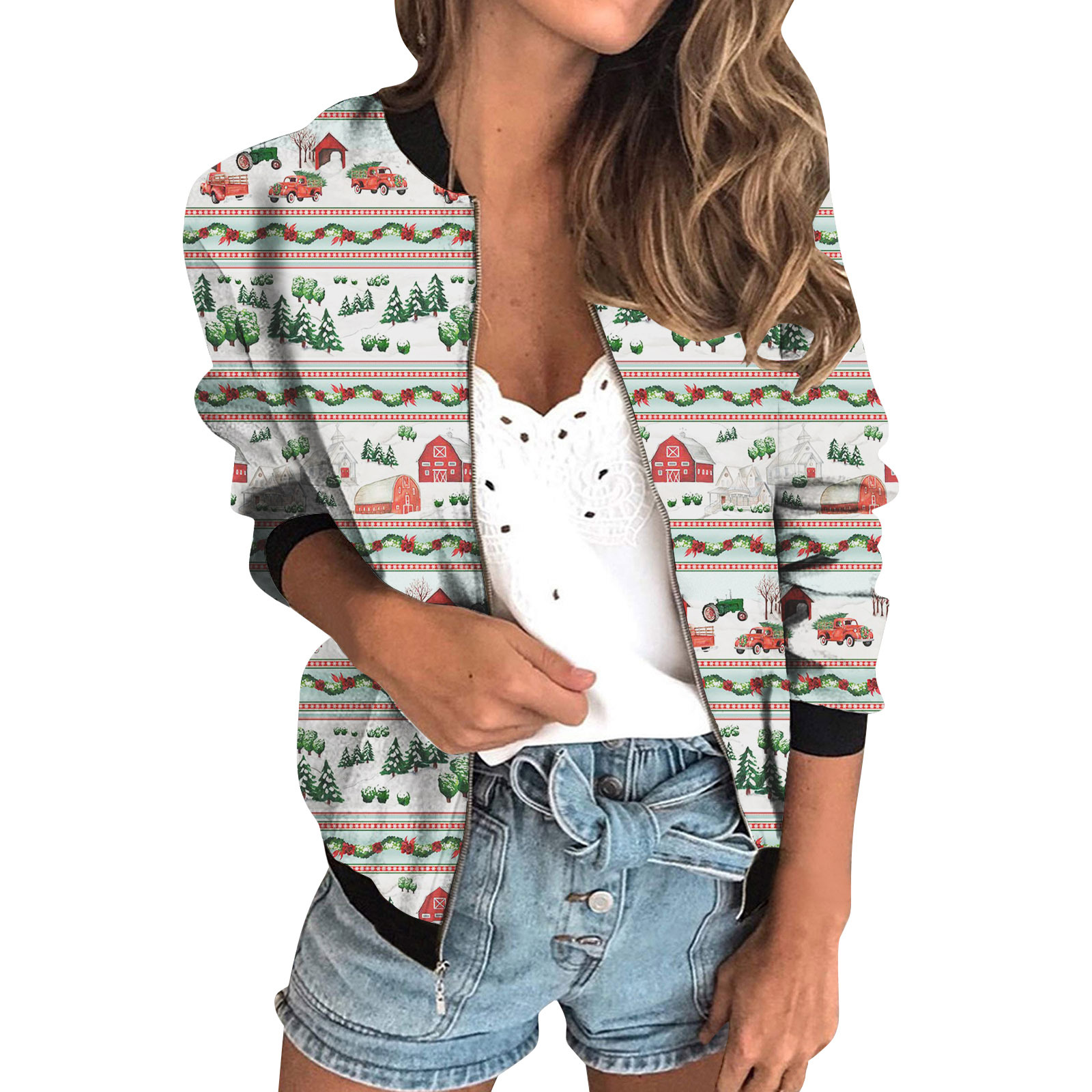 가을 2024 여성 재킷 지퍼 짧은 3D 인쇄 그린 패턴 여성 패션 조각스토어 가기