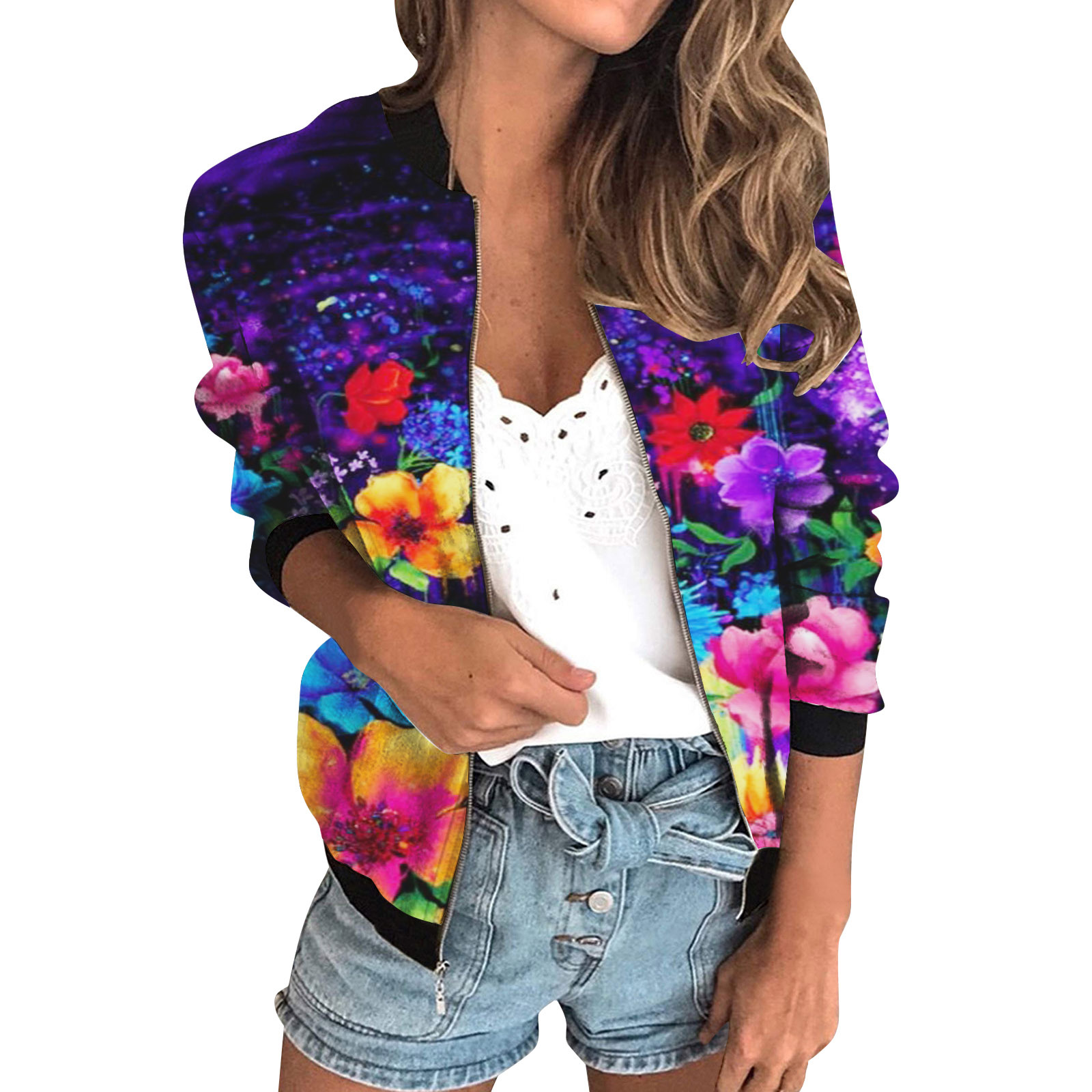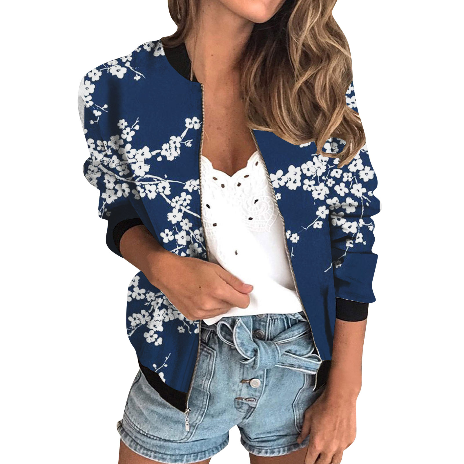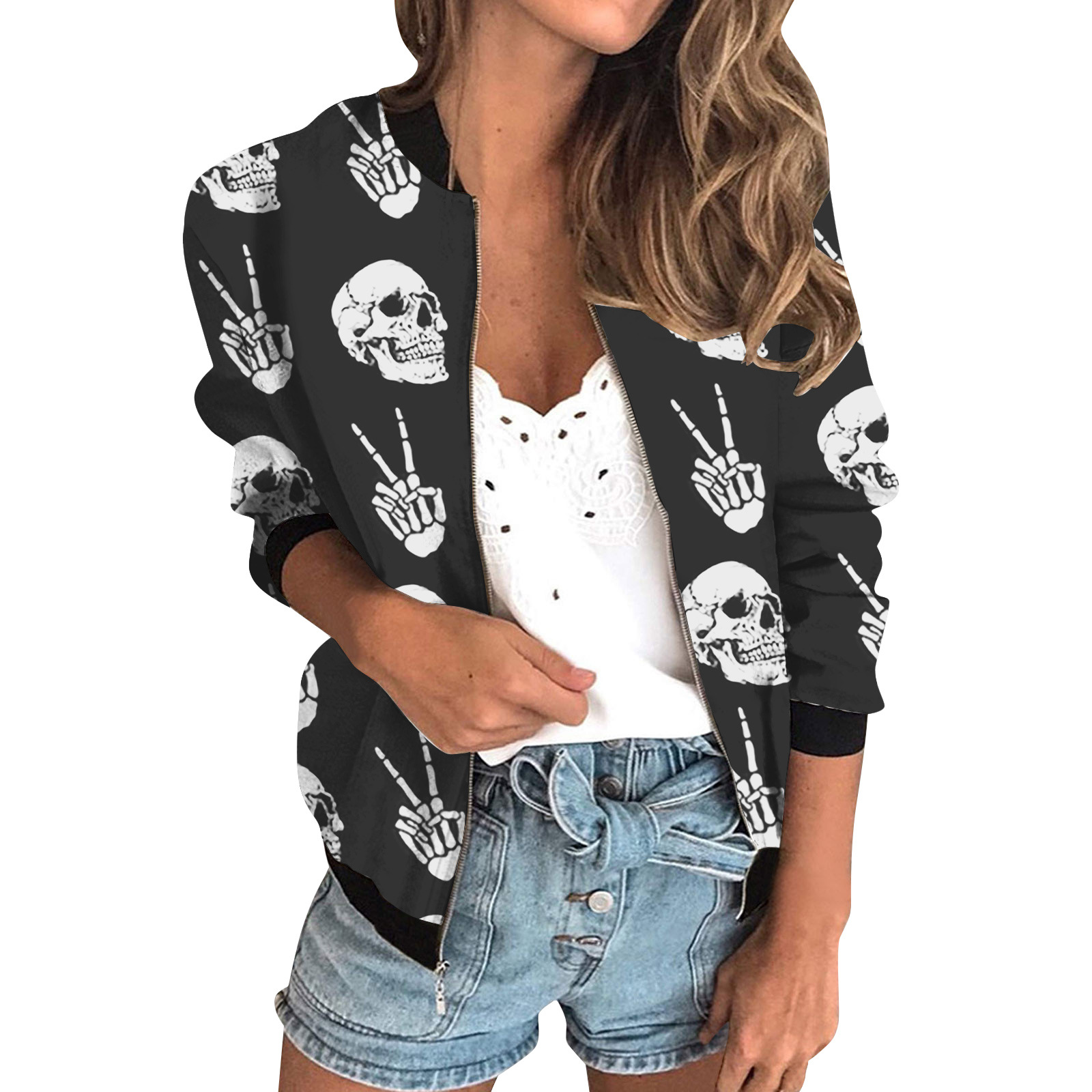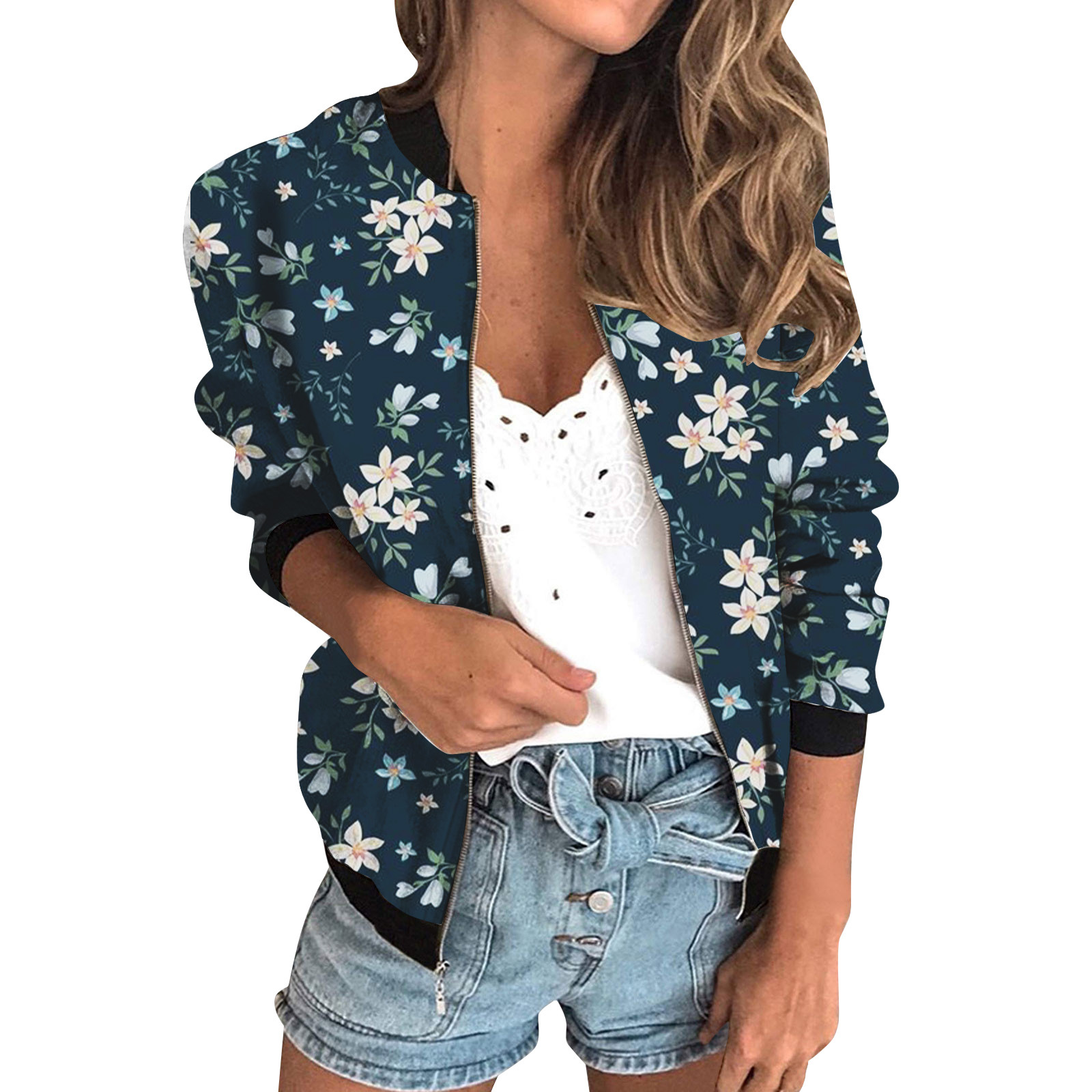가을 2024 여성 재킷 지퍼 짧은 3D 인쇄 그린 패턴 여성 패션 조각스토어 가기