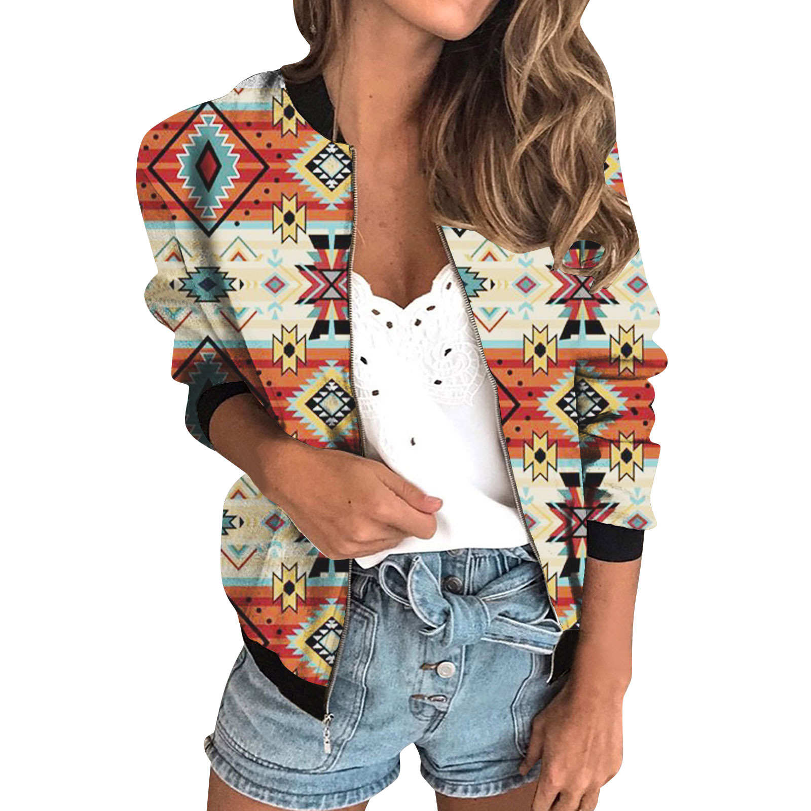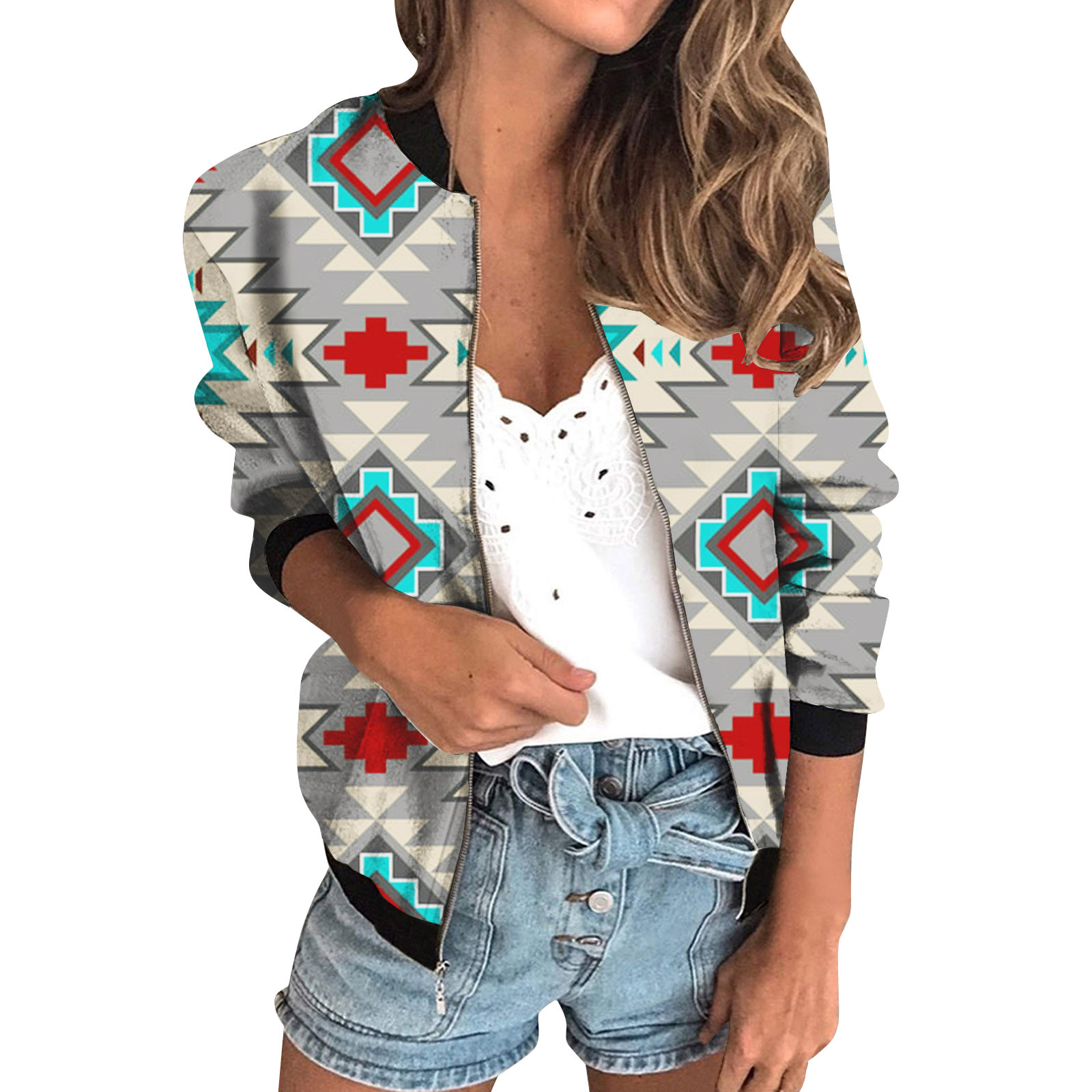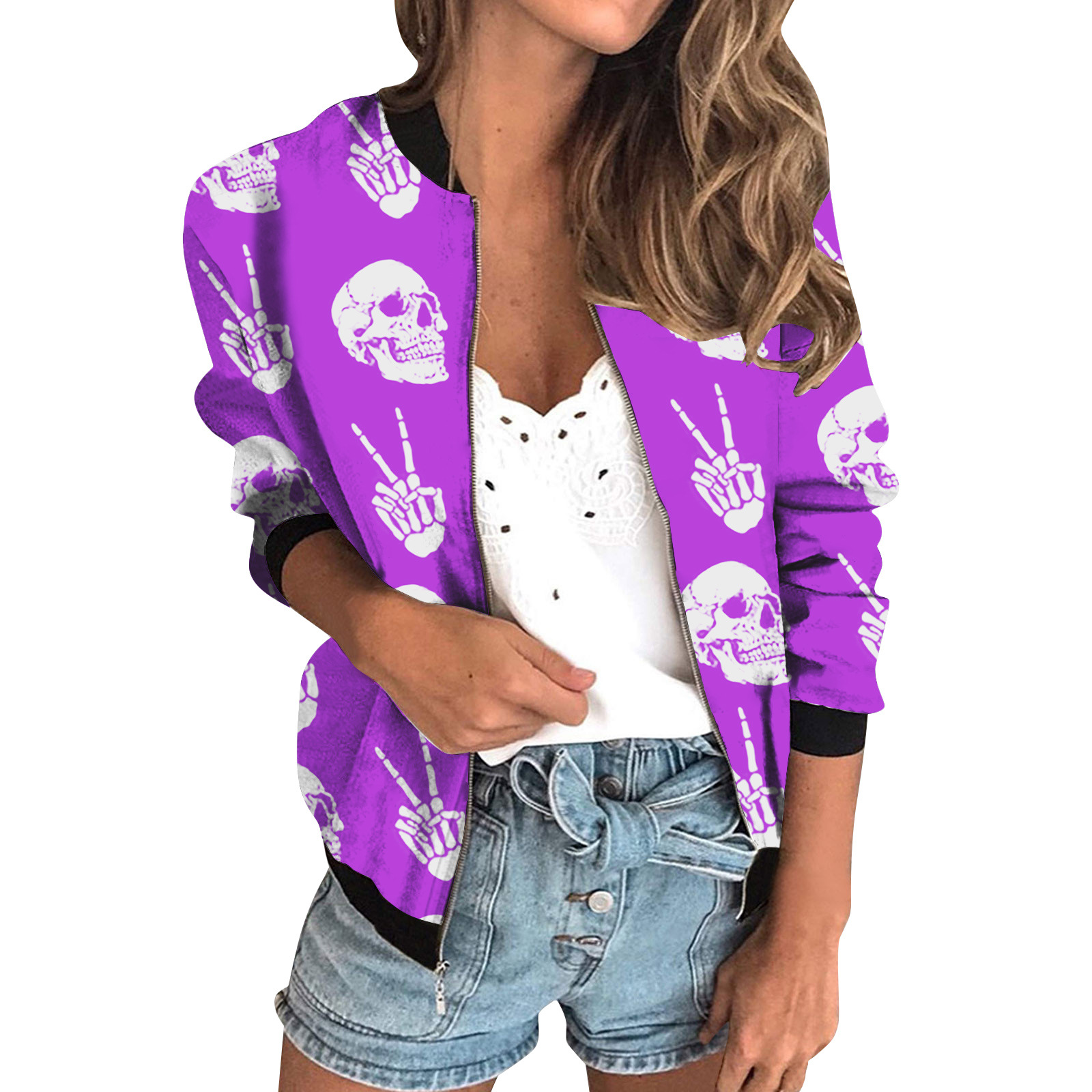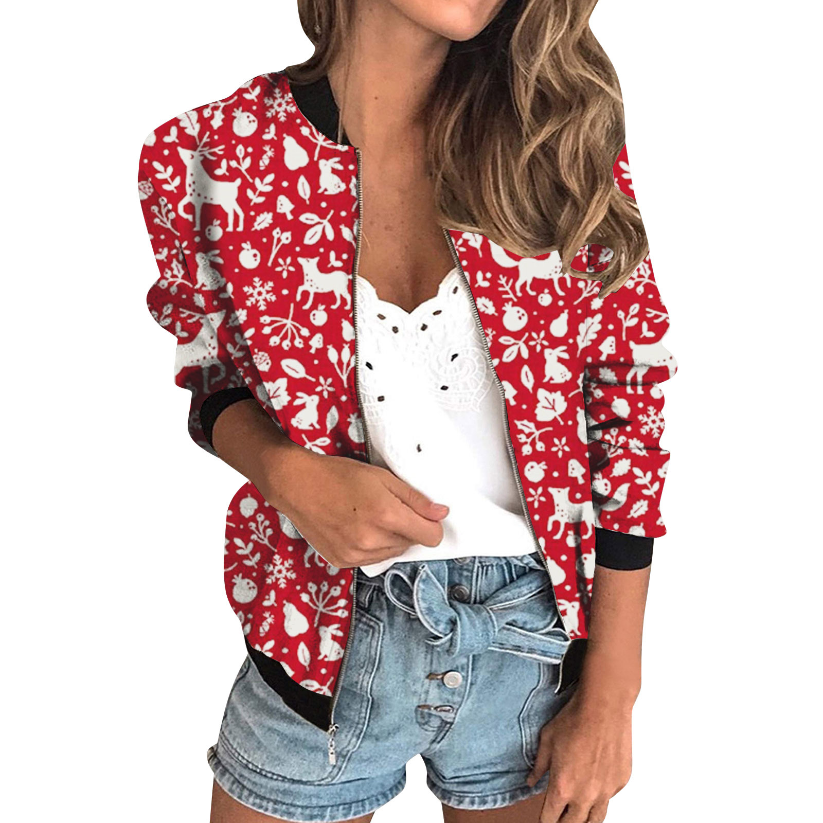 가을 2024 여성 재킷 지퍼 짧은 3D 인쇄 그린 패턴 여성 패션 조각스토어 가기