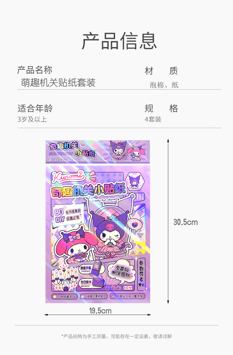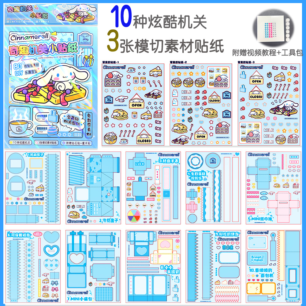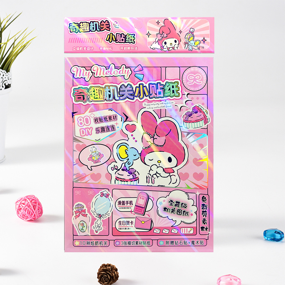산리오 3 차원 오르간 조용한 책 새 스타일 소녀 수제 컷 프리 쿠로미와 메를로 재미 스티커
