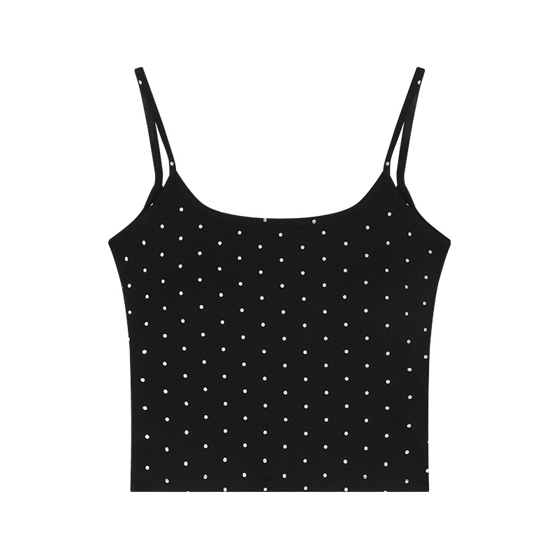 순수한 달콤한 스파이스 소녀 웨이브 도트 슬링 가슴 패드와 아름다운 뒷 조끼 포장 가슴 뒤없는 외부 착용베이스 짧은 스트랩리스 탑