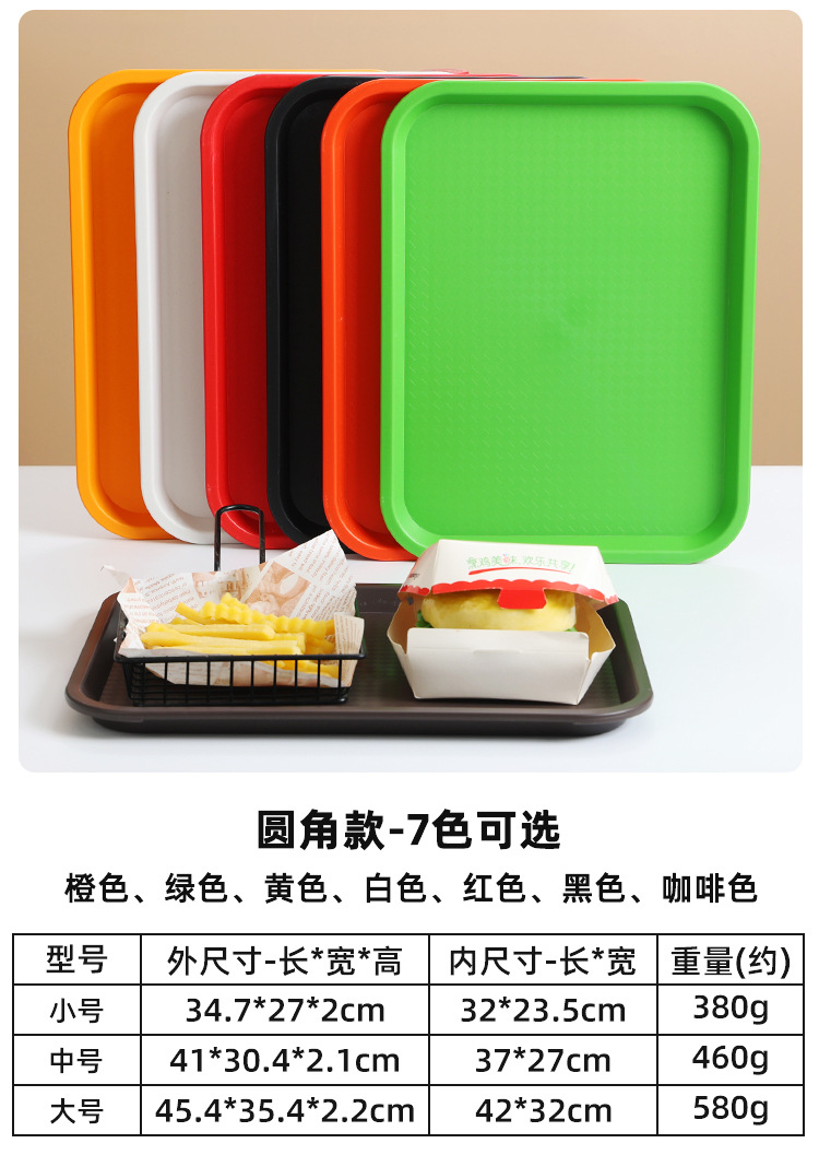 플라스틱 낙하 방지 트레이, 미끄럼 방지 캔틴 레스토랑 패스트 푸드 트레이, 두꺼운 호텔 KFC 상업용 직사각형 트레이스토어 가기