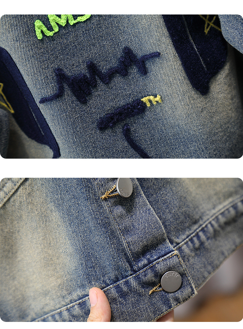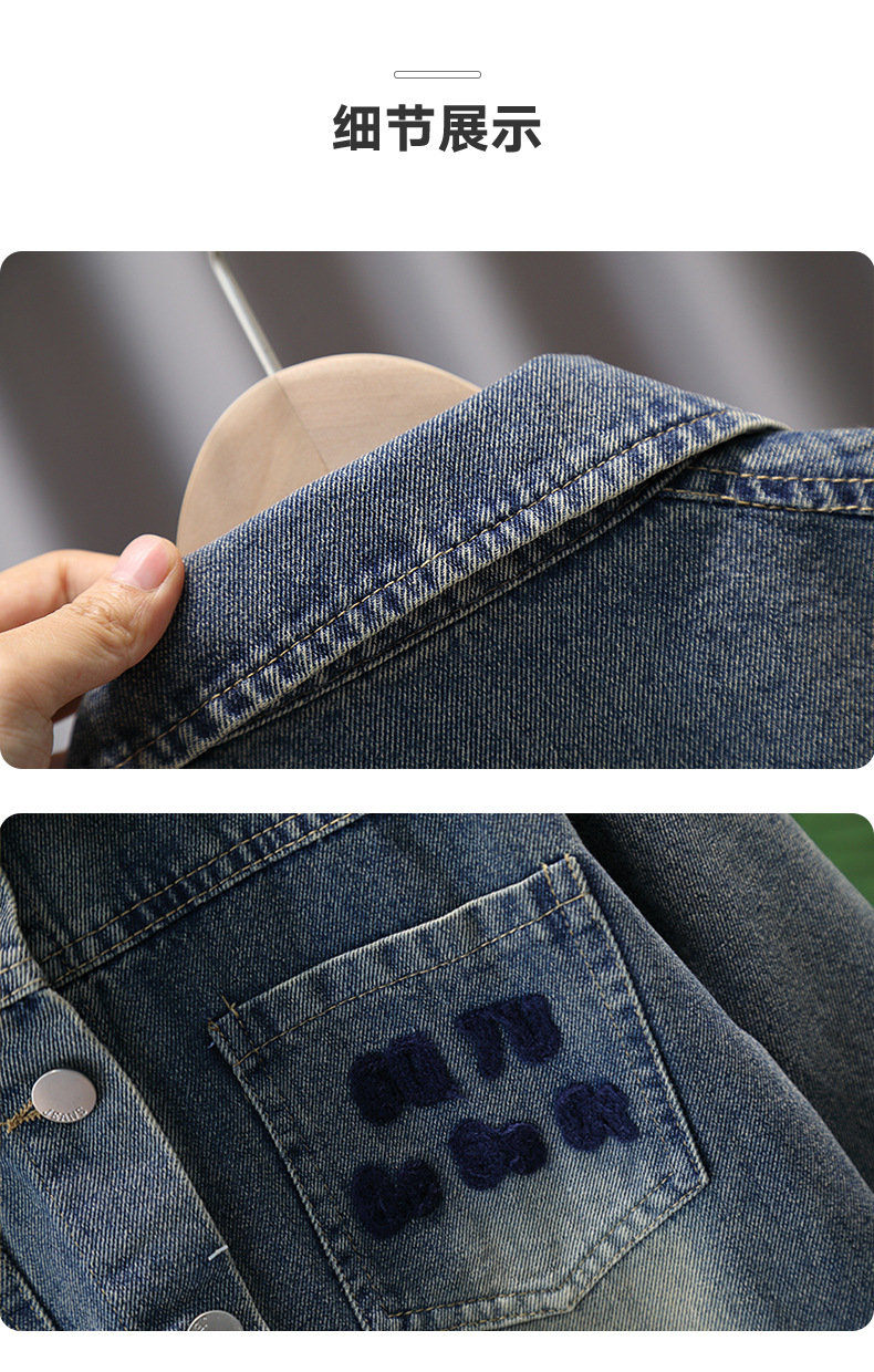 소년 자켓 봄과 가을 2024 새로운 어린이 데님 재킷 올 매치 타월 자수 남성 보물 가을 재킷스토어 가기