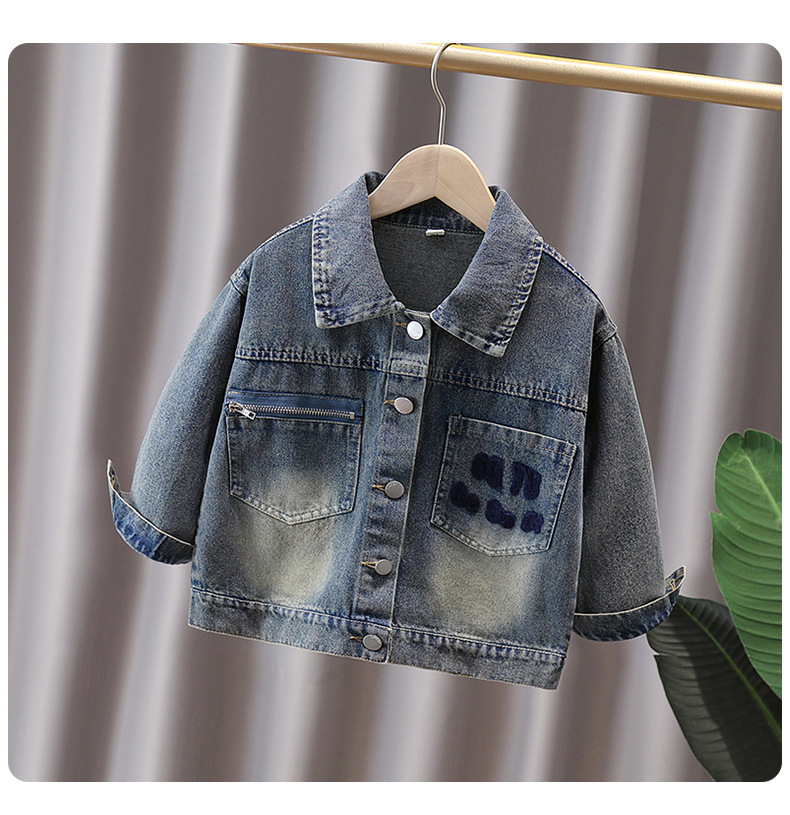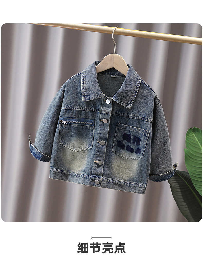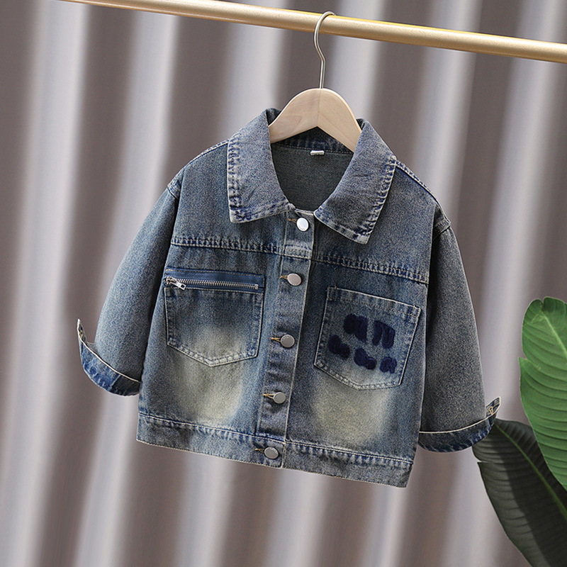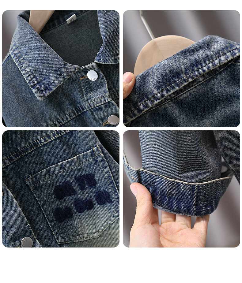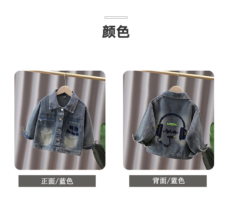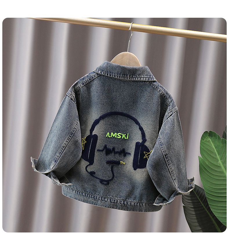 소년 자켓 봄과 가을 2024 새로운 어린이 데님 재킷 올 매치 타월 자수 남성 보물 가을 재킷