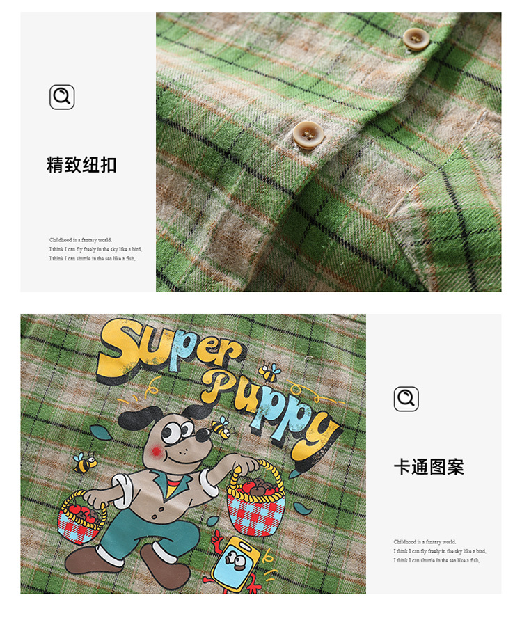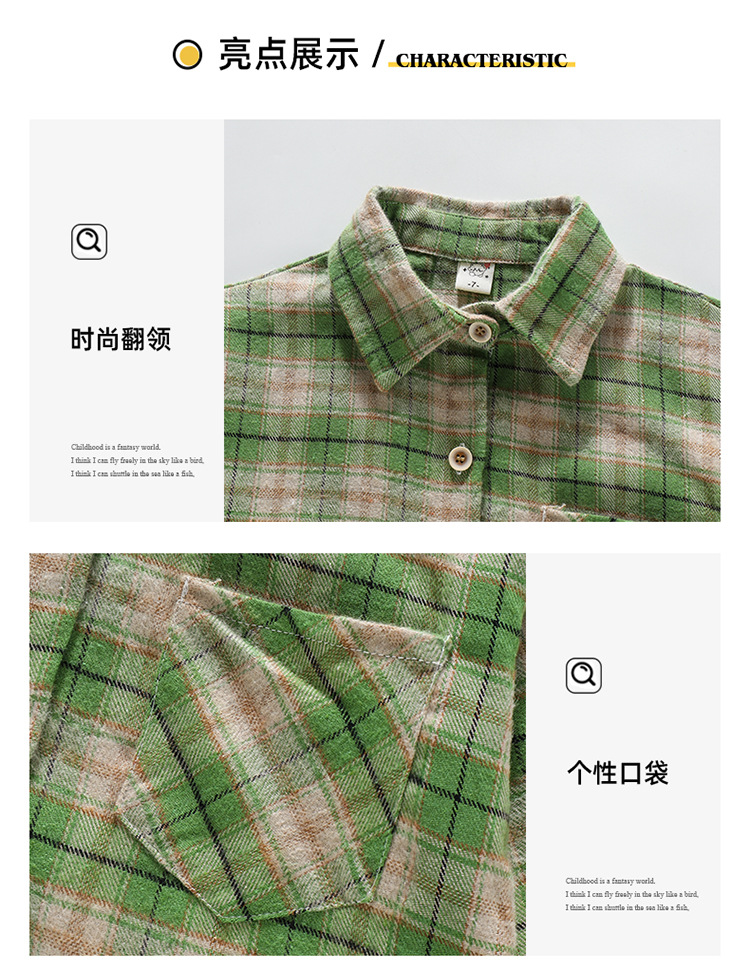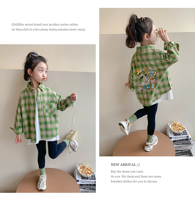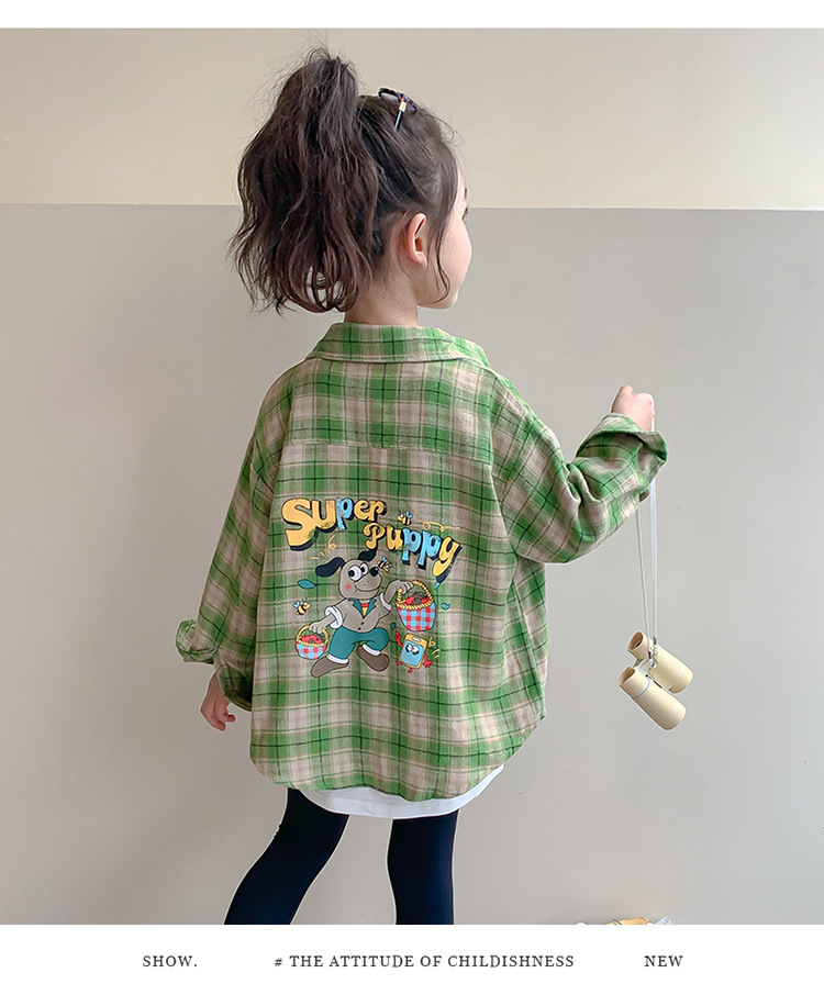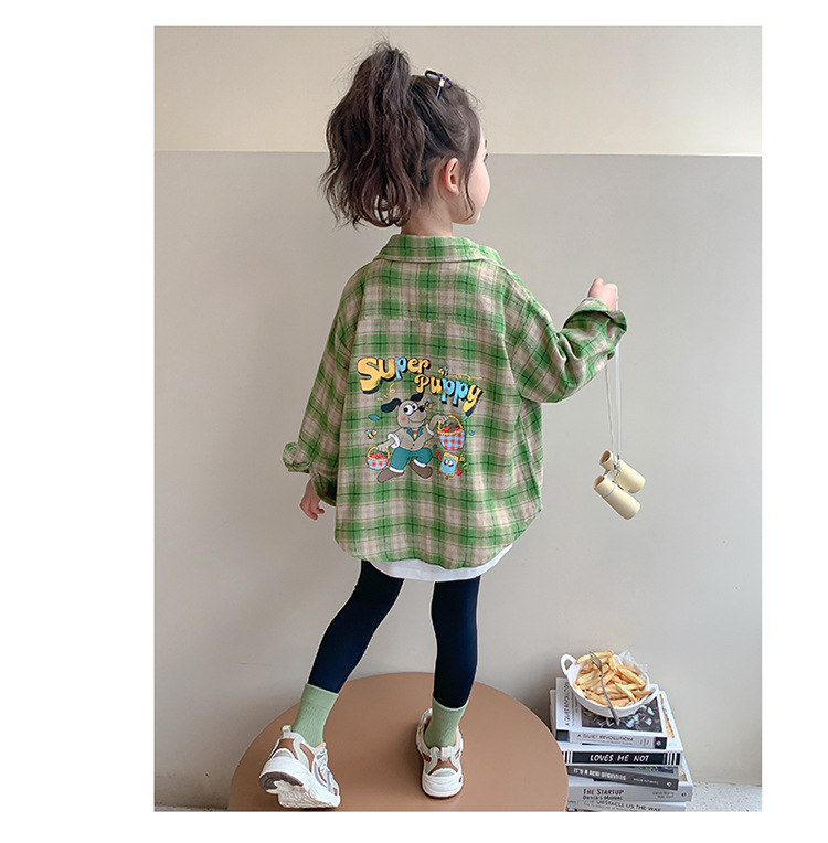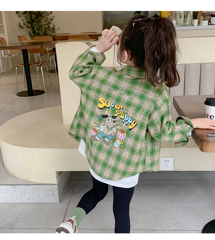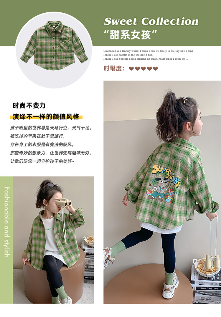 소녀의 셔츠 봄과 가을 2024 새로운 패션 어린 소녀의 녹색 격자 무늬 셔츠 중소 어린이 캐주얼 탑스토어 가기