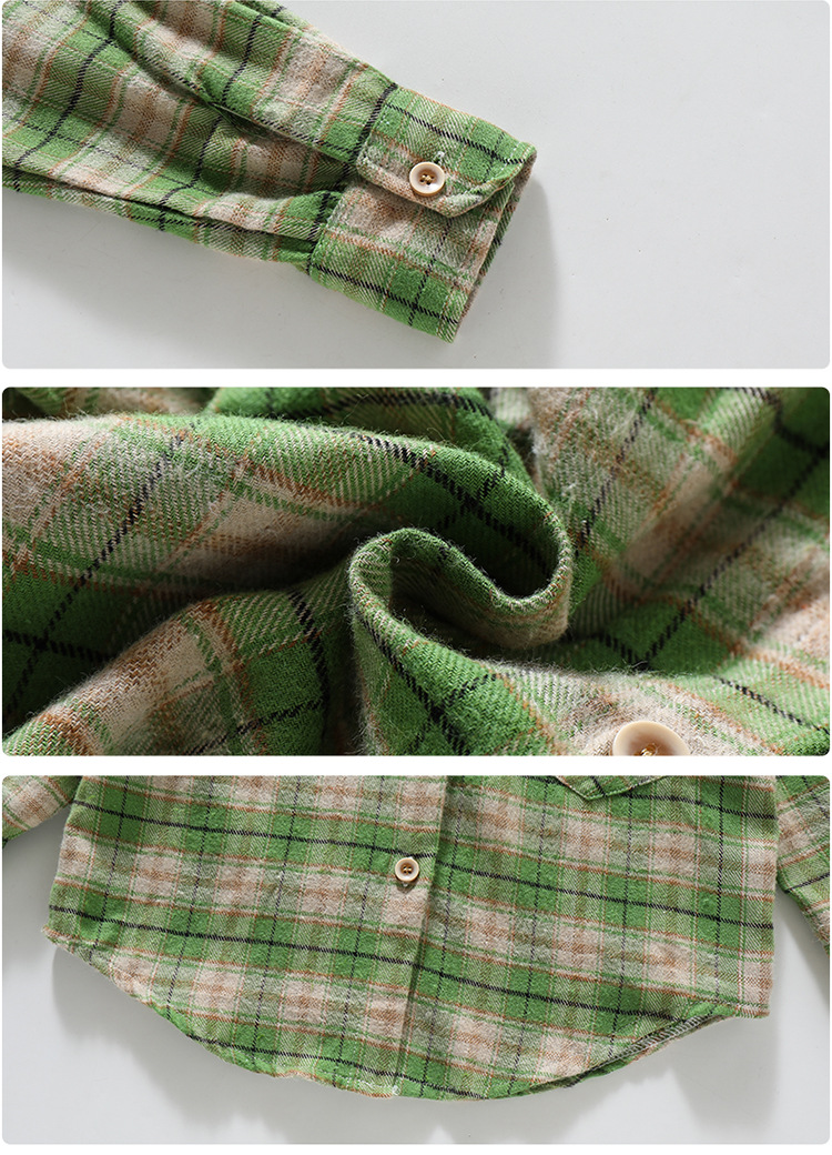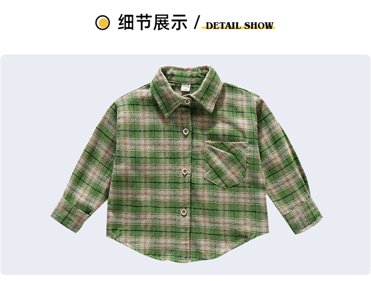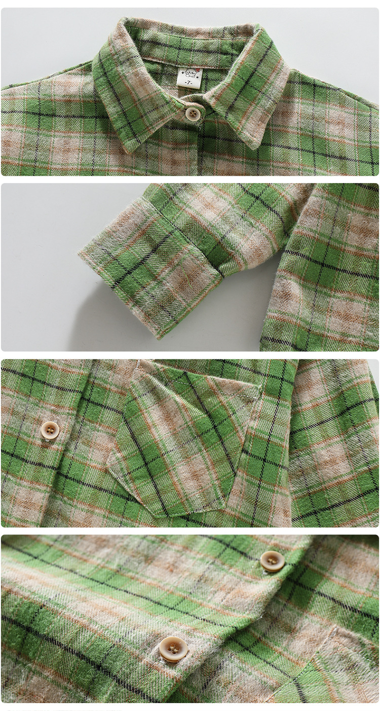 소녀의 셔츠 봄과 가을 2024 새로운 패션 어린 소녀의 녹색 격자 무늬 셔츠 중소 어린이 캐주얼 탑