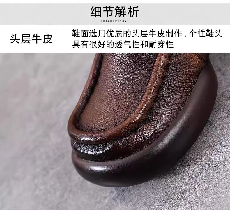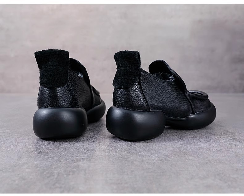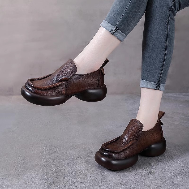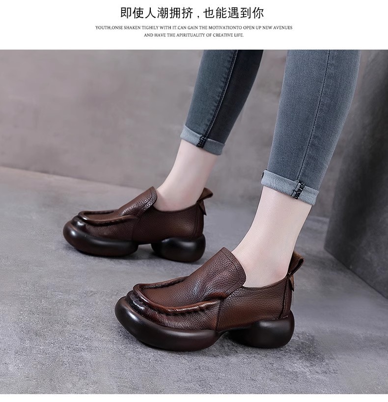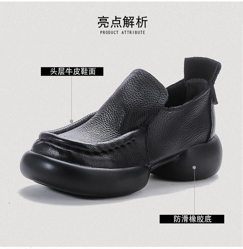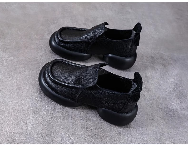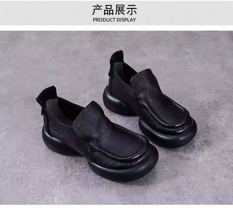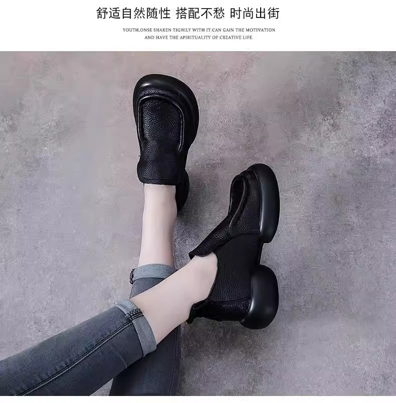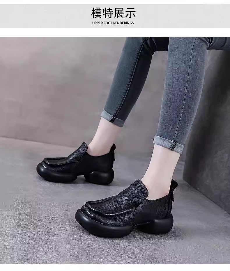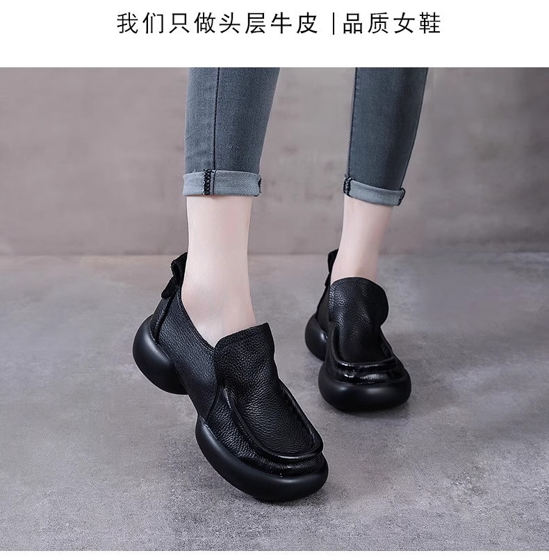 2025 새로운 가을 스타일 정품 가죽 두꺼운 단독 둥근 발가락 검은 색 작은 가죽 신발 여성의 두꺼운 뒤꿈치 플랫폼 단독 양피 복고풍 게으른 신발스토어 가기
