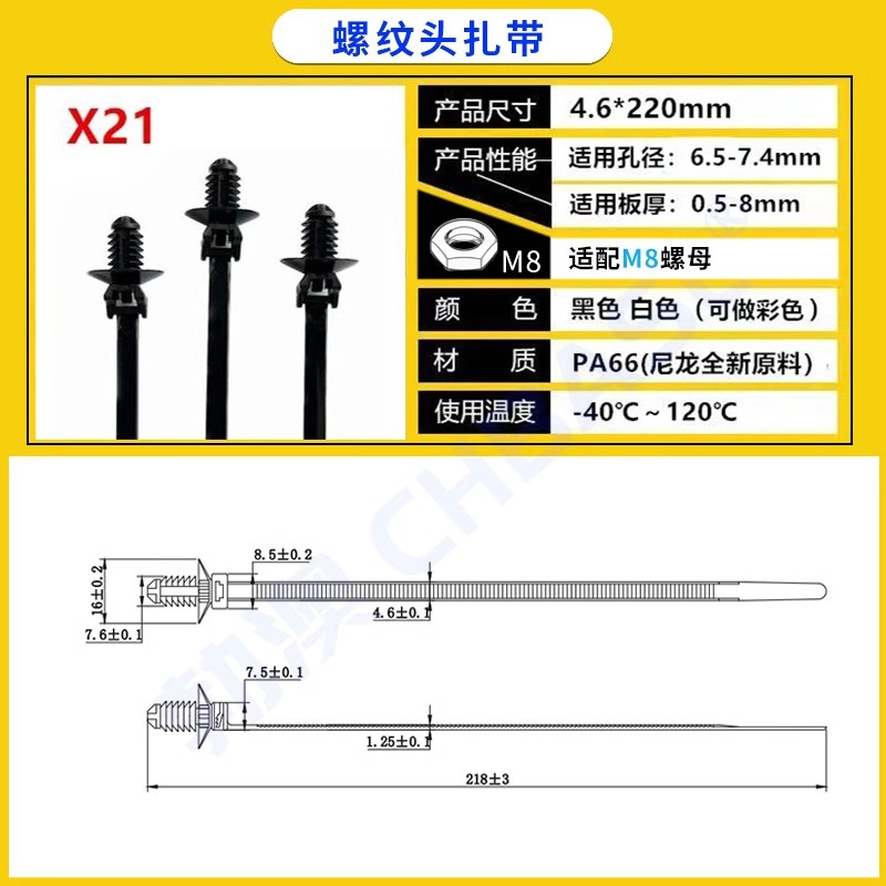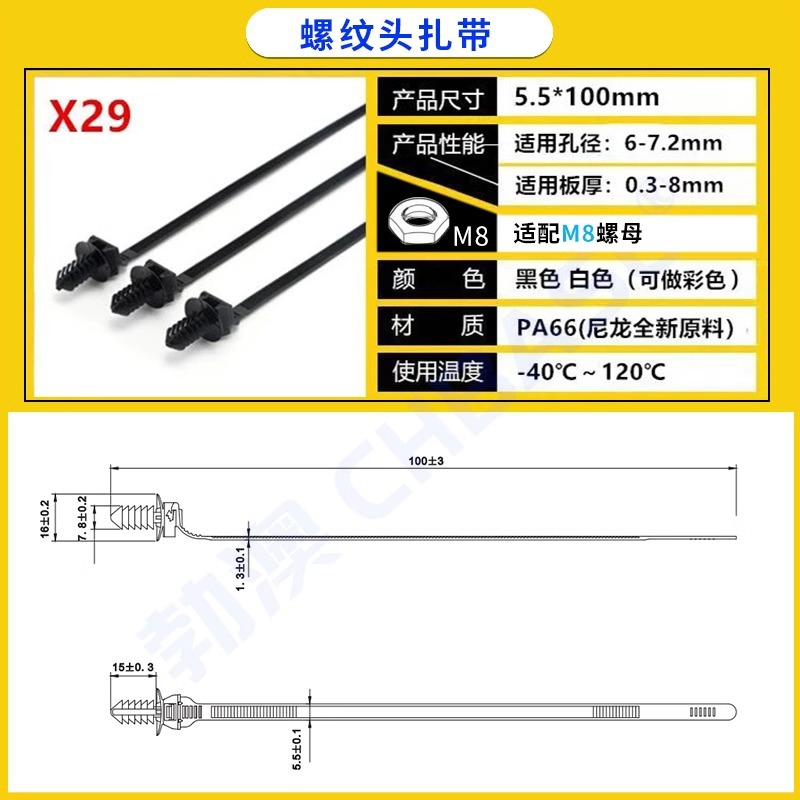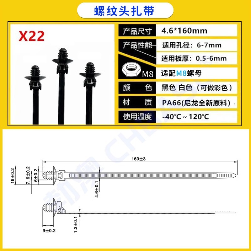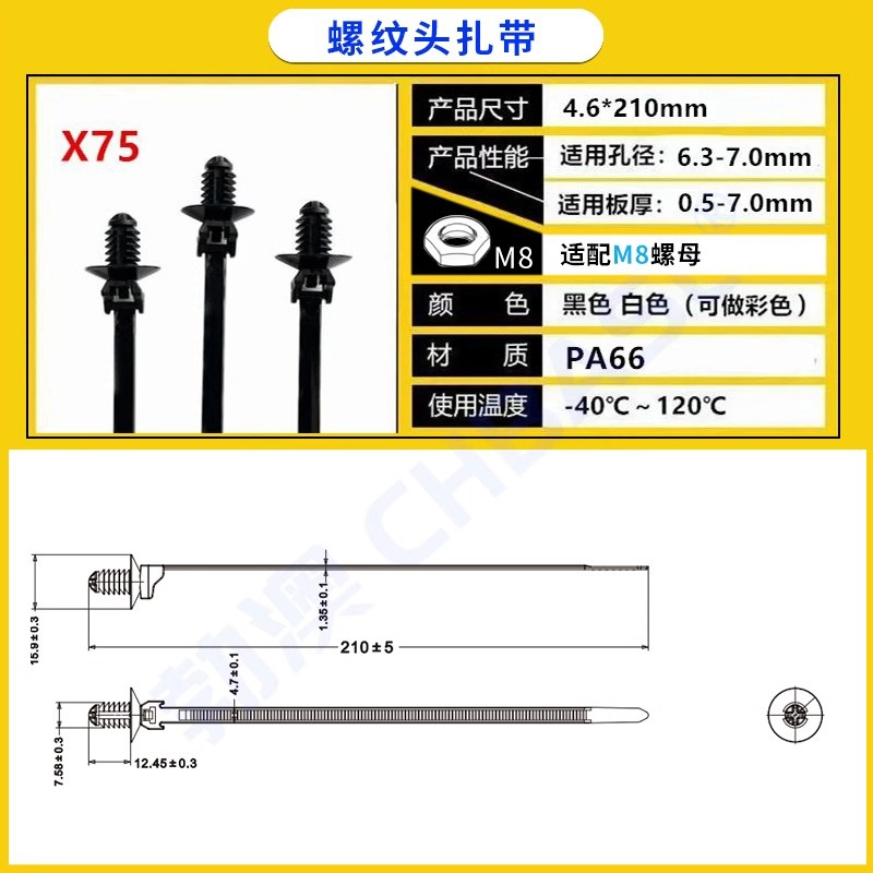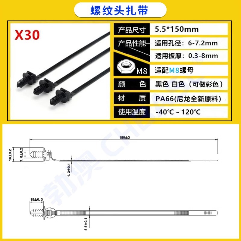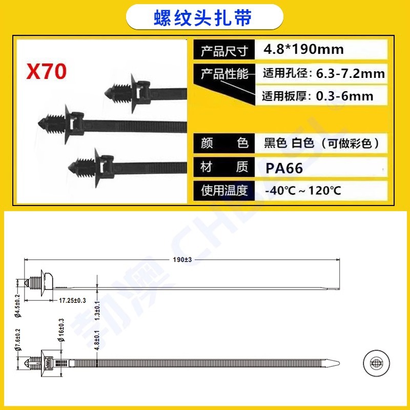 자동차용 나일론 케이블 타이, 나사형 헤드, 자동차 부품 공장 전용 플러그형 케이블 타이, 고정용 홀더, 판금 클립스토어 가기