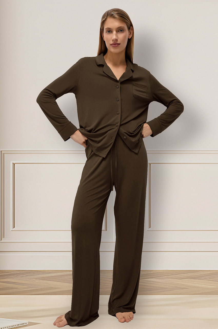 국경 2025 봄 새로운 모달 카디건 긴팔 바지 파자마 여성 캐주얼 편안한 가정용 의류 도매스토어 가기